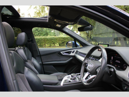 We are delighted to offer this Q7 with £9445 of factory options in navarro blue with anthracite 1/2 leather. Specification includes 7 seats, tilt and slide opening panoramic glass sunroof with retractable sunblind, virtual dash, 360 surround view cameras, parking sensors front and rear, park assist, head up display, sat nav, dab radio, bluetooth, deluxe 4 zone climate control, tour pack, comfort and sound pack, ambient lighting, drive select, electric seats with memory positions and lumbar adjustment, heated folding mirrors, auto dimming interior mirror, lane keeping system, road sign recognition, cruise control, multi function steering wheel, cruise control, high beam assistant, led headlamps, dynamic headlight range control, headlamp washer system, auto lights, rain sensor, bright roof rails, rear privacy glass and 20 alloy wheels. 2 x keys present. Call or visit our website for a finance quote (subject to status) No admin fees are charged. We specialise in privately owned high specification vehicles and endeavour to buy the best examples of the marques we sell. Old fashioned service with up to date product knowledge. 30 years of successful selling please check out our 5 Star reviews and buy with confidence. We would like to point out Autotraders Price indicator is AI GENERATED and does not take into account many real world factors. We believe it is about selling the best we can which our vast knowledge affords us. Quality is the most important factor not buying the cheapest. As they say cheap today is dear tomorrow.