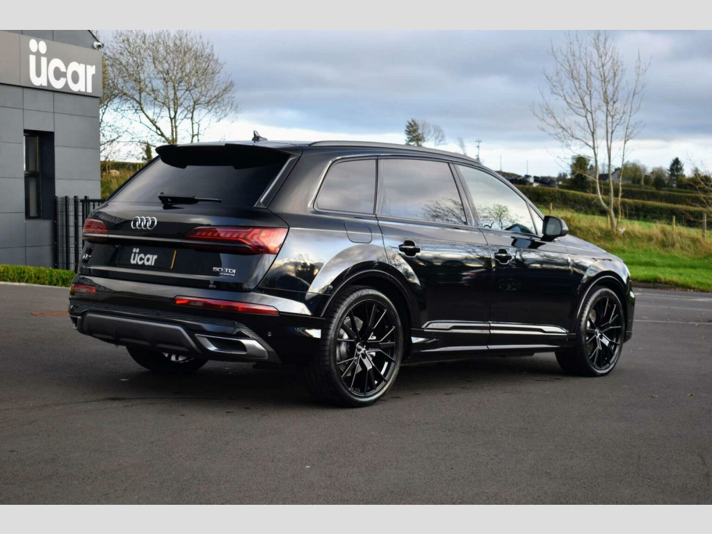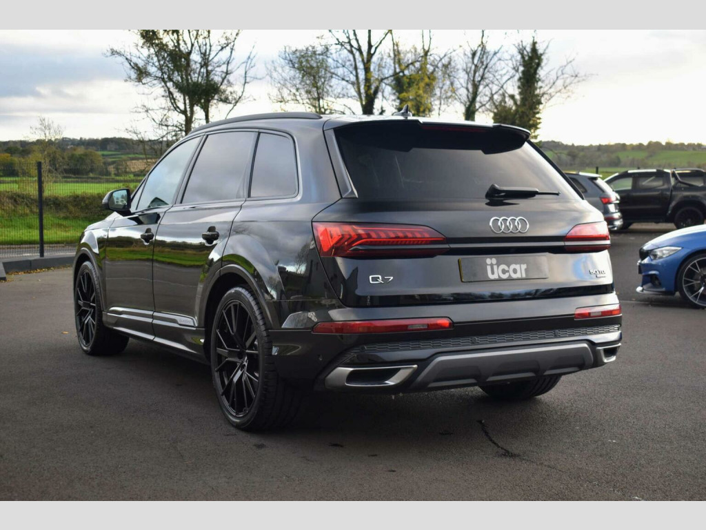 2022 Audi Q7 TDI 50 S-Line S-Tronic, finished in Mythos Black. Covered 48k Miles, Comes with a Full Service History and 2 Keys. Black Pack, Matrix LED Headlights, Adaptive Air Suspension, Virtual Cockpit , Park Assist Plus, 7 Seats, Ambient Lighting , Electric Heated Memory Seating, Multi Function Steering Wheel, Sat-Nav, Reverse Parking Camera, Front & Rear Parking Sensors, Privacy Glass etc, Fitted with Brand New 22 Audi Style Alloys (optional upgrade £1195 extra)