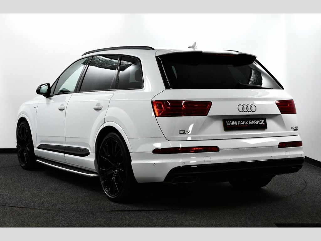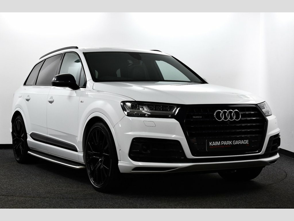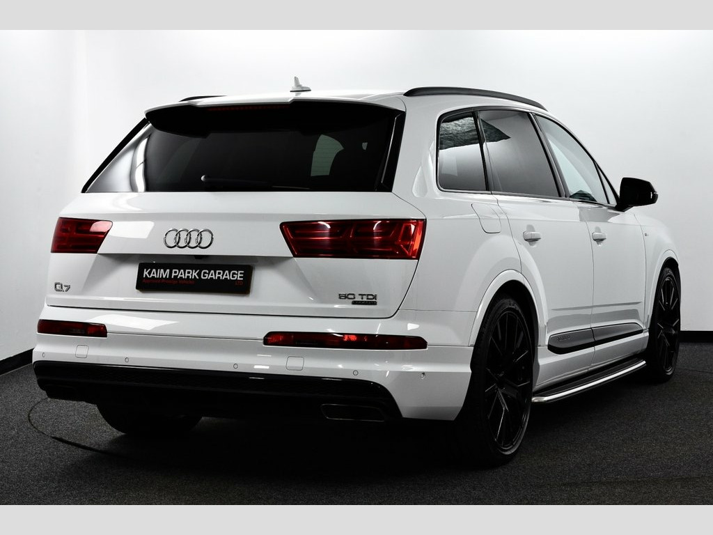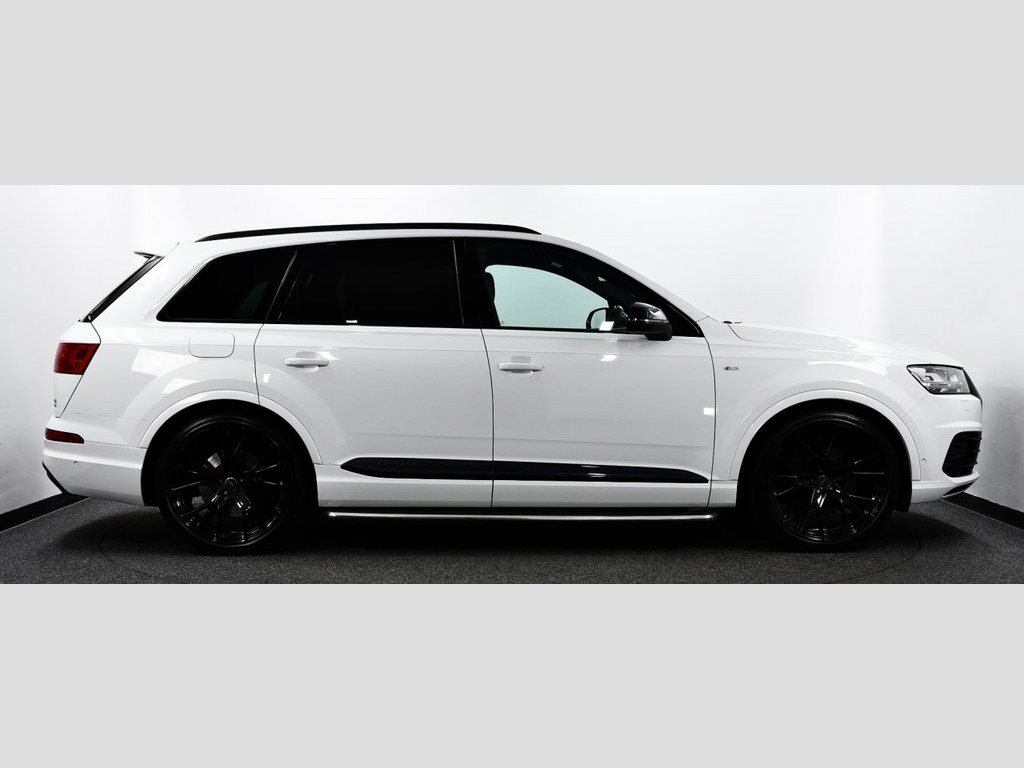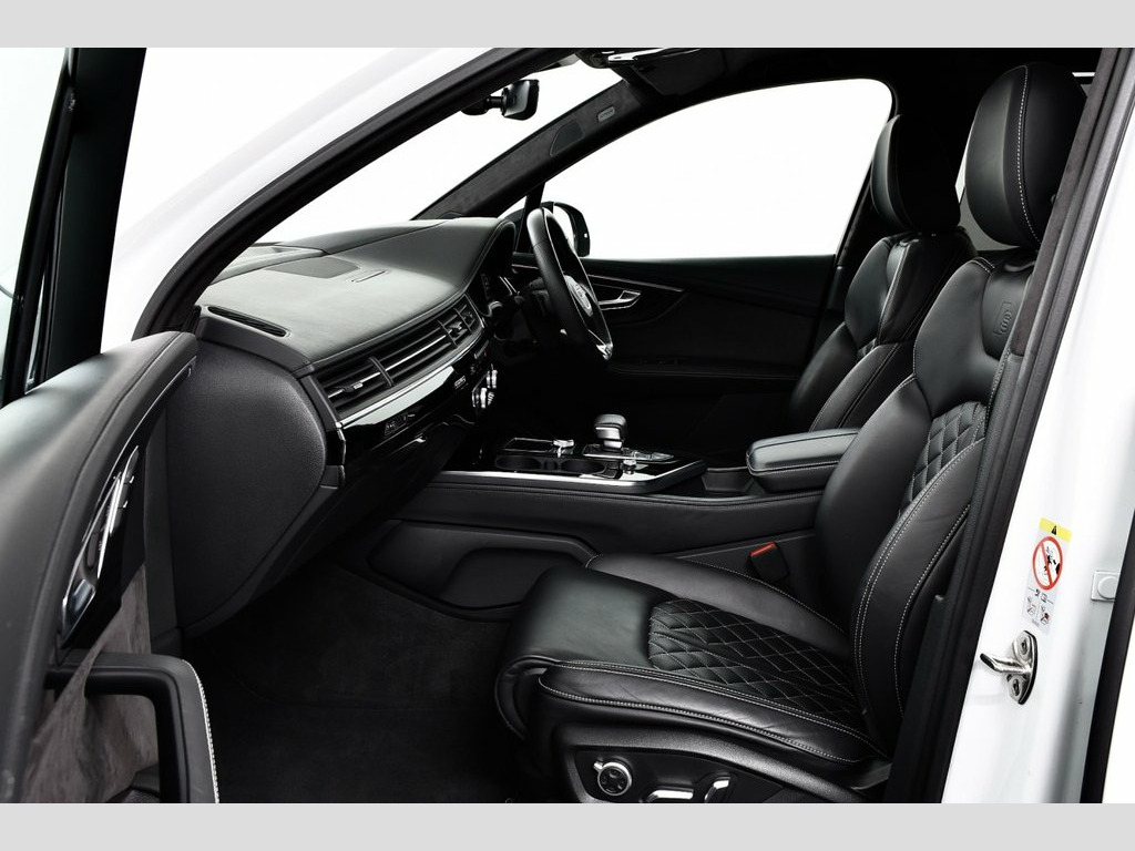 Glacier White metallic with Valcona leather - black with dark silver stitching + S sports seats plus, 1 Former Owner (2 total) from New covered only 48k miles & backed with Full Audi Service History, New style 50 TDi Q7 with 286 BHP, Stunning top of the range Vorsprung model with every Conceivable Extra, Massive saving off cost new price of £82,000! SPECIFICATION INCLUDES - Head up Display, Titanium black styling pack, Audi matrix LED headlights with LED rear lights + dynamic front and rear indicators, Electric panoramic glass sunroof, Power door closure, High beam assist, 22" 5-V Spoke aluminium star design sport titanium look gloss turned finish alloy wheels, Electric/heated/folding door mirrors with memory, Privacy glass, Running boards, Platinum grey front lip spoiler, Audi drive select, Adaptive air sports suspension, Power tailgate, Parking pack (Surround Cams + more), Tour pack (Adaptive cruise), Keyless Go access/ignition system, Advanced key, Audi virtual cockpit - 12.3" high-resolution LCD display with fully customisable instrument cluster, Audi phone box with wireless charging, Audi smartphone interface, Colour driver's information system display, MMI navigation plus with MMI touch, Voice control system, Mobile phone preparation with bluetooth interface, Audi music interface, DAB radio, DVD system, BOSE surround sound system, 3 Spoke sports multifunction flat bottomed leather steering wheel, Electrically adjustable front driver and passen Glacier White, Valcona Leather - S Sport Seats Plus - B