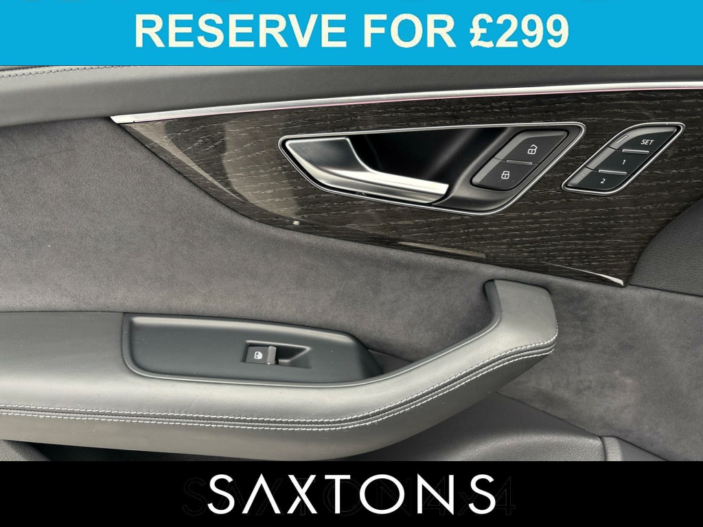 . Park Assist Remote, LED Matrix Headlamps, LED Matrix Headlamps, Park Assist Plus, Adaptive Cruise Control, Traffic Assist, ISOFIX, Lane Keeping Aid, 4 Zone Climate Control, Air Suspension, ISOFIX, LED Matrix Headlamps, Electric Seat Adjustment for Both Front Seats with Memory System, Multi-Functional Sports Steering Wheel, Audi Connect Package, Black Styling Package (Plus), Digital Audio Broadcasting, Audi Virtual Cockpit (Plus), 4-way Lumbar Support (Front Seats), Rear and Side Windows with Heat-Insulating Glazing, S-Line Bumpers, Cruise Control Including Speed Limiter, Comfort Center Armrest, 3rd Seat Row, Body Coloured Exterior Mirrors, Quattro (With Self-locking Center Differential), Audi Pre Sense Front, Automatic Slip-Control Differential, Long Wheelbase, Panoramic Glass Roof, Comfort Key with SAFELOCK, Black Roof Rails, Roof Rack Detection System, Audi Side Assist, Camera-Based Traffic Sign Recognition, Privacy Glass, Audi Phone Box Light, Bang & Olufsen Premium Sound System with 3D Sound, Power Adjustable Exterior Mirrors, Heated Exterior Mirrors, Power Folding Exterior Mirrors, Auto Dimming Exterior Mirrors, Memory Exterior Mirrors, Scuff Plates with Aluminium Inserts in Front, Illuminated, with ''S'' Logo, Audi Drive Select, Multi-Colour Ambient Lighting Package, Electric Steering Wheel Adjustment, Multifunction Camera, 360-Degree Cameras, Audi Connect Emergency Call & Service with Audi Connect Remote & Control, Audi Connect Navigation & Infotainment, Separate Daytime Running Light, Park Assist with Parking Aid Plus, Audi Pre Sense Rear, Anti-theft Alarm System, Driver and Front Passenger Airbag with Front Passenger Airbag Deactivation, Heated Front and Rear Seats, S line Logos Exterior, Head-up Display, Electric Auxiliary Air Heater, Start-Stop System with Generative Braking, Electric Open/Close Luggage Compartment, Heat-Insulating Windshield Glass, Electric Parking Brake with Auto Hold Function, Auto-dimming Rear View Mirror, Curtain Airbag System for Front and Rear Passengers Including Side Airbags, Headlamp Washer System, Without partition Translation, Extended Pedestrian Protection Measures.