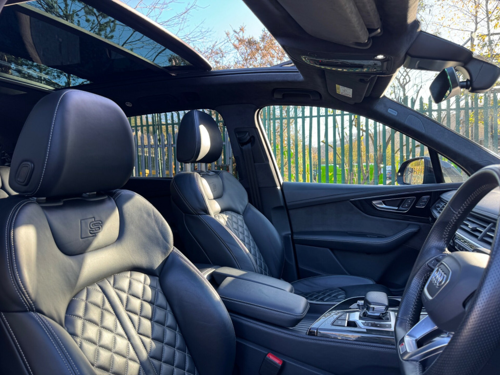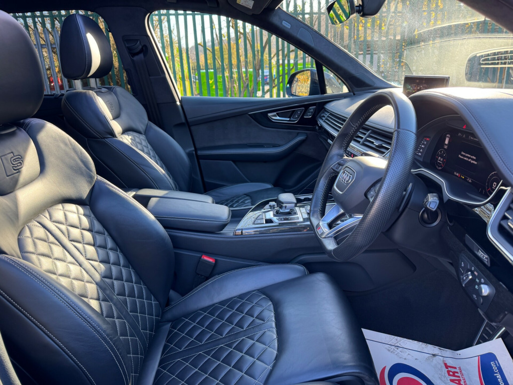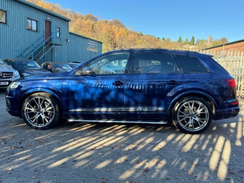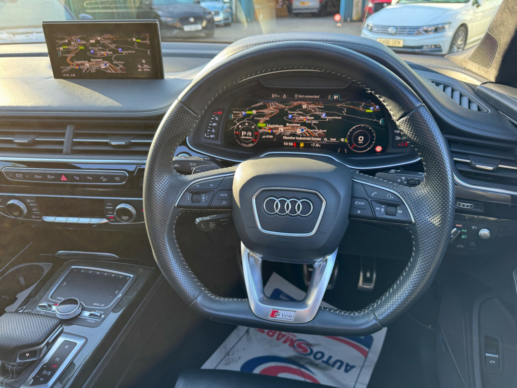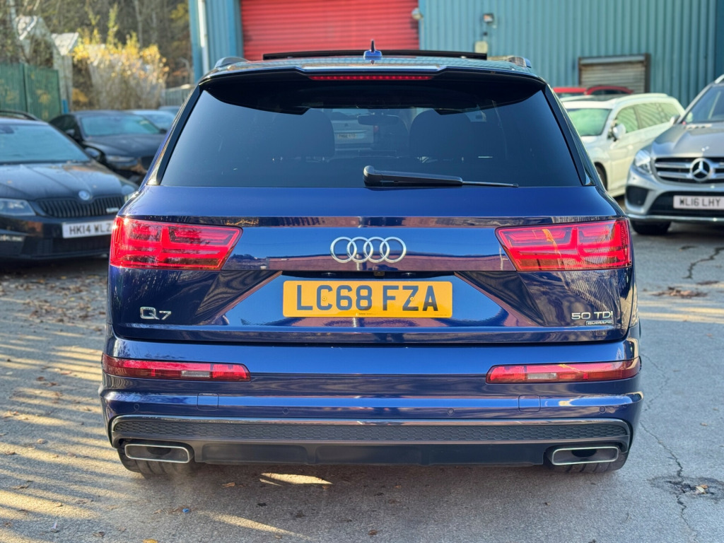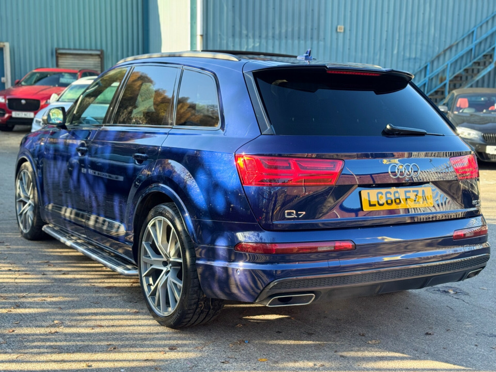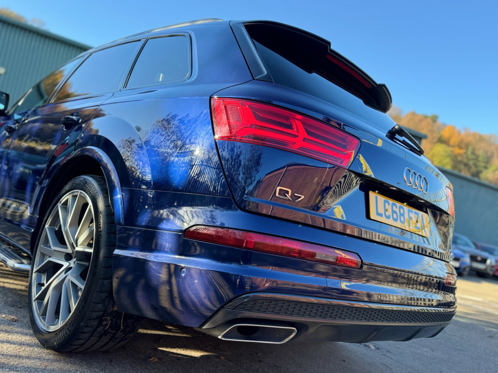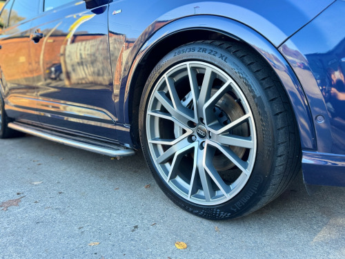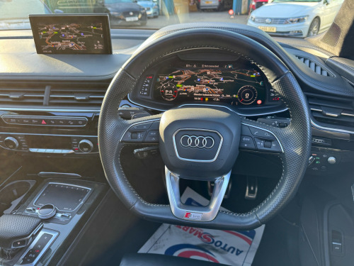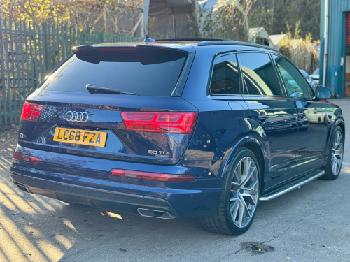 This 2019 Audi Q7 3.0 TDI V6 50 Vorsprung SUV, with 71893 miles on the clock, is a top-of-the-line diesel car that boasts 7 seats and 5 doors, making it the perfect family vehicle. With an MOT that doesn't expire until 10/01/2026 and ULEZ compliance, it offers peace of mind for the road ahead. The stylish SUV includes impressive features such as 22in Alloy Wheels, Anti Theft Locking Wheel Bolts, Door Mirrors with Memory Function, Electric Windows, and a Panoramic Glass Sunroof. This Audi Q7 is not only practical but also luxurious, making it a standout choice for anyone in the market for a reliable and high-performance SUV.UK delivery available.Part exchange welcome.AA extended warranty partner.AA approved dealership.Trading standards approved dealership.Autotrader highly rated dealership. in alloy wheels - 5-v-spoke aluminium star design audi sport, anti theft locking wheel bolts, door mirrors - heated-electrically adjustable-folding with memory function, electric windows - front and rear, panoramic glass sunroof, privacy glass, running boards, titanium black door mirrors, titanium black styling pack with black roof rails, tyre repair kit, 6-airbag system, advanced key, anti-theft alarm, audi hill hold assist, audi pre-sense city, esc - electronic stabilisation control inc abs - ebd - asr - edl, electromechanical parking brake, first aid kit and warning triangle, hill descent control, isofix child seat mounting, keyless go with remote central locking, parking assistance pack, seat belt monitoring, tour pack, 7 seats, audi virtual cockpit, auto-dimming rear-view mirror, black alcantara headlining, comfort and sound package, deluxe four-zone automatic climate control, double sunvisor, driver and front passenger memory function for the electrically adjustable front seats, electrically adjustable front seats with 4-way lumbar support and driver memory function, electrically adjustable steering column, extended led interior lighting package - multi-coloured, front centre armrest - adjustable, front and rear floor mats, full leather package, heated front seats, heated outer rear seats for the second row, interior light package, luggage compartment sill protection in stainless steel, pedals in stainless steel, power door closure, power operated tailgate, steering wheel - 3-spoke leather-multi-function-flat bottomed-sports-shift paddles, sun blinds - manual for rear and rear door windows, tool kit, upper inlays in high-gloss black with lower inlays in oak grey, adaptive air sport suspension, audi drive select, audi parking system plus, colour drivers information system with 7in high-resolution tft screen, head-up display, power steering - servotronic, rear view camera, tyre pressure loss indicator, voice control system, audi connect infotainment services - 36 month trial, audi connect safety and service, audi phone box with wireless charging, audi smartphone interface, bose 3d sound system, bluetooth interface, mmi navigation plus including mmi touch, mmi radio plus and dab, high-beam assist, light and rain sensor, matrix led headlights with led rear lights and dynamic rear indicators