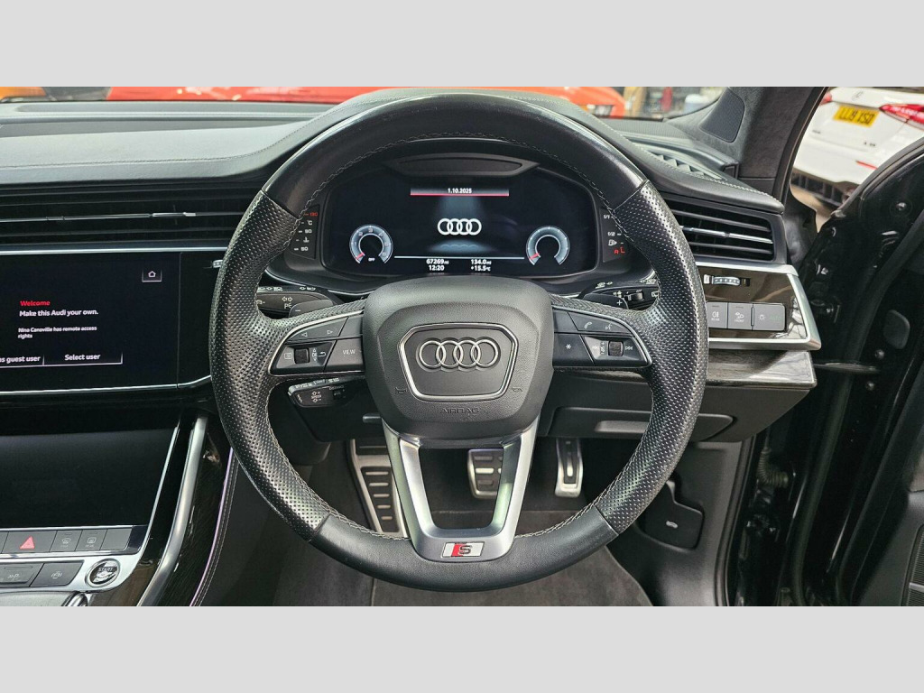This 2021 Audi Q7 TDI V6 Vorsprung is a superb example, having had only one owner since new. This impressive seven seat SUV boasts a powerful 3.0 litre diesel engine, paired with Audis renowned four wheel drive system for confident handling in all conditions. As a Euro 6 compliant vehicle, it meets stringent emission standards. The Vorsprung trim level ensures a wealth of premium features, including heated front and outer rear seats for exceptional comfort, a sophisticated Head Up Display to keep your eyes on the road, and the Audi Smartphone Interface for seamless connectivity with Android Auto and Apple CarPlay. Experience effortless manoeuvring with the Audi Parking System Plus, featuring front and rear sensors. The multi function leather steering wheel is heated and includes shift paddles, offering a sporty and engaging driving experience. With a substantial towing weight of 3500 kg and generous boot space, this Q7 is as practical as it is luxurious. Its acceleration from 0 to 62mph in just 6.5 seconds demonstrates its potent performance, setting it apart from many other vehicles in its class.
