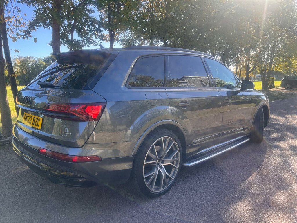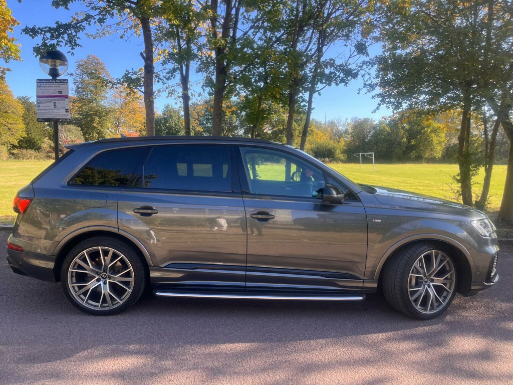 DRIVEN EXACTLY 81806 MILES, FULL HISTORY, RECENT SERVICE, 2 KEYS, FULLY LOADED Q7. This 2022 Audi Q7 TDI V6 Vorsprung boasts a clear vehicle history, offering peace of mind for its next owner. This impressive seven seater features a powerful 3.0 litre diesel engine paired with Audis renowned four wheel drive system, ensuring confident performance in all conditions. As a Euro 6 compliant vehicle, it meets stringent emission standards. The Vorsprung trim level signifies a high specification, and this particular model includes a panoramic glass sunroof, deluxe four zone automatic climate control for ultimate passenger comfort, and the convenience of Audis phone box with wireless charging. The Audi Q7 TDI V6 Vorsprung excels with its dynamic capabilities, accelerating from 0 to 62 miles per hour in a swift 6.5 seconds, demonstrating its potent performance. Its substantial towing weight of 3500 kg makes it a versatile choice for those needing to tow. The inclusion of the Tour Pack, featuring adaptive cruise control, enhances the driving experience on longer journeys. Furthermore, the advanced Audi HD Matrix LED headlights with Audi Laser Light and dynamic indicators provide superior visibility and a distinctive visual signature. This Q7 also offers generous boot space, making it a practical and capable vehicle for families and adventurers alike.