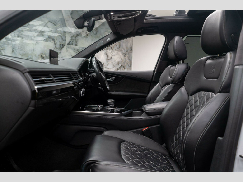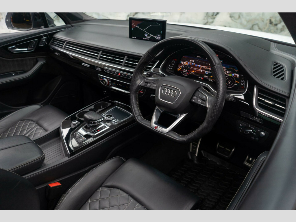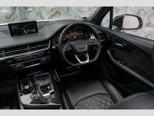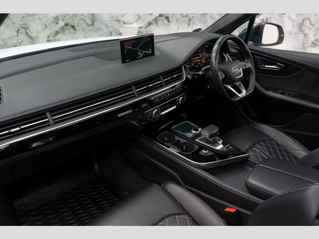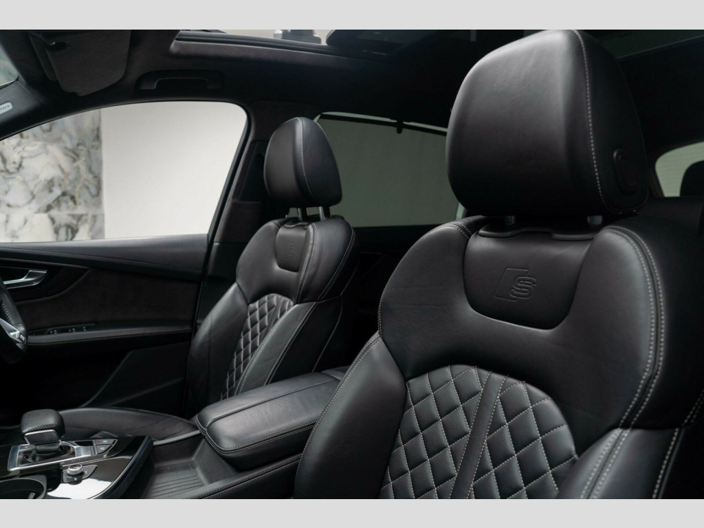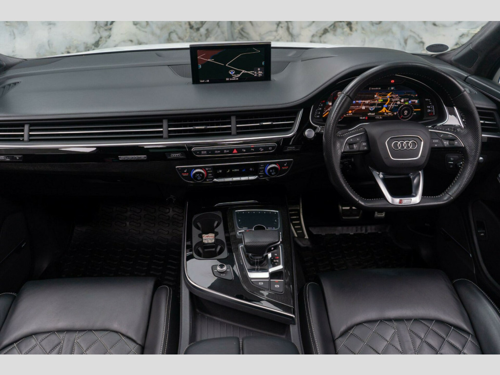 in alloy wheels - 5-v-spoke aluminium star design audi sport, 6-airbag system, 7 seats, adaptive air sport suspension, advanced key, anti theft locking wheel bolts, anti-theft alarm, audi connect infotainment services - 36 month trial, audi connect safety and service, audi drive select, audi hill hold assist, audi parking system plus, audi phone box with wireless charging, audi pre-sense city, audi smartphone interface, audi virtual cockpit, auto-dimming rear-view mirror, bose 3d sound system, black alcantara headlining, bluetooth interface, colour drivers information system with 7in high-resolution tft screen, comfort and sound package, deluxe four-zone automatic climate control, door mirrors - heated-electrically adjustable-folding with memory function, double sunvisor, driver and front passenger memory function for the electrically adjustable front seats, esc - electronic stabilisation control inc abs - ebd - asr - edl, electric windows - front and rear, electrically adjustable front seats with 4-way lumbar support and driver memory function, electrically adjustable steering column, electromechanical parking brake, extended led interior lighting package - multi-coloured, first aid kit and warning triangle, front centre armrest - adjustable, front and rear floor mats, full leather package, head-up display, heated front seats, heated outer rear seats for the second row, high-beam assist, hill descent control, isofix child seat mounting, interior light package, keyless go with remote central locking, light and rain sensor, luggage compartment sill protection in stainless steel, mmi navigation plus including mmi touch, mmi radio plus and dab, matrix led headlights with led rear lights and dynamic rear indicators, panoramic glass sunroof, parking assistance pack, pedals in stainless steel, power door closure, power operated tailgate, power steering - servotronic, privacy glass, rear view camera, running boards, seat belt monitoring, steering wheel - 3-spoke leather-multi-function-flat bottomed-sports-shift paddles, sun blinds - manual for rear and rear door windows, titanium black door mirrors, titanium black styling pack with black roof rails, tool kit, tour pack, tyre pressure loss indicator, tyre repair kit, upper inlays in high-gloss black with lower inlays in oak grey, voice control system