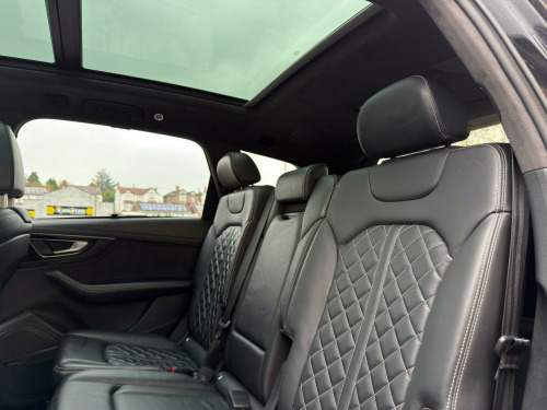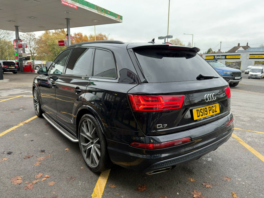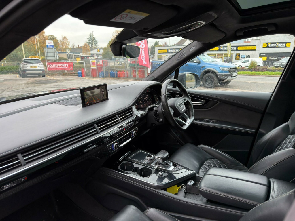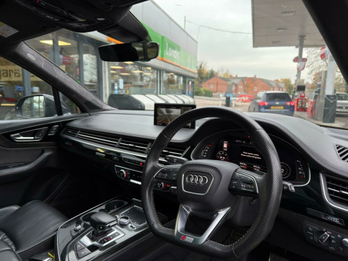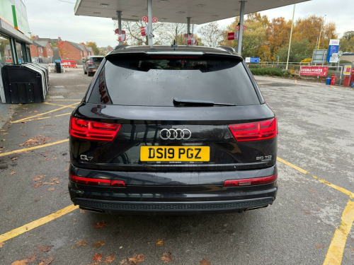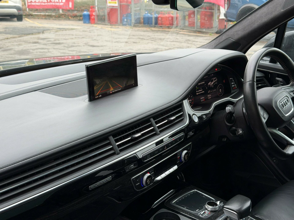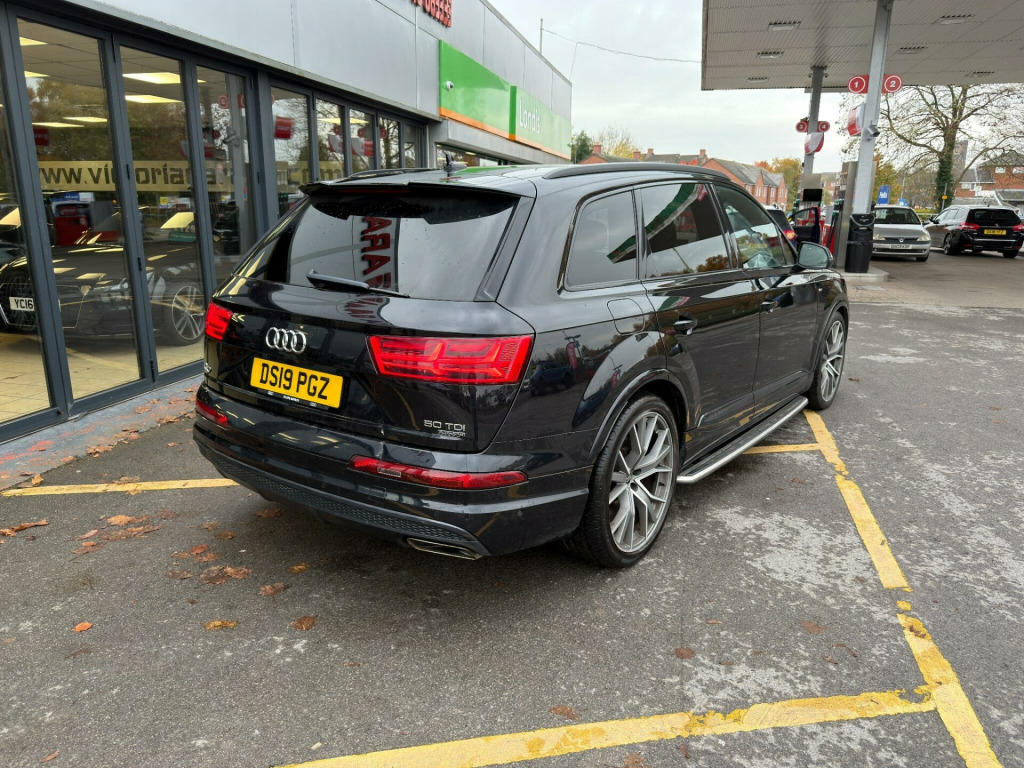 This 2019 Audi Q7 TDI V6 Vorsprung boasts a full dealership service history and has had only one owner from new, with its MOT valid until June 2026. This Euro 6 compliant model features a powerful 3.0L Diesel engine paired with Four Wheel Drive, offering a towing weight of 3500 kg. Inside, you'll find comfortable seating for seven, and the Vorsprung trim includes desirable features such as Audi Exclusive Floor Mats, Advanced Key with keyless entry, a Rear View Camera with parking assistance, Audi Parking System Plus with front and rear sensors, and a panoramic glass sunroof with opening function. The vehicle history check is clear, and the last service was completed on 27th December 2024 at 88,388 miles.The Audi Q7 TDI V6 Vorsprung delivers an impressive performance, accelerating from 0 to 62mph in just 6.3 seconds, demonstrating its capability and responsiveness. This acceleration figure is a key indicator of how this particular Q7 performs compared to other vehicles in its class. The combination of its robust engine, advanced Quattro four wheel drive system, and spacious seven seat interior makes it a highly versatile and capable SUV, suitable for both family journeys and demanding towing needs.. 22in Alloy Wheels - 5-V-Spoke Aluminium Star Design Audi Sport, 6-Airbag System, 7 Seats, Adaptive Air Sport Suspension, Advanced Key, Anti Theft Locking Wheel Bolts, Anti-Theft Alarm, Audi Connect Infotainment Services - 36 Month Trial, Audi Connect Safety and Service, Audi Drive Select, Audi Hill Hold Assist, Audi Parking System Plus, Audi Phone Box with Wireless Charging, Audi Pre-Sense City, Audi Smartphone Interface, Audi Virtual Cockpit, Auto-Dimming Rear-View Mirror, BOSE 3D Sound System, Black Alcantara Headlining, Bluetooth Interface, Colour Drivers Information System with 7in High-Resolution TFT Screen, Comfort and Sound Package, Deluxe Four-Zone Automatic Climate Control, Door Mirrors - Heated-Electrically Adjustable-Folding with Memory Function, Double Sunvisor, Driver and Front Passenger Memory Function for the Electrically Adjustable Front Seats, ESC - Electronic Stabilisation Control inc ABS - EBD - ASR - EDL, Electric Windows - Front and Rear, Electrically Adjustable Front Seats with 4-Way Lumbar Support and Driver Memory Function, Electrically Adjustable Steering Column, Electromechanical Parking Brake, Extended LED Interior Lighting Package - Multi-Coloured, First Aid Kit and Warning Triangle, Front Centre Armrest - Adjustable, Front and Rear Floor Mats, Full Leather Package, Head-Up Display, Heated Front Seats, Heated Outer Rear Seats for the Second Row, High-Beam Assist, Hill Descent Control, ISOFIX Child Seat Mounting, Interior Light Package, Keyless Go with Remote Central Locking, Light and Rain Sensor, Luggage Compartment Sill Protection in Stainless Steel, MMI Navigation Plus including MMI Touch, MMI Radio Plus and DAB, Matrix LED Headlights with LED Rear Lights and Dynamic Rear Indicators, Panoramic Glass Sunroof, Parking Assistance Pack, Pedals in Stainless Steel, Power Door Closure, Power Operated Tailgate, Power Steering - Servotronic, Privacy Glass, Rear View Camera, Running Boards, Seat Belt Monitoring, Steering Wheel - 3-Spoke Leather-Multi-function-Flat Bottomed-Sports-Shift Paddles, Sun Blinds - Manual for Rear and Rear Door Windows, Titanium Black Door Mirrors, Titanium Black Styling Pack with Black Roof Rails, Tool Kit, Tour Pack, Tyre Pressure Loss Indicator, Tyre Repair Kit, Upper Inlays in High-gloss Black with Lower Inlays in Oak Grey, Voice Control System, Audi Exclusive Floor Mats, 22in Alloy Wheels - 5-Arm-trapezoid Design Forged in Anthracite Black - Diamond Cut Finish, Valcona Leather - S Sport Seats Plus - Black with Dark Silver Stitching. Full dealership history