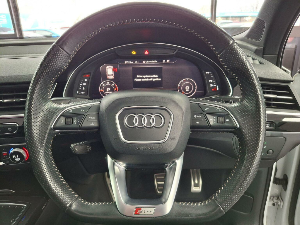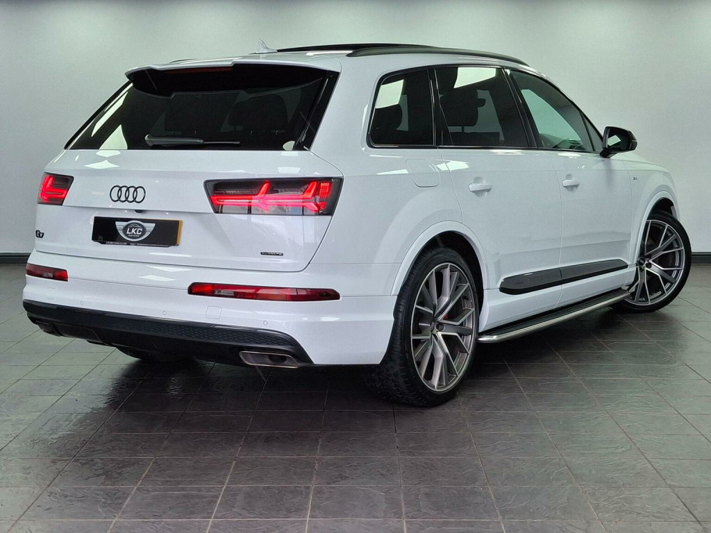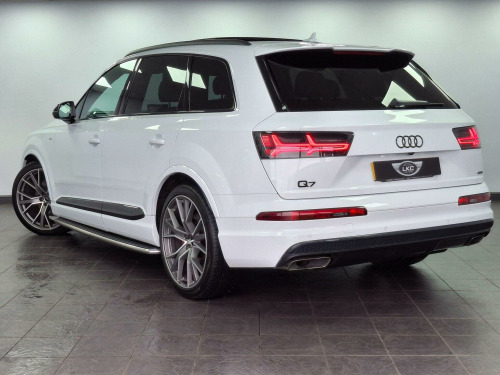 Step into a world where power meets precision and presence becomes effortless, the Audi Q7 V6 Black Edition isnt just an SUV—its a statement. Beneath its sculpted bonnet lies a refined V6 engine delivering smooth, confident performance. Whether youre gliding through city streets or conquering long motorway stretches, the Q7 responds with strength, stability, and unmistakable Audi engineering.***Black Edition***Panoramic Roof***22 Alloys***Side Steps***12 Months MOT***6 Months Warranty***This 2018 Audi Q7 TDI V6 Black Edition presents an exceptional opportunity with its remarkably low mileage of just 55,004 miles for its age. This impressive estate car, finished in the striking Black Edition trim, boasts a powerful 3.0 litre diesel engine paired with a smooth four wheel drive system, ensuring confident performance in all conditions. With seating for seven, it offers ample space for families and friends, while its Euro 6 emission class reflects its modern efficiency. The Q7 also offers a substantial towing weight of 3500 kg, making it a versatile choice for those needing to tow. Further enhancing the driving experience are a host of desirable features. Navigate with ease thanks to the rear view camera and enjoy seamless connectivity with the Audi Smartphone Interface, compatible with both Android Auto and Apple CarPlay. Comfort is assured with heated front seats, and the panoramic glass sunroof floods the cabin with natural light. Automatic headlights and rain sensors provide added convenience, while its position in a low insurance group makes it an economical choice. This Q7 also delivers exhilarating performance, accelerating from 0 to 62 miles per hour in a swift 6.5 seconds, demonstrating its dynamic capabilities compared to other vehicles in its class.