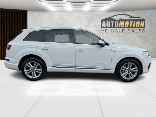 2016 Audi Q7 S Line Quattro, 3.0 TDI V6, Automatic, 4 Wheel Drive Finished in Stunning Audi Arctic White with Full Premium Black S Line Embossed Leather Interior. , This rare Q7 really needs to be seen to be appreciated, it looks and drives great has covered 84,000 miles and will be happily supplied by us Fully Serviced up to date and with a brand new 12 months MOT upon sale and is also ULEZ compliant. , The 3.0-litre TDI V6 diesel engine offers a good balance of power and efficiency, delivering strong performance while maintaining decent fuel economy. It comes equipped with Audis MMI infotainment system, featuring a responsive touchscreen, smartphone integration and advanced driver assistance features. The Q7 has a roomy interior with the option for a third row of seats, making it a practical choice for families needing extra space. Audis Quattro all-wheel-drive system enhances traction and stability, making the Q7 capable in various driving conditions. This Q7 is equipped with numerous safety features, including adaptive cruise control, lane departure warning, and automatic emergency braking, contributing to its high safety ratings. , Viewing and test drive is highly recommended on this lovely Quattro Q7 which we will also supply with 3 months warranty at the point of sale. , 19,495 Part Exchange is welcome and Finance is available at great rates. , Here at Automotion Vehicle Sales all our vehicles undergo a rigorous Multipoint Inspection and are Valeted and Detailed to a high standard prior to sale.