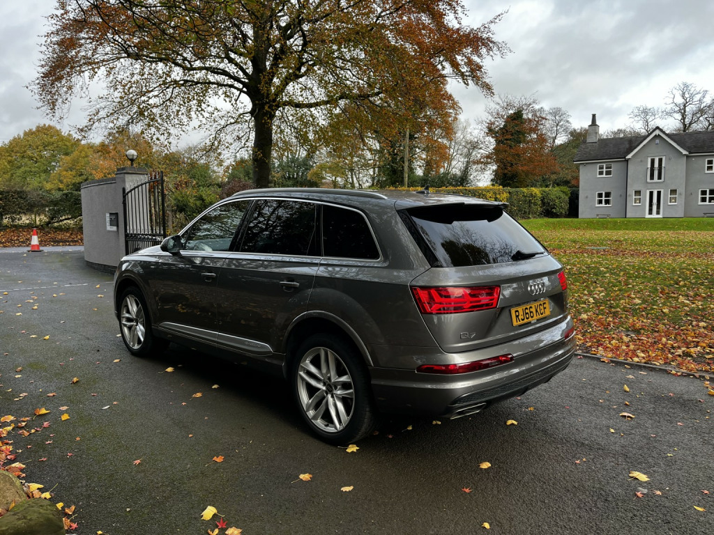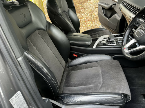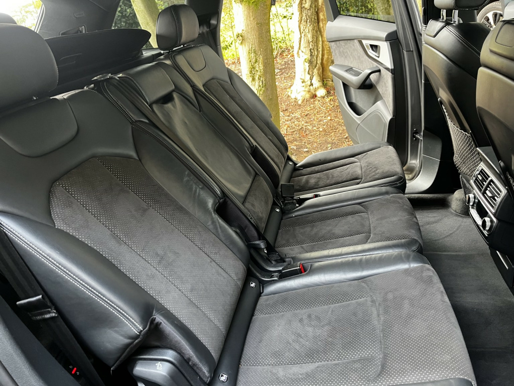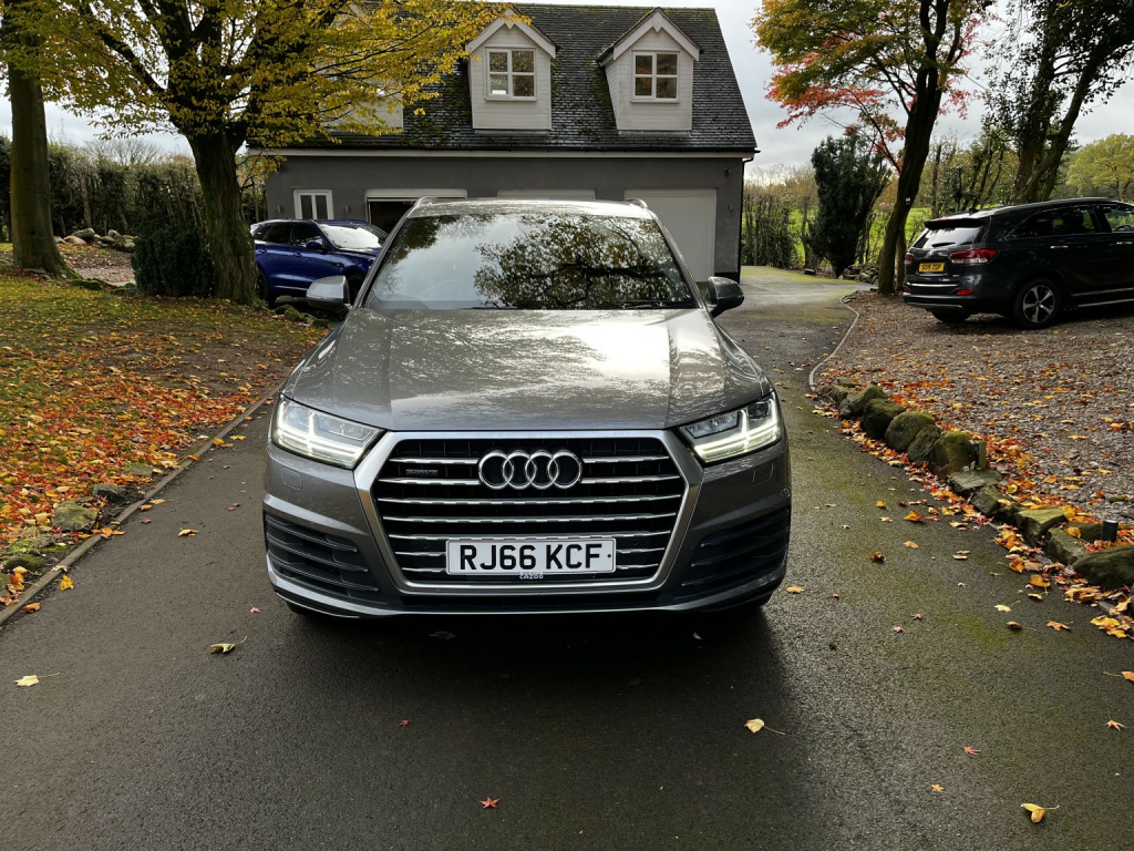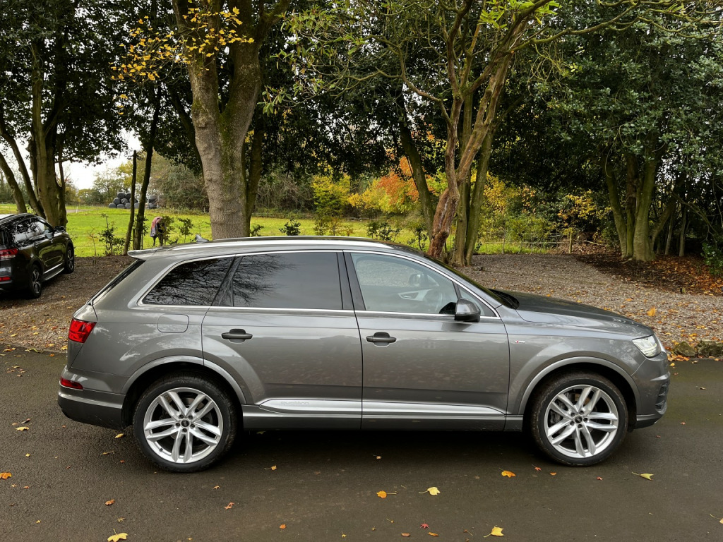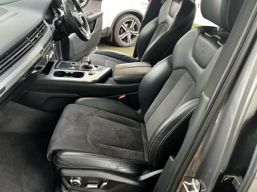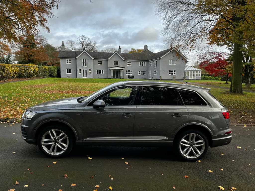 Fantastic Specification Face lift New Model Audi Q7 3.0 Tdi Quattro S Line 272 bhp,In Grey Metallic, pearl effect paint With Black Leather/Alcantara S line Sports heated front seats, 7 Seats, Virtual dash board, Head up Display, Technology pack,GPS Satellite Navigation, Rear Drop Down DVD Player, Other Features Include, 21 Inch Multi Spoke Alloy Wheels, Rear view camera, Exterior mirrors - heated, electrically adjustable, folding and auto-dimming, Four zone electronic climate control for the front and rear, Also Key Features Include, Audi drive select, MMI - Multi Media Interface control system, Colour drivers information system display, Functionality For Seamless Journeys. Also Technologies, Including Collision Warning System, Front and Rear Radar Type Parking Sensors, Cruise Control, Rain Sensing Windscreen Wipers, Voice Control For Media Functions, Bluetooth Wireless Smart Phone Connectivity, Wifi Hotspot, DAB Digital Radio, Keyless Start, Anti Dazzle Rear View Mirror, Remote electric boot opening/closing, Service interval indicator, Servotronic PAS, Speed limiter, Voice control system, 2 USB ports, Audi music interface, Aux-in socket,Adaptive lights, heat insulating glass, Headlight washers, LED daytime running lights, 35/30/35 split fold 2nd row seats, Gearshift paddles, ISOFIX on front passenger and rear seats, Leather gear knob, Luggage compartment cover,Q7, 3 point seatbelts on all seats, ABS and Electronic Brake force Distribution, Curtain airbags, Driver and passenger airbags, EDL and ASR, Electrically operated child locks on rear doors, Electromechanical parking brake, ESP,Front side airbags, Hill descent control, Hill hold assist, Seatbelt warning, Traction control, Tyre pressure monitoring system, Alarm with interior monitoring, Immobiliser, Remote central locking, and a FSH added, please enquire. , All Our Vehicles Come With A Full Multipoint Check & RAC Warranty. FULL SERVICE HISTORY ADDED.PLEASE ENQUIRE. FULLY HPI CHECKED,PART EXCHANGE WELCOME,WITH FINANCE AVAILABLE WITH NO DEPOSIT TO PAY IF REQUIRED,, , All our vehicles for sale, comes with a comprehensive RAC approved warranty backed up by all the franchises with 12 months RAC break down cover added at no cost, Knowing you in safe hands anywhere in the uk.24/7. As we are an approved recognised and accredited RAC franchise dealership.