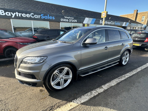 Audi Q7 3.0 TDI V6 S line Plus finished in Grey (Auto), 103000 miles, only 1 previous owner. , Welcome to the sale of probably the cleanest for year audi q7 on the market , 1 previous owner only , 103,000 miles with huge amount of history 9 services total, all tyres are on 7mm , comes with 2 keys , drives absolutly faultless , , being a s line plus , comes with a huge amount of spec , will update when the car arrives later today , , we tend to sell these really quickly so dont delay , especially the low owner ship is un heard off , and great history to suit, , Only £11,295, , Because we are a RAC-approved dealer, all our vehicles come with free RAC breakdown cover, a free RAC history check, 12 months MOT, and a full service. , Nationwide delivery is available. , Call 01406 373474 for more information (even out of hours), , Please also feel free to contact us outside of hours to discuss this vehicle further.
