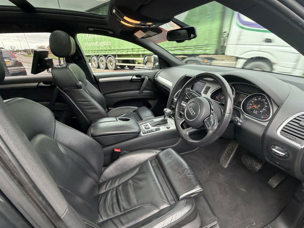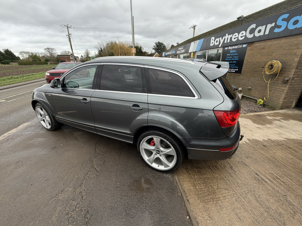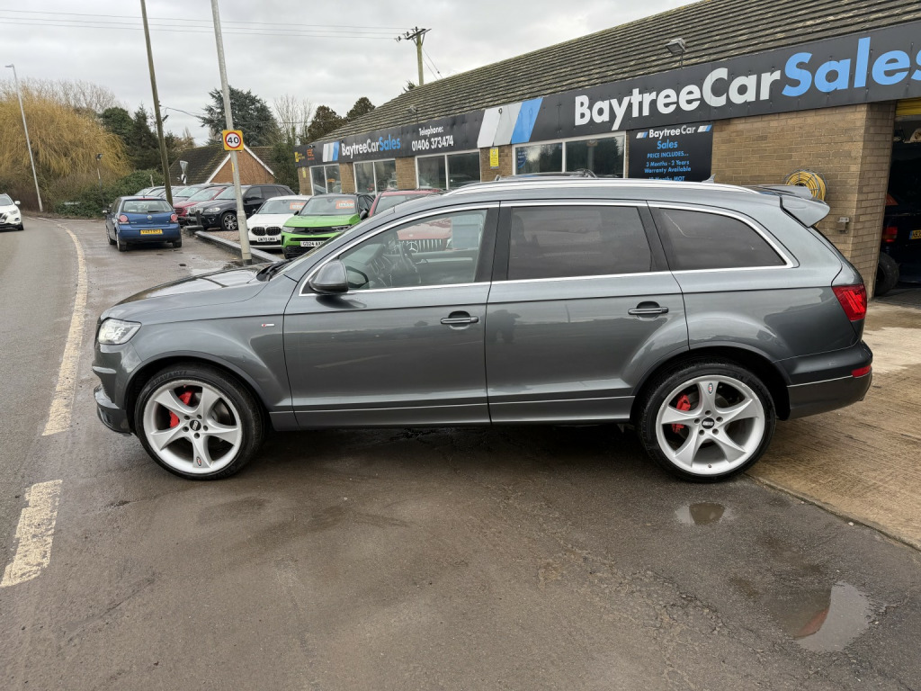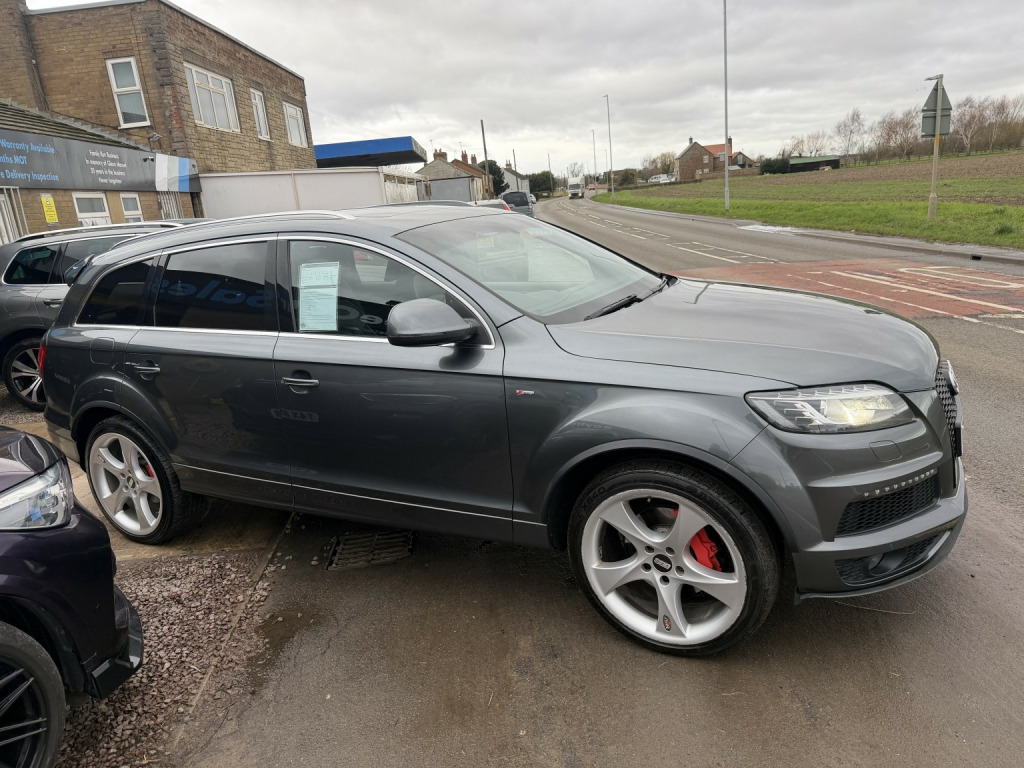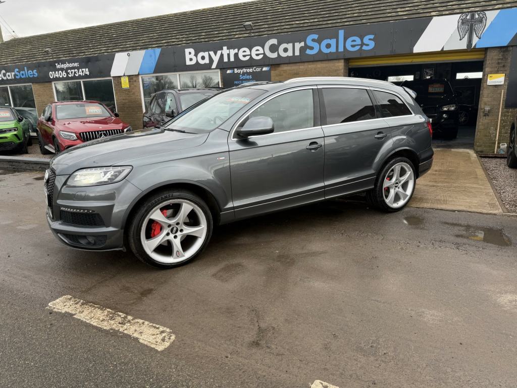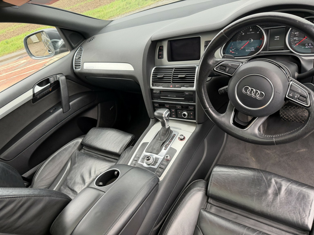 Audi Q7 3.0 TDI V6 S line Plus finished in Daytona Grey, Pearl Effect (Auto), , 82,000 miles, Full Service History, 2 previous owners. , Welcome to the sale of this outstanding Audi Q7 S line Plus — the rare, top specification model and a true flagship example. , This is not your standard Q7. Being the highly sought-after S line Plus, this vehicle was specified from factory with over £9,000 worth of optional extras, making it one of the best-equipped examples available. , It has covered just 82,000 miles with full service history and has clearly been very well maintained. On the road this car feels more like a limousine than an SUV — smooth, powerful, refined and exceptionally comfortable. , Factory options include over £9,000 of upgrades:, , ???? Verano Leather Plus upholstery with electric sports seats (£1,380), ???? Panoramic glass sunroof (£1,275), ???? Rear Seat Entertainment Package (£1,050), ???? 21 5-segment-spoke alloy wheels with 295/35 R21 tyres (£970), ???? Audi Parking System Advanced with reversing camera (£725), ???? Stainless steel running boards (£715), ✨ Pearl Effect Daytona Grey paint (£655), ???? BOSE Surround Sound System (£585), ???? Double glazing with privacy glass (£390), ???? Electric tailgate (£385), ???? Audi Music Interface – AMI (£255), ???? Heated seats (front and outer rear) (£140), ???? Colour Drivers Information System (DIS), , The S line Plus styling combined with these options makes this example stand out significantly from standard models on the market. , The 3.0 TDI V6 delivers effortless motorway cruising, strong towing capability and refined performance exactly as you would expect from Audis flagship SUV. , A rare opportunity to secure a very high specification, properly maintained Q7 in arguably the best colour combination. , Only £12,995, , Because we are a RAC-approved dealer, all our vehicles come with free RAC breakdown cover, a free RAC history check, 12 months MOT, and a full service. , Nationwide delivery is available. , Call 01406 373474 for more information (even out of hours). , Please feel free to contact us outside of hours to discuss this vehicle further.