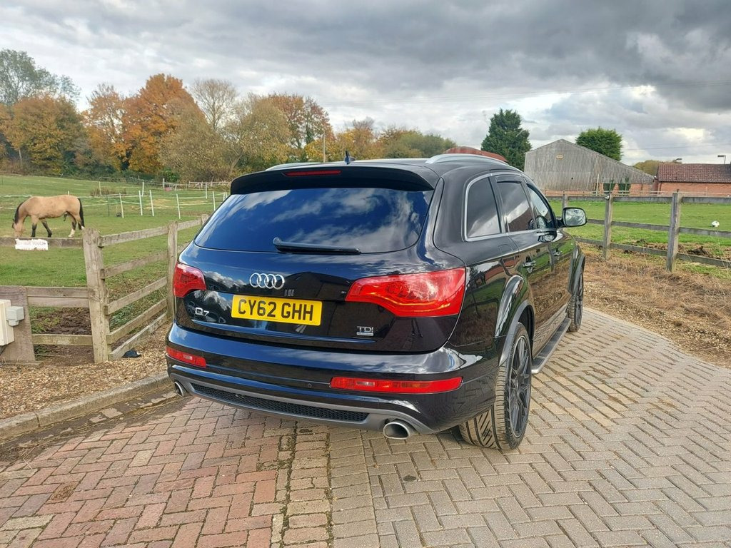 A truly outstanding AUDI Q7 3.0 TDI V6 S line Plus SUV 5dr Diesel Tiptronic in sleek black, this SUV offers the perfect blend of luxury. Supplied with two keys and full service history, and having been professionally valeted ahead of sale, it's in superb condition. In this S Line Plus Q7 you'll find full leather interior with heated front seats, electrically powered front seats, Lane departure warning, Blind spot monitoring. The car is equipped with satellite navigation, Bluetooth including hands-free and audio streaming, DAB digital radio. For convenience and safety there's cruise control, front and rear parking sensors, a reversing camera, automatic headlights. With the practicality of seven seats, quattro all-wheel drive, Tiptronic automatic transmission, dual-zone climate control, powered tailgate and privacy glass, this particular Q7 is a must see for anyone looking for a large SUV. We are located at our new premises in the village of Stevington - Approximately 10 Minutes from Bedford town centre. We are happy to collect you from Bedford train station for free. viewing by appointment only! PLEASE CALL TO ENSURE THE CAR IS STILL AVAILABLE BEFORE ARRIVAL. 12V Power Socket - Centre Console, 12V Power Socket - Luggage Compartment, 12V Power Socket - Rear x2, 21in Alloy Wheels - 5-Segment-Spoke Desi, 3D and Topographical Mapping, 6.5in Display Screen, ABS - Anti-Lock Braking System, AMI - Audi Music Interface, AUX-IN Socket, Active Door Reflectors, Adaptive Air Suspension, Advanced 3D Building Display, Advanced Speech Recognition, Air Vent Sleeves - Aluminium Look, Airbags - Driver, Airbags - Front Passenger, Airbags - Front Side System, Airbags - Sideguard Curtain, Alarm - Thatcham Category 1, Aluminium Roof Rails, Ambient Lighting - Centre Console, Anti Theft Locking Wheel Bolts, Audi Exclusive Piping, Audi Parking System Advanced with Rear V,