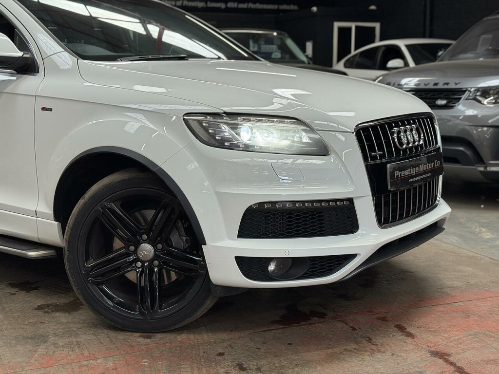 Turn heads and travel in comfort with this stunning 2013 Audi Q7. Combining Audi’s renowned engineering with spacious 7-seat practicality, this premium SUV is perfect for families, adventurers, or anyone who appreciates refined driving. Don’t settle for less – drive a Q7. FEATURES & HIGHLIGHTS:Sleek black exterior with chrome accentsPowerful & efficient [Insert Engine Spec]Legendary Audi quattro all-wheel drive – superior grip & controlSpacious 7-seater – perfect for families or long tripsPremium leather interior with heated front seatsPanoramic sunroof for a luxury driving experienceMMI navigation system with built-in sat navDual-zone climate control + rear air conditioningReverse camera and parking sensorsBOSE premium surround sound system 20” Audi alloys with near-new tyresElectric tailgate for easy loading Condition:Very well cared for – clean inside and out. Drives beautifully with no issues and maintained to a high standard. WHY BUY THIS Q7?If you're after a prestige SUV that delivers comfort, safety, and performance in a premium package, this 2013 Audi Q7 is hard to beat. Whether you're hauling the family, towing, or just cruising in style, the Q7 handles it all with class. Enquire Now!Test drives welcome. First to see will buy – don’t miss out on this opportunity to own a luxury SUV for a great price. WHY NOT CONTACT US DIRECTLY FOR YOUR FINANCE ENQUIRY, CONTACT THE SALES TEAM ON 0131 344 4675 TO ARRANGE A SUITABLE FINANCE PACKAGE. WE ARE LICENSED CREDIT BROKERS AND FCA REGULATED AND ARE ABLE TO PROVIDE HP AND PCP DEALS. WE ARE ALWAYS WILLING TO TAKE PART EXCHANGES , CONTACT THE SALES TEAM DIRECTLY TO HAVE A VALUATION OF YOUR VEHICLE! THE SALES TEAM ARE AVAILABLE ON 0131 344 4675 NATIONWIDE DELIVERY AVAILABLE, CREDIT/DEBIT CARDS ACCEPTED. SHOULD YOU REQUIRE ANY FURTHER DETAILS PLEASE DO NOT HESITATE TO CONTACT US ON 0131 344 4675 -. 12V Power Socket - Centre Console, 12V Power Socket - Rear x2, 6.5in Colour Display Screen, AMI - Audi Music Interface, CD/Radio, DAB Digital Radio, Display Screen Colour 7in High Resolution, FM-AM Radio, Hard Drive - 40GB, MMI Radio Plus with DSP Sound System, Mobile Telephone Preparation - High with Audi Connect, MP3 and WMA Compatible CD Player, Satellite Navigation System - HDD Based, SD Card Reader x2, SDHC Card Reader x2, Single CD-DVD Player, Technology Package, Advanced Speech Recognition, Audi Parking System Advanced, Audi Parking System Rear with Acoustic Indicators, Colour Drivers Information System - DIS, Cruise Control, Efficiency Program in the Drivers Information System - DIS, Parking Sensors - Front, 21in Alloy Wheels - 5-Segment-Spoke Design, Aluminium Roof Rails, Anti Theft Locking Wheel Bolts, Bumpers - Contrasting, Collapsible Spare Wheel, Door Mirrors - Heated-Electrically Adjustable-Folding, Double Glazing, Electric Windows - Front and Rear, LED Indicators, Privacy Glass - Double Glazing, Rear Door Exit Lights, S Line Badge on Wings, S Line Badging, S Line Body Styling, Stainless Steel Running Boards, Window Surrounds - Aluminium, Front Fog Lights, Headlights - Automatic Adjustment, Headlights - Bi-Xenon Plus, Headlights - Coming-Leaving Home Function, Headlights - Light Sensor, Headlights Washers, LED Daytime Running Lights, LED Rear Lights, 3D and Topographical Mapping, Active Door Reflectors, Advanced 3D Building Display, Air Vent Sleeves - Aluminium Look, Ambient Lighting - Centre Console, Auto-Dimming Rear-View Mirror, Automatic Wipers with Rain Sensor, Car Jack, Cloth Headlining in Black, Comfort Front Centre Armrest, Cup Holders - Centre Console, Cup Holders in Rear Armrest x2, Cupholders in Front Centre Armrest, Cupholders x2 in Third Row, Door Sill Trims - S Line, Double Load Floor, Dual-Zone Electronic Climate Control, Electrically Adjustable 4-Way Lumbar Support, Folding Storage Compartment in Front Centre Armrest, Front and Rear Floor Mats, Front and Rear Footwell Lighting, Front Door Exit Lights, Heated Front Seats, Illuminated Air Vents in B-pillar, Illuminated Ashtray in Rear, Illuminated Vanity Mirrors, Inlays - Matt Brushed Aluminium, Lighting Package, Luggage Compartment - Net, Luggage Compartment - Side Net, Luggage Compartment Cover, Pollen Filter, Power Operated Tailgate, Rear Centre Armrest, Remote Boot Release, Seats - Backrests - Storage Net, Seats - Front Electric Adjustment, Seats - Front Electric Height Adjustment, Split-Folding Rear Seats, Steering Column - Rake and Reach Adjustment, Steering Wheel - 3-Spoke Leather-Multi-Function-Shift Paddles, Steering Wheel - Multi-function, Storage - Glasses Holder in Roof Module, Through-Load Facility, Tool Kit, TP Memo - Automatically Saves Traffic News, Adaptive Air Suspension, EDL - Electronic Differential Lock, Power Steering - Servotronic Speed-Dependent, ABS - Anti-Lock Braking System, Airbags - Driver, Airbags - Front Passenger, Airbags - Front Side System, Airbags - Sideguard Curtain, Alarm - Thatcham Category 1, Door lock switches on all 4 doors, EBD - Electronic Brakeforce Distribution, ESP - Electronic Stability Programme, First Aid Kit, Front Passenger Airbag Deactivation Switch, ISOFIX - front passenger - second and third row seats, Parking Brake - Foot Operated, Remote Central Locking, Side Impact Protection, Warning Triangle.