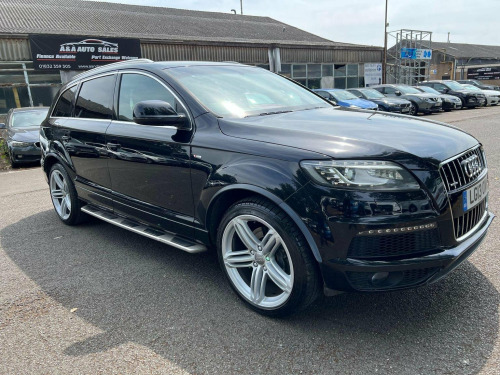 Here at A&A Auto Sales just arrived in stock we have a Audi Q7 3.0 TDI V6 S Line Plus Tiptronic Quattro7 seater. We are FCA regulated and offer competitive finance packages, do not hesitate to contact us if you would like to explore the option. All our vehicles come with 6 months comprehensive premium warranty which is extendable for up to 3 years. 4 previous owners, mileage at 98229 warranted miles. 12 months MOT upon purchase. The Audi q7 comes with full excellent service history with service book provided. The vehicle comes with 2 keys. The buyer will be supplied with the V5 registration document, service records, MOT certificate and a HPI clear certificate too. Call us on 01832359305, , These are in addition to what this Car typically comes with as standard:, BOSE Surround Sound System, Adaptive Cruise Control, Mobile Telephone Preparation - High with Bluetooth Handset in Front Centre Armrest, Tyre Pressure Loss Indicator, Door Mirrors - Heated-Electrically Adjustable-Folding-Auto-Dimming, 21in Alloy Wheels - 5-Segment-Spoke Design Titanium Finish, Heated Front and Outer Rear Seats, Parking System Advanced with Corner View Camera, When New This Car Came With:, 12V Power Socket - Centre Console, 12V Power Socket, 12V Power Socket - Rear x2, 12V Power Socket - Luggage Compartment, 3D and Topographical Mapping, 21in Alloy Wheels - 5-Segment-Spoke Design, 6.5in Colour Display Screen, ABS - Anti-Lock Braking System, 6.5in Display Screen, AMI - Audi Music Interface, Active Door Reflectors, Acoustic Parking System - Rear, Advanced 3D Building Display, Adaptive Air Suspension, Advanced Speech Recognition, Airbags - Driver, Air Vent Sleeves - Aluminium Look, Airbags - Front Passenger, Aluminium Roof Rails, Airbags - Front Side System, Ambient Lighting - Centre Console, Airbags - Sideguard Curtain, Anti Theft Locking Wheel Bolts, Alarm - Thatcham Category 1, Audi Parking System Advanced with Rear View Camera, Audi Parking System Advanced, Audi Parking System Rear with Acoustic Indicators, Audi Parking System Plus, Bumpers - Contrasting, Auto-Dimming Rear-View Mirror, Car J