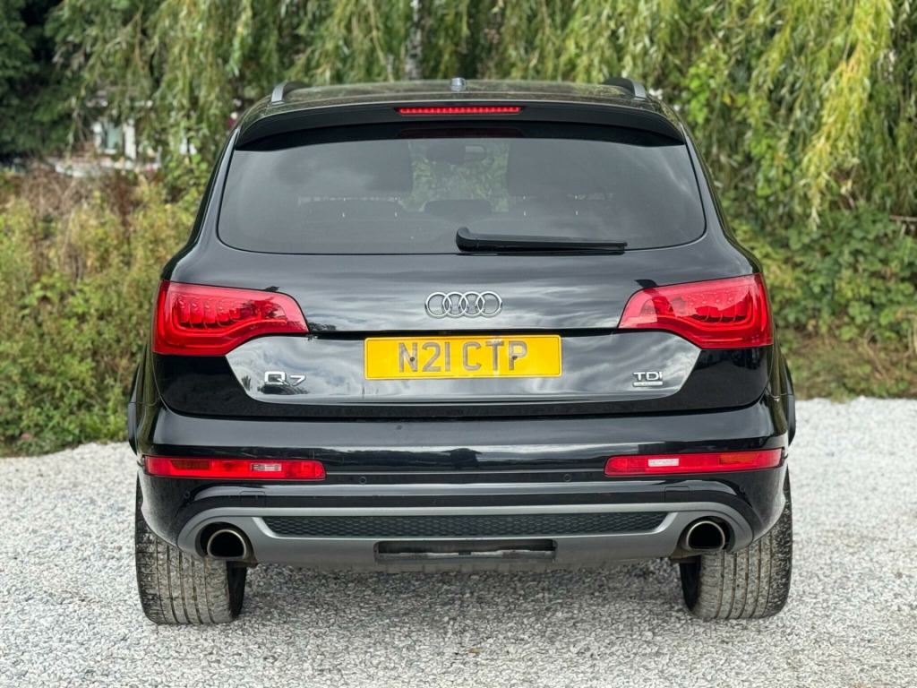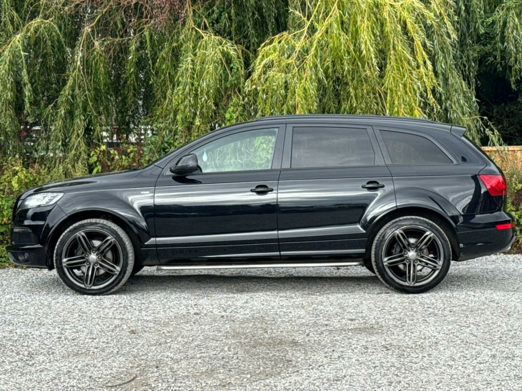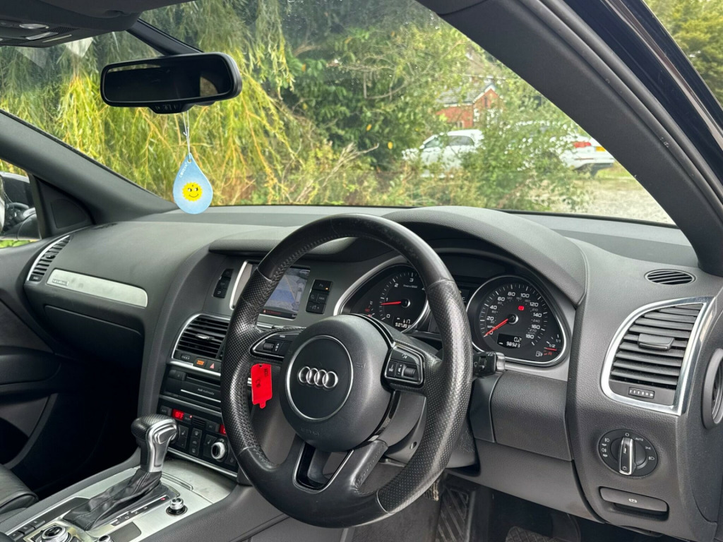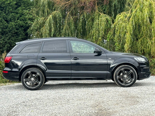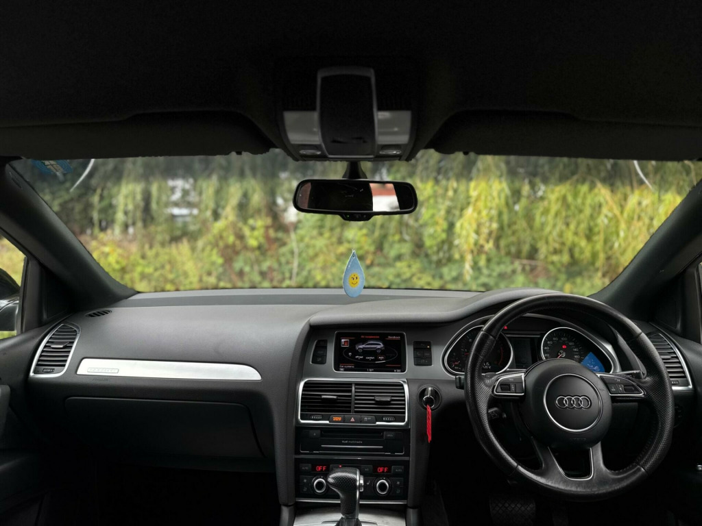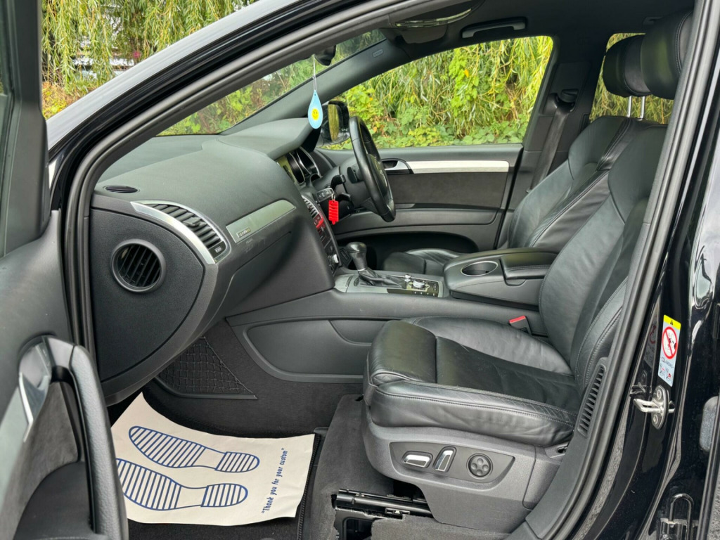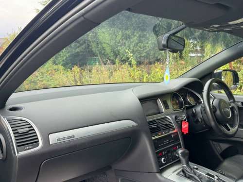 2 KEYSSERVICE HISTORY - 5 SERVICESEquipment:Navigation HDDParking Sensor(s)Climate ControlLeather Trim7 Seats21'' Alloy WheelsPrivacy GlassThis 2013 Audi Q7 TDI V6 S line Plus is presented in excellent condition, offering a premium driving experience. As a 7 seater, this Four Wheel Drive model boasts a powerful 3.0L Diesel engine, ensuring robust performance. The S line Plus trim level signifies a higher specification, and this particular vehicle comes equipped with Bi Xenon Plus headlights for superior visibility. Parking is made effortless thanks to the Audi Parking System Rear with Acoustic Indicators, front parking sensors, and the advanced parking system which includes a rear view camera. Inside, you can enjoy the comfort of Dual Zone Electronic Climate Control, ensuring a pleasant environment for all occupants.The Audi Q7 TDI V6 S line Plus offers several advantages that set it apart. Its impressive acceleration, reaching 0-62mph in just 7.8 seconds, demonstrates its dynamic capability. Furthermore, the generous boot space provides ample room for luggage or shopping, making it a practical choice for families. The vehicle also benefits from a low insurance group, which can contribute to lower running costs. With a substantial towing weight of 3200 kg, this Q7 is well suited for towing caravans or trailers. di exclusive piping, adaptive cruise control, cd changer, 21in alloy wheels - 7-double-spoke design, digital tv reception, tyre pressure loss indicator, 21in alloy wheels - 5-segment-spoke design titanium finish, black styling package, verano leather - sports seats - black, 12v power socket - centre console, 12v power socket - luggage compartment, 12v power socket - rear x2, 21in alloy wheels - 5-segment-spoke design, 3d and topographical mapping, 6.5in display screen, abs - anti-lock braking system, ami - audi music interface, aux-in socket, active door reflectors, adaptive air suspension, advanced 3d building display, advanced speech recognition, air vent sleeves - aluminium look, airbags - driver, airbags - front passenger, airbags - front side system, airbags - sideguard curtain, alarm - thatcham category 1, aluminium roof rails, ambient lighting - centre console, anti theft locking wheel bolts, audi parking system advanced with rear view camera, audi parking system rear with acoustic indicators, auto-dimming rear-view mirror, automatic wipers with rain sensor, bumpers - contrasting, cd/radio, cables x2 - mp3 connection including ipod, car jack, cloth headlining in black, collapsible spare wheel, colour drivers information system - dis, comfort front centre armrest, cruise control, cup holders - centre console, cup holders in rear armrest x2, cupholders in front centre armrest, cupholders x2 in third row, display screen colour 7in high resolution, door mirrors - heated-electrically adjustable-folding, door sill trims - s line, door lock switches on all 4 doors, double load floor, dual-zone electronic climate control, ebd - electronic brakeforce distribution, edl - electronic differential lock, esp - electronic stability programme, efficiency program in the drivers information system - dis, electric windows - front and rear, electrically adjustable 4-way lumbar support, fm-am radio, first aid kit, folding storage compartment in front centre armrest, front door exit lights, front fog lights, front passenger airbag deactivation switch, front and rear floor mats, front and rear footwell lighting, hard drive - 40gb, headlights - automatic adjustment, headlights - bi-xenon plus, headlights - coming-leaving home function, headlights - light sensor, headlights washers, heated front seats, isofix - front passenger - second and third row seats, illuminated air vents in b-pillar, illuminated ashtray in rear, illuminated vanity mirrors, inlays - matt brushed aluminium, led daytime running lights, led indicators, led rear lights, lighting package, luggage compartment - net, luggage compartment - side net, luggage compartment cover, mmi radio plus with dsp sound system, mp3 and wma compatible cd player, mobile telephone preparation - high with audi connect, parking brake - foot operated, parking sensors - front, pollen filter, power operated tailgate, power steering - servotronic speed-dependent, privacy glass, rear centre armrest, rear door exit lights, remote boot release, remote central locking, s line badge on wings, s line badging, s line body styling, sd card reader x2, sdhc card reader x2, satellite navigation system - hdd based, seats - backrests - storage net, seats - front electric adjustment, seats - front electric height adjustment, side impact protection, single cd-dvd player, split-folding rear seats, stainless steel running boards, steering column - rake and reach adjustment, steering wheel - 3-spoke leather-multi-function-shift paddles, steering wheel - gear shift paddles, steering wheel - multi-function, storage - glasses holder in roof module, tp memo - automatically saves traffic news, technology package - high, through-load facility, tool kit, trailer stabilisation system via the electronic stability programme, voice dialogue system, warning triangle, window surrounds - aluminium