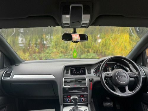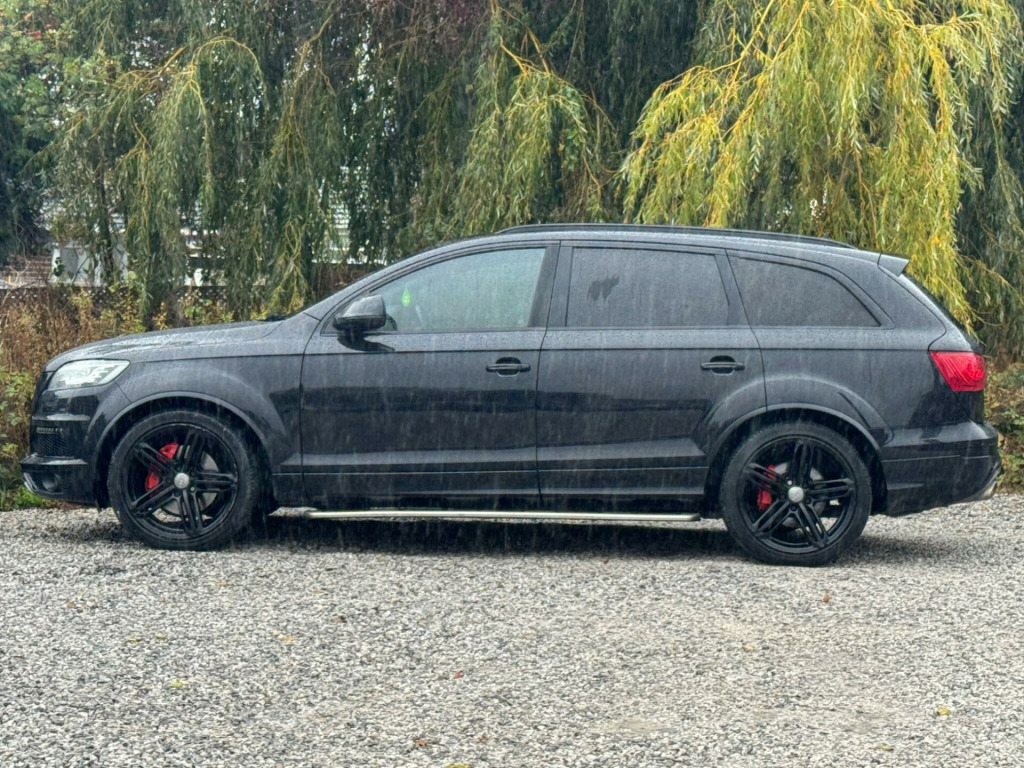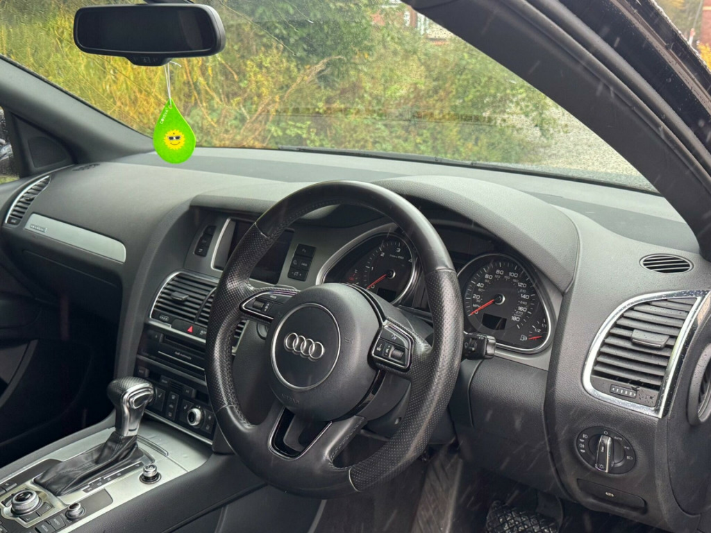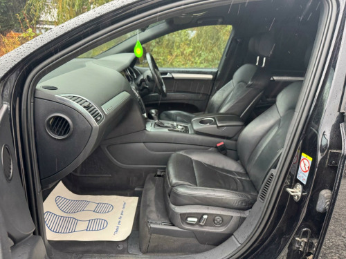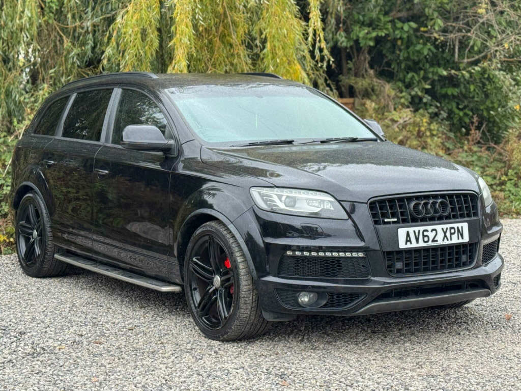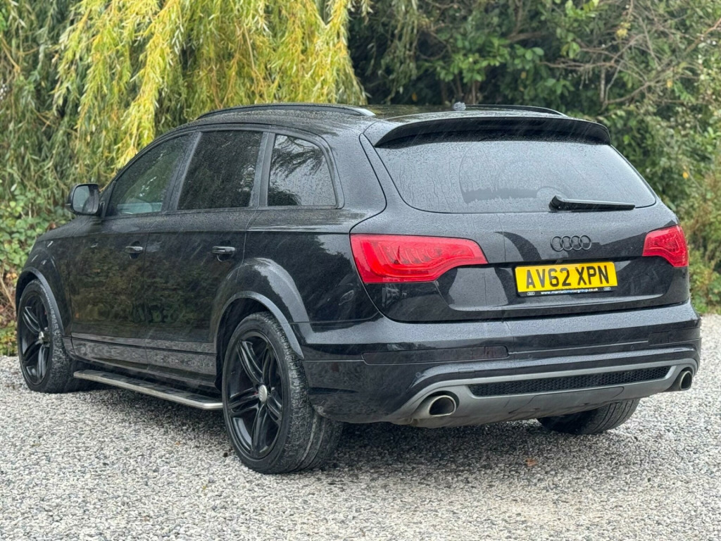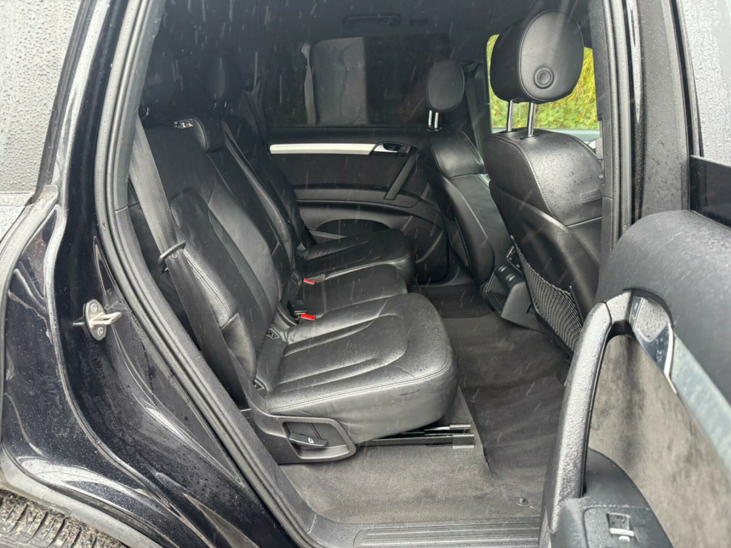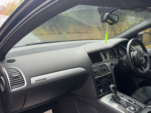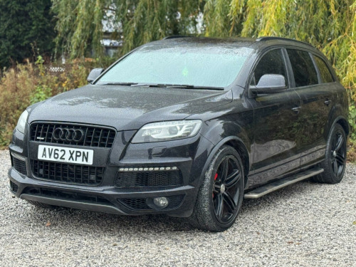 FULL SERVICE HISTORY - 4 SERVICES - 1 MAIN DEALER SERVICE - MOST RECENT SERVICE DONE 76,935Equipment:Navigation SystemNavigation HDDParking Sensor(s)Climate Control7 SeatsLeather Trim21'' Alloy WheelsPrivacy GlassThis 2012 Audi Q7 TDI V6 S line Plus presents an exceptional opportunity with its remarkably low mileage of just 79,400 miles for a vehicle of its age. Powered by a robust 3.0 litre diesel engine and featuring Audi's renowned Four Wheel Drive system, this seven seater offers both performance and practicality. The S line Plus trim enhances its appeal, and notable features include Dual Zone Electronic Climate Control for personalised comfort, Mobile Telephone Preparation with Audi Connect for seamless connectivity, and Heated Front Seats for those colder journeys. Illumination is provided by Bi-Xenon Plus headlights, and parking is made easier with the Acoustic Parking System at the rear.This Audi Q7 stands out from others in its class due to several key advantages. Its impressive acceleration, achieving 0-62mph in 9.1 seconds, demonstrates its capable performance. The generous boot space ensures ample room for luggage or shopping, making it ideal for families or those with active lifestyles. Furthermore, its placement in a low insurance group offers a cost effective ownership experience. With a substantial towing weight of 3200 kg, this Q7 is also well equipped for towing caravans or trailers. gital tv reception, mobile telephone preparation - high with bluetooth handset in front centre armrest, tv reception and dab radio reception - digital, tyre pressure loss indicator, 21in alloy wheels - 5-segment-spoke design titanium finish, 12v power socket, 12v power socket - luggage compartment, 21in alloy wheels - 5-segment-spoke design, abs - anti-lock braking system, ami - audi music interface, acoustic parking system - rear, adaptive air suspension, airbags - driver, airbags - front passenger, airbags - front side system, airbags - sideguard curtain, alarm - thatcham category 1, audi parking system advanced, audi parking system plus, auto-dimming rear-view mirror, automatic wipers with rain sensor, black roof rails, cd/radio, cloth headlining in black, colour drivers information system - dis, comfort front centre armrest, cruise control, cup holders - centre console, door mirrors - heated-electrically adjustable-folding, dual-zone electronic climate control, ebd - electronic brakeforce distribution, esp - electronic stability programme, electric windows - front and rear, electrically adjustable 4-way lumbar support, front fog lights, headlights - automatic adjustment, headlights - bi-xenon plus, headlights washers, heated front seats, isofix - front passenger second and third row seats with passenger airbag deactivation switch, inlays - matt brushed aluminium, lighting package, mmi radio plus with dsp sound system, mobile telephone preparation - high with audi connect, power operated tailgate, power steering - servotronic speed-dependent, privacy glass, remote central locking, satellite navigation system - hdd based, seats - front electric adjustment, stainless steel running boards, steering wheel - 3-spoke leather-multi-function-shift paddles, steering wheel - multi-function, technology package - high