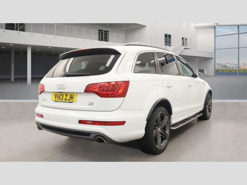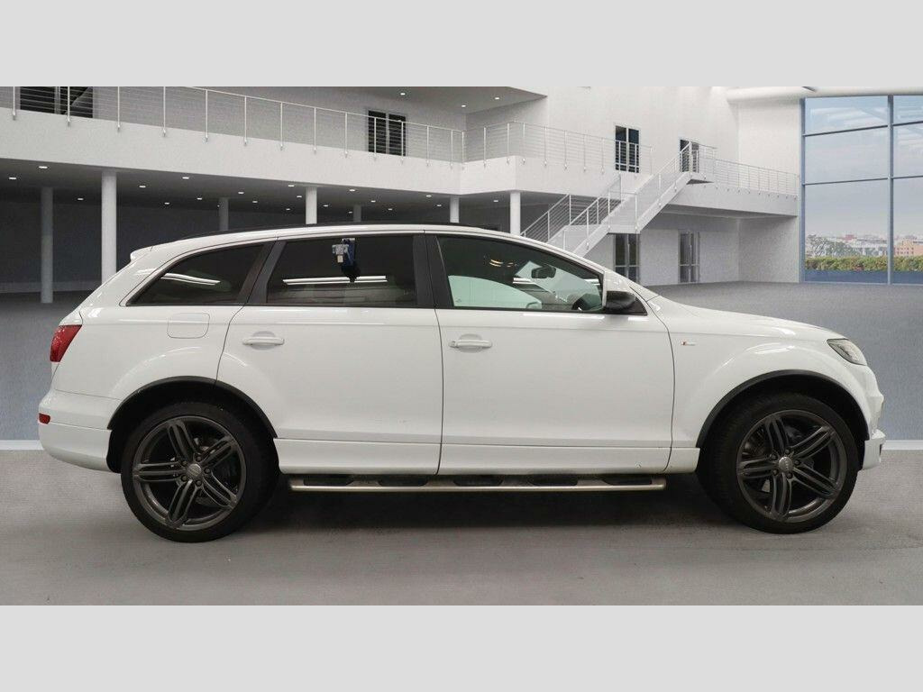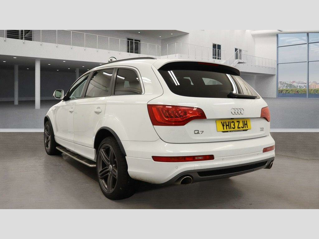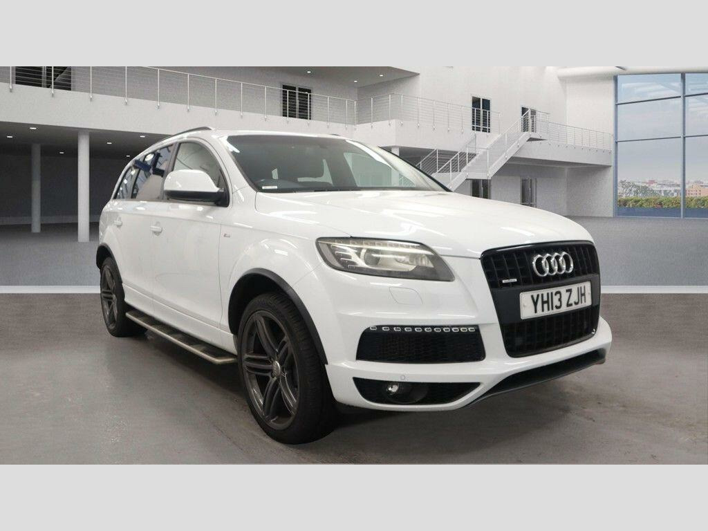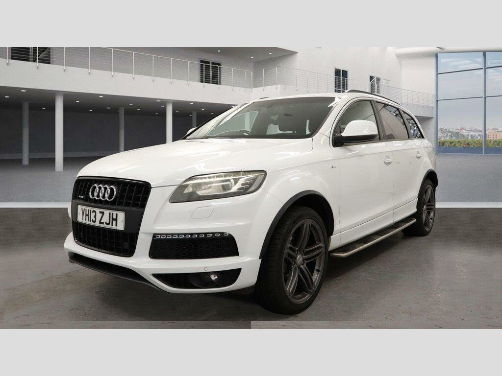 2 KEYSSERVICE HISTORY - 5 SERVICESEquipment:Navigation HDD - mappedParking Sensor(s)Climate ControlLeather Trim7 Seats21'' Alloy WheelsPrivacy GlassThis 2013 Audi Q7 TDI V6 S line Plus boasts exceptionally low mileage for its age, with only 91,116 miles recorded. This impressive seven seater SUV features a powerful 3.0 litre diesel engine paired with Audi's renowned four wheel drive system, ensuring confident performance in all conditions. The S line Plus trim level enhances its sporty appeal, and you can drive with peace of mind knowing its vehicle history check is clear. Inside, you'll find comfort and convenience with heated front seats and dual zone electronic climate control, while Bi Xenon Plus headlights provide excellent visibility.The Audi Q7 TDI V6 S line Plus offers a compelling package, highlighted by its remarkable acceleration of 0 to 62 miles per hour in just 7.8 seconds, demonstrating its dynamic capability. Its substantial towing weight of 3200 kg makes it ideal for those needing to tow, and the generous boot space provides ample room for luggage or shopping, setting it apart from many other vehicles in its class. Furthermore, its placement in a low insurance group offers an added benefit for cost conscious owners, making this Q7 a practical and desirable choice. di lane assist, cd changer, tv reception and dab radio reception - digital, tyre pressure loss indicator, headlights - high-beam assist, 21in alloy wheels - 5-segment-spoke design titanium finish, audi exclusive alcantara headlining - black, 12v power socket - centre console, 12v power socket - luggage compartment, 12v power socket - rear x2, 21in alloy wheels - 5-segment-spoke design, 6.5in display screen, abs - anti-lock braking system, ami - audi music interface, active door reflectors, adaptive air suspension, air vent sleeves - aluminium look, airbags - driver, airbags - front passenger, airbags - front side system, airbags - sideguard curtain, alarm - thatcham category 1, aluminium roof rails, ambient lighting - centre console, anti theft locking wheel bolts, audi parking system advanced with rear view camera, auto-dimming rear-view mirror, automatic wipers with rain sensor, bumpers - contrasting, cd/radio, car jack, cloth headlining in black, collapsible spare wheel, colour drivers information system - dis, comfort front centre armrest, cruise control, cup holders - centre console, cup holders in rear armrest x2, cupholders in front centre armrest, cupholders x2 in third row, display screen colour 7in high resolution, door mirrors - heated-electrically adjustable-folding, door mirrors - puddle lights, door sill trims - s line, door lock switches on all 4 doors, double load floor, dual-zone electronic climate control, ebd - electronic brakeforce distribution, edl - electronic differential lock, esp - electronic stability programme, electric windows - front and rear, electrically adjustable 4-way lumbar support, first aid kit, folding storage compartment in front centre armrest, front door exit lights, front fog lights, front passenger airbag deactivation switch, front and rear floor mats, front and rear footwell lighting, hard drive - 40gb, headlights - automatic adjustment, headlights - bi-xenon plus, headlights washers, heated front seats, isofix - front passenger - second and third row seats, isofix - front passenger second and third row seats with passenger airbag deactivation switch, illuminated air vents in b-pillar, illuminated ashtray in rear, illuminated vanity mirrors, inlays - matt brushed aluminium, led daytime running lights, led indicators, led rear lights, light and rain sensor package, lighting package, luggage compartment - net, luggage compartment - side net, luggage compartment cover, mmi radio plus with dsp sound system, mp3 and wma compatible cd player, mobile telephone preparation - high with audi connect, parking brake - foot operated, parking sensors - front, power operated tailgate, power steering - servotronic speed-dependent, privacy glass, rear centre armrest, rear door exit lights, rear parking sensors, s line badge on wings, s line body styling, sd card reader x2, sdhc card reader x2, satellite navigation system - hdd based, seats - backrests - storage net, seats - front electric adjustment, service key, side impact protection, split-folding rear seats, stainless steel running boards, steering wheel - 3-spoke leather-multi-function-shift paddles, steering wheel - gear shift paddles, steering wheel - multi-function, storage - glasses holder in roof module, tp memo - automatically saves traffic news, technology package - high, through-load facility, tool kit, trailer stabilisation system via the electronic stability programme, voice dialogue system, warning triangle, window surrounds - aluminium