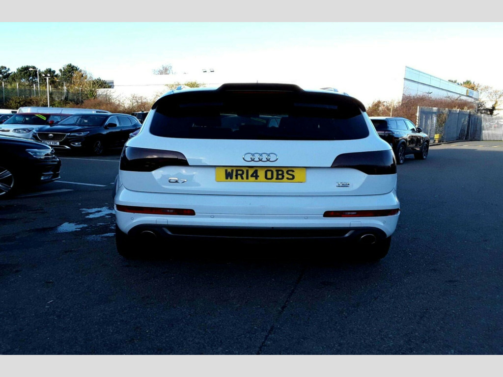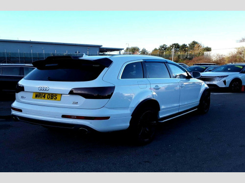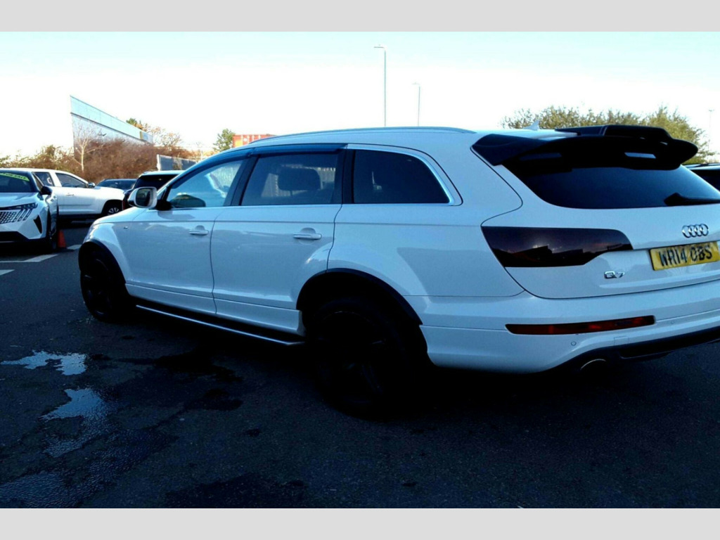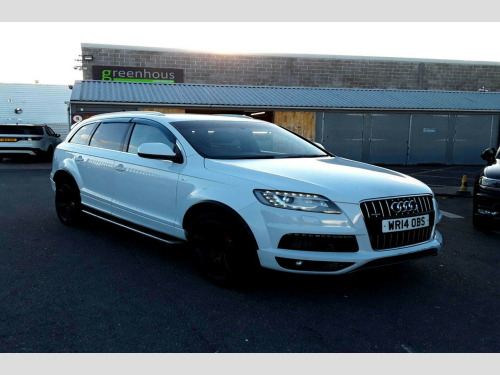 A&A MOTORS LIMITED delighted to offer this stunning 2014 Audi Q7 TDI V6 S line Plus , with its last service completed on 4th December 2025 at 107,813 miles, ensuring excellent provenance. This seven seat, four wheel drive SUV is powered by a 3.0 litre diesel engine and features the desirable S line Plus trim. Notable features include Audi Parking System Rear with Acoustic Indicators, Mobile Telephone Preparation with Audi Connect for seamless Bluetooth connectivity, and heated front seats for added comfort. The vehicle also benefits from front and rear parking sensors, and automatic headlights activated by a light sensor.The Audi Q7 TDI V6 S line Plus offers a compelling blend of performance and practicality, indicated by its swift 0-62mph acceleration in just 7.8 seconds. This performance, combined with its substantial 3200 kg towing weight, positions it favourably against similar vehicles. Furthermore, its inclusion in a low insurance group makes it an economical choice. A 12 month MOT will be provided on purchase, and the vehicle comes with a 3 month AA warranty for your peace of mind.2 KEYS. 12V Power Socket - Centre Console, 12V Power Socket - Rear x2, 21in Alloy Wheels - 5-Segment-Spoke Design, 3D and Topographical Mapping, 6.5in Colour Display Screen, ABS - Anti-Lock Braking System, AMI - Audi Music Interface, Active Door Reflectors, Adaptive Air Suspension, Advanced 3D Building Display, Advanced Speech Recognition, Air Vent Sleeves - Aluminium Look, Airbags - Driver, Airbags - Front Passenger, Airbags - Front Side System, Airbags - Sideguard Curtain, Alarm - Thatcham Category 1, Aluminium Roof Rails, Ambient Lighting - Centre Console, Anti Theft Locking Wheel Bolts, Audi Parking System Advanced, Audi Parking System Rear with Acoustic Indicators, Auto-Dimming Rear-View Mirror, Automatic Wipers with Rain Sensor, Bumpers - Contrasting, CD/Radio, Car Jack, Cloth Headlining in Black, Collapsible Spare Wheel, Colour Drivers Information System - DIS, Comfort Front Centre Armrest, Cruise Control, Cup Holders - Centre Console, Cup Holders in Rear Armrest x2, Cupholders in Front Centre Armrest, Cupholders x2 in Third Row, DAB Digital Radio, Display Screen Colour 7in High Resolution, Door Mirrors - Heated-Electrically Adjustable-Folding, Door Sill Trims - S Line, Door lock switches on all 4 doors, Double Glazing, Double Load Floor, Dual-Zone Electronic Climate Control, EBD - Electronic Brakeforce Distribution, EDL - Electronic Differential Lock, ESP - Electronic Stability Programme, Efficiency Program in the Drivers Information System - DIS, Electric Windows - Front and Rear, Electrically Adjustable 4-Way Lumbar Support, FM-AM Radio, First Aid Kit, Folding Storage Compartment in Front Centre Armrest, Front Door Exit Lights, Front Fog Lights, Front Passenger Airbag Deactivation Switch, Front and Rear Floor Mats, Front and Rear Footwell Lighting, Hard Drive - 40GB, Headlights - Automatic Adjustment, Headlights - Bi-Xenon Plus, Headlights - Coming-Leaving Home Function, Headlights - Light Sensor, Headlights Washers, Heated Front Seats, ISOFIX - front passenger - second and third row seats, Illuminated Air Vents in B-pillar, Illuminated Ashtray in Rear, Illuminated Vanity Mirrors, Inlays - Matt Brushed Aluminium, LED Daytime Running Lights, LED Indicators, LED Rear Lights, Lighting Package, Luggage Compartment - Net, Luggage Compartment - Side Net, Luggage Compartment Cover, MMI Radio Plus with DSP Sound System, MP3 and WMA Compatible CD Player, Mobile Telephone Preparation - High with Audi Connect, Parking Brake - Foot Operated, Parking Sensors - Front, Pollen Filter, Power Operated Tailgate, Power Steering - Servotronic Speed-Dependent, Privacy Glass - Double Glazing, Rear Centre Armrest, Rear Door Exit Lights, Remote Boot Release, Remote Central Locking, S Line Badge on Wings, S Line Badging, S Line Body Styling, SD Card Reader x2, SDHC Card Reader x2, Satellite Navigation System - HDD Based, Seats - Backrests - Storage Net, Seats - Front Electric Adjustment, Seats - Front Electric Height Adjustment, Side Impact Protection, Single CD-DVD Player, Split-Folding Rear Seats, Stainless Steel Running Boards, Steering Column - Rake and Reach Adjustment, Steering Wheel - 3-Spoke Leather-Multi-Function-Shift Paddles, Steering Wheel - Multi-function, Storage - Glasses Holder in Roof Module, TP Memo - Automatically Saves Traffic News, Technology Package, Through-Load Facility, Tool Kit, Warning Triangle, Window Surrounds - Aluminium.