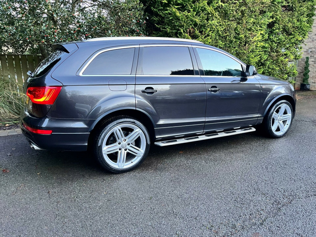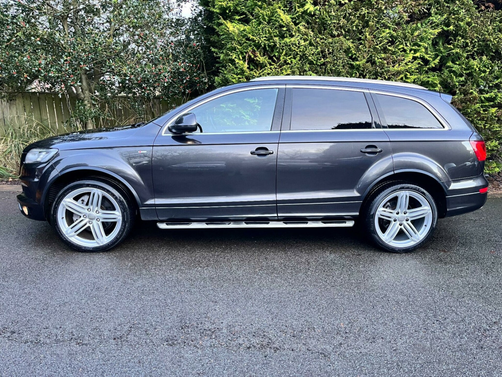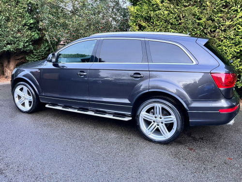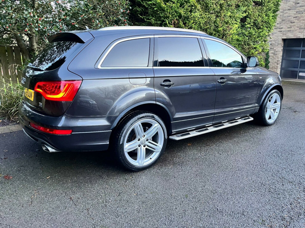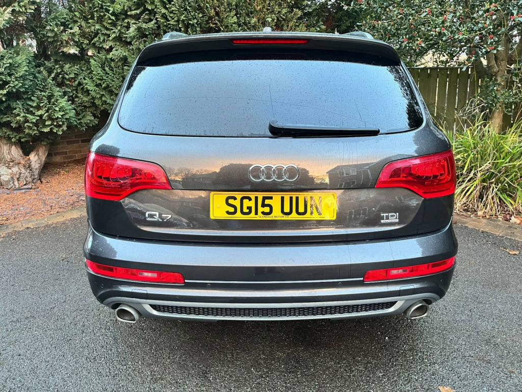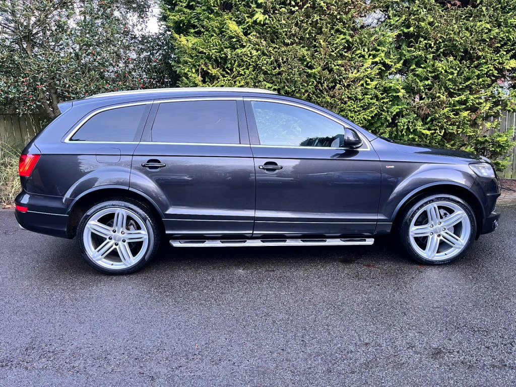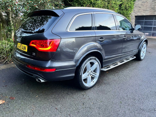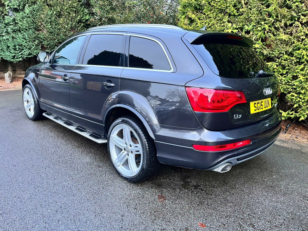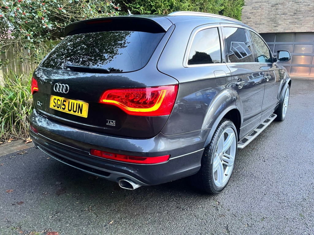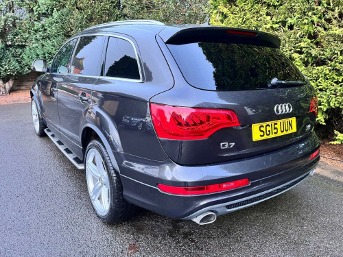 This 2015 Audi Q7 TDI V6 S line Plus offers a compelling blend of performance and practicality. As a four wheel drive model, it is equipped with a powerful 3.0 litre diesel engine, ensuring robust capability. This spacious seven seater provides ample room for families and features desirable additions such as Bi-Xenon Plus headlights with automatic activation, a light sensor for effortless illumination,front and rear parking sensors with acoustic indicators to aid manoeuvring. reverse camera, heated seats, satellite navigation, cruise control, electric seats, Comfort is further enhanced by dual zone electronic climate control and heated front seats, making every journey a pleasant experience.The Audi Q7 TDI V6 S line Plus demonstrates its superior performance with an impressive 0-62mph acceleration time of just 7.8 seconds, indicating a more dynamic driving experience compared to many other vehicles in its class. Furthermore, its classification within a low insurance group presents an attractive proposition for cost conscious buyers. With a substantial towing weight of 3200 kg, this Q7 is also exceptionally well suited for those who require significant towing capacity.. 12V Power Socket - Centre Console, 12V Power Socket - Rear x2, 21in Alloy Wheels - 5-Segment-Spoke Design, 3D and Topographical Mapping, 6.5in Colour Display Screen, ABS - Anti-Lock Braking System, AMI - Audi Music Interface, Active Door Reflectors, Adaptive Air Suspension, Advanced 3D Building Display, Advanced Speech Recognition, Air Vent Sleeves - Aluminium Look, Airbags - Driver, Airbags - Front Passenger, Airbags - Front Side System, Airbags - Sideguard Curtain, Alarm - Thatcham Category 1, Aluminium Roof Rails, Ambient Lighting - Centre Console, Anti Theft Locking Wheel Bolts, Audi Parking System Advanced, Audi Parking System Rear with Acoustic Indicators, Auto-Dimming Rear-View Mirror, Automatic Wipers with Rain Sensor, Bumpers - Contrasting, CD/Radio, Car Jack, Cloth Headlining in Black, Collapsible Spare Wheel, Colour Drivers Information System - DIS, Comfort Front Centre Armrest, Cruise Control, Cup Holders - Centre Console, Cup Holders in Rear Armrest x2, Cupholders in Front Centre Armrest, Cupholders x2 in Third Row, DAB Digital Radio, Display Screen Colour 7in High Resolution, Door Mirrors - Heated-Electrically Adjustable-Folding, Door Sill Trims - S Line, Door lock switches on all 4 doors, Double Glazing, Double Load Floor, Dual-Zone Electronic Climate Control, EBD - Electronic Brakeforce Distribution, EDL - Electronic Differential Lock, ESP - Electronic Stability Programme, Efficiency Program in the Drivers Information System - DIS, Electric Windows - Front and Rear, Electrically Adjustable 4-Way Lumbar Support, FM-AM Radio, First Aid Kit, Folding Storage Compartment in Front Centre Armrest, Front Door Exit Lights, Front Fog Lights, Front Passenger Airbag Deactivation Switch, Front and Rear Floor Mats, Front and Rear Footwell Lighting, Hard Drive - 40GB, Headlights - Automatic Adjustment, Headlights - Bi-Xenon Plus, Headlights - Coming-Leaving Home Function, Headlights - Light Sensor, Headlights Washers, Heated Front Seats, ISOFIX - front passenger - second and third row seats, Illuminated Air Vents in B-pillar, Illuminated Ashtray in Rear, Illuminated Vanity Mirrors, Inlays - Matt Brushed Aluminium, LED Daytime Running Lights, LED Indicators, LED Rear Lights, Lighting Package, Luggage Compartment - Net, Luggage Compartment - Side Net, Luggage Compartment Cover, MMI Radio Plus with DSP Sound System, MP3 and WMA Compatible CD Player, Mobile Telephone Preparation - High with Audi Connect, Parking Brake - Foot Operated, Parking Sensors - Front, Pollen Filter, Power Operated Tailgate, Power Steering - Servotronic Speed-Dependent, Privacy Glass - Double Glazing, Rear Centre Armrest, Rear Door Exit Lights, Remote Boot Release, Remote Central Locking, S Line Badge on Wings, S Line Badging, S Line Body Styling, SD Card Reader x2, SDHC Card Reader x2, Satellite Navigation System - HDD Based, Seats - Backrests - Storage Net, Seats - Front Electric Adjustment, Seats - Front Electric Height Adjustment, Side Impact Protection, Single CD-DVD Player, Split-Folding Rear Seats, Stainless Steel Running Boards, Steering Column - Rake and Reach Adjustment, Steering Wheel - 3-Spoke Leather-Multi-Function-Shift Paddles, Steering Wheel - Multi-function, Storage - Glasses Holder in Roof Module, TP Memo - Automatically Saves Traffic News, Technology Package, Through-Load Facility, Tool Kit, Warning Triangle, Window Surrounds - Aluminium.