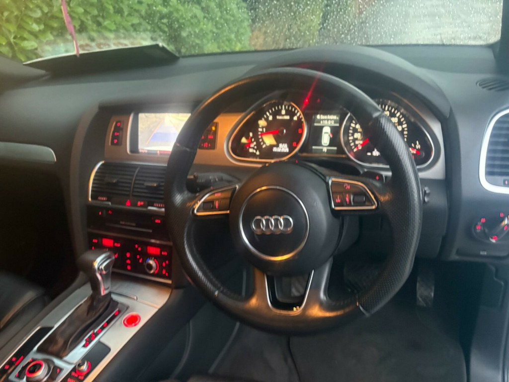 This 2012 Audi Q7 TDI V6 S line Plus offers a compelling blend of performance and practicality, boasting a powerful 3.0 litre diesel engine and a smooth four wheel drive system. As a seven seater, it provides ample space for families or groups, and its impressive 3200 kg towing weight makes it a capable companion for larger loads. Inside, you'll find comfort and convenience with Dual Zone Electronic Climate Control and Heated Front Seats, while the Acoustic Parking System rear and Mobile Telephone Preparation with Audi Connect ensure ease of use and connectivity. The Bi Xenon Plus headlights provide excellent visibility.This Q7 stands out with its impressive acceleration, reaching 0 to 62 miles per hour in just 7.8 seconds, demonstrating its dynamic performance. Furthermore, its large boot space offers exceptional versatility for luggage or shopping. The vehicle also benefits from a low insurance group, making it a more economical choice to own and run compared to many other vehicles in its class.Px welcome Free delivery within 40 miles v power socket, 12v power socket - luggage compartment, 21in alloy wheels - 5-segment-spoke design, abs - anti-lock braking system, ami - audi music interface, acoustic parking system - rear, adaptive air suspension, airbags - driver, airbags - front passenger, airbags - front side system, airbags - sideguard curtain, alarm - thatcham category 1, audi parking system advanced, audi parking system plus, auto-dimming rear-view mirror, automatic wipers with rain sensor, black roof rails, cd/radio, cloth headlining in black, colour drivers information system - dis, comfort front centre armrest, cruise control, cup holders - centre console, door mirrors - heated-electrically adjustable-folding, dual-zone electronic climate control, ebd - electronic brakeforce distribution, esp - electronic stability programme, electric windows - front and rear, electrically adjustable 4-way lumbar support, front fog lights, headlights - automatic adjustment, headlights - bi-xenon plus, headlights washers, heated front seats, isofix - front passenger second and third row seats with passenger airbag deactivation switch, inlays - matt brushed aluminium, lighting package, mmi radio plus with dsp sound system, mobile telephone preparation - high with audi connect, power operated tailgate, power steering - servotronic speed-dependent, privacy glass, remote central locking, satellite navigation system - hdd based, seats - front electric adjustment, stainless steel running boards, steering wheel - 3-spoke leather-multi-function-shift paddles, steering wheel - multi-function, technology package - high, adaptive cruise control, bose surround sound system, cd changer, dab digital radio, tyre pressure loss indicator, headlights - high-beam assist, rear side airbags, parking system advanced with corner view camera, privacy glass - double glazing, black styling package, audi exclusive carpets, black alcantara headlining, comfort package, verano leather - sports seats - black, seats - comfort - second row x2, load package