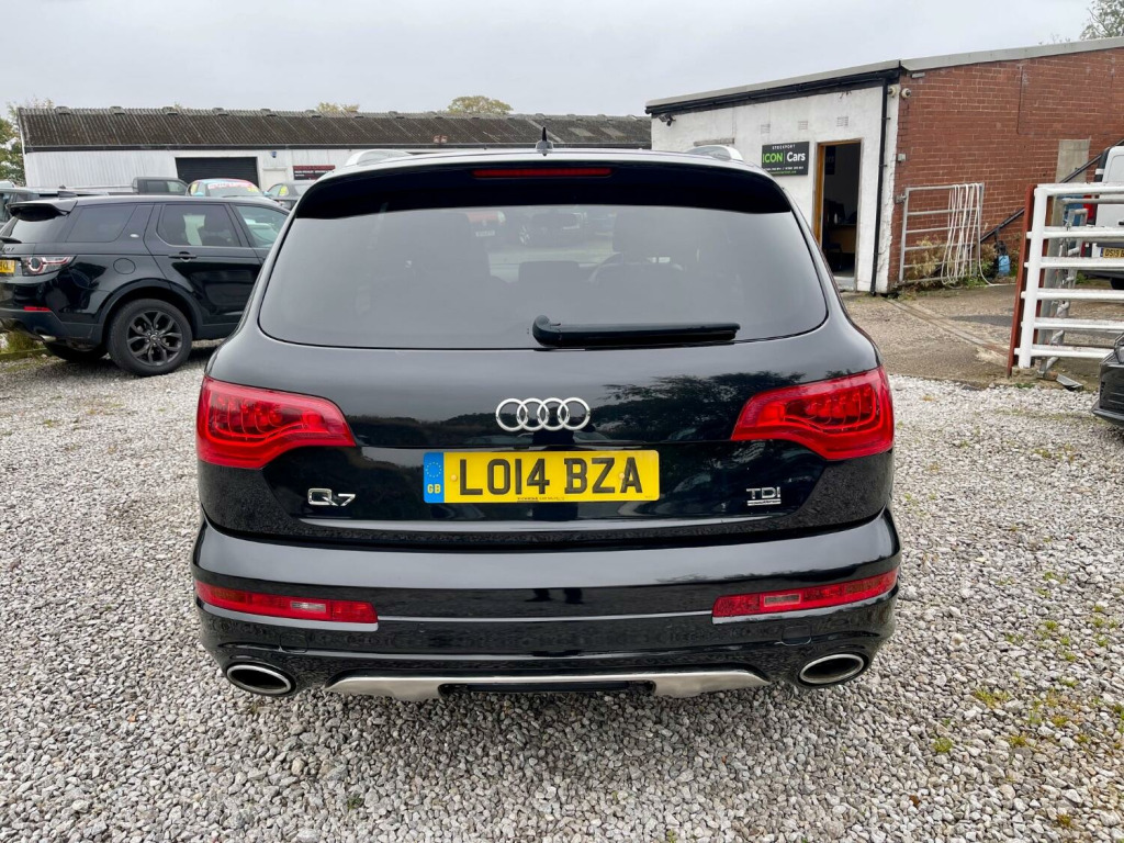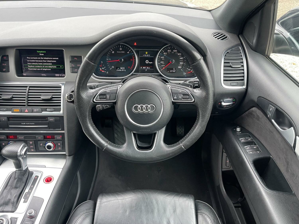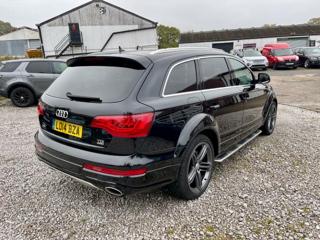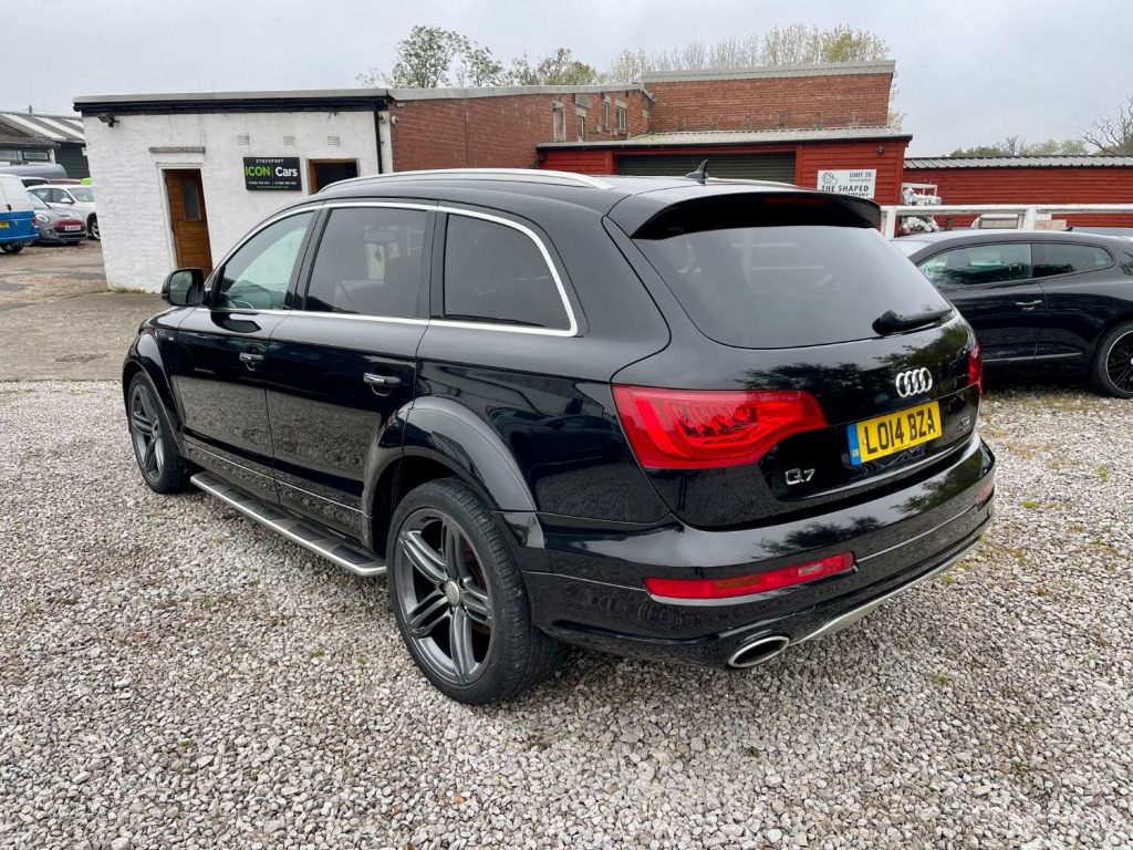 Icon cars is proud to present this AUDI Q7 3.0 TDI V6 S line Sport Edition Black Auto Diesel 2014 it drives very well and was kept in brilliant condition, all of the levels have been checked. The car has been cleaned and the interior shampooed. 137,000 Miles , 3.0 litre , Diesel , 7 seats , Hill decent , 1 month warranty included , 6 month warranty 199 , 12 months warranty 498 , 24 months warranty 899, Drive away insurance available , 3 former keeper , Isofix , Automatic LED lights , Stop start , Privacy glass , Heated electric Leather seats , April 2026 MOT , New front disks and pads September 2025 , Satellite navigation , Cruise control , Parking sensors / assist camera , Heated rear window screen , Sports mode / eco / comfort , Sun roof x2, Leather steering wheel + controls , Air conditioning / climate control , Traction control , Electric windows , Reconditioned Alloys , Cd radio / aux / DAB / Bluetooth , Phone connectivity , Large boot , More photos available below , Finance available , Part exchange welcome , Nationwide delivery available , phone: 07944752974