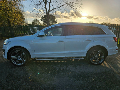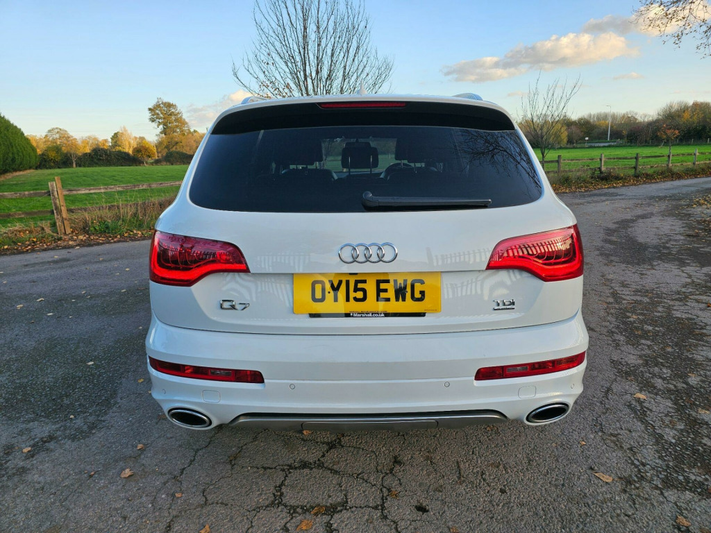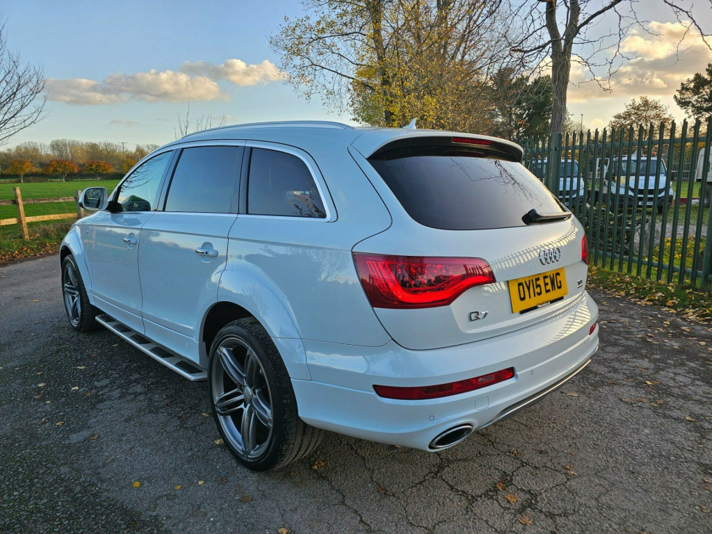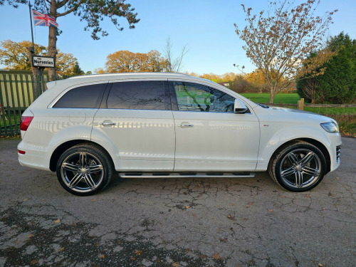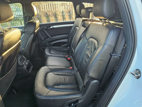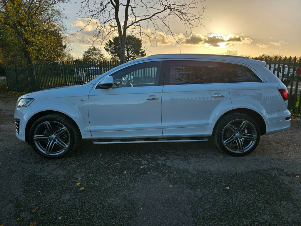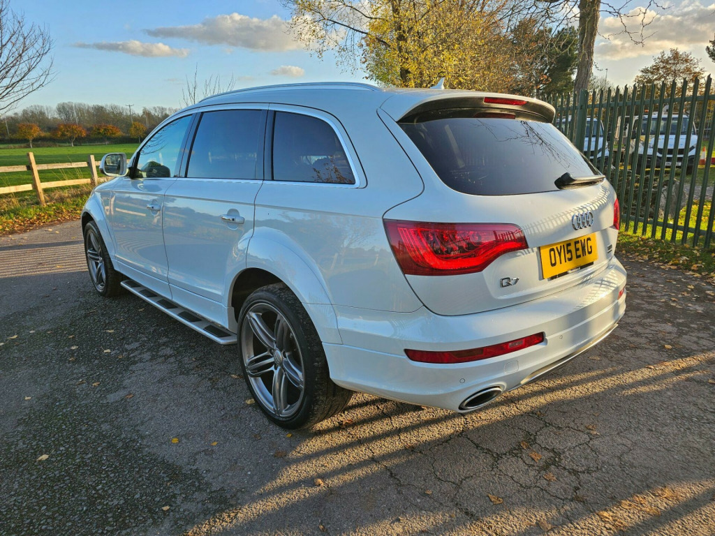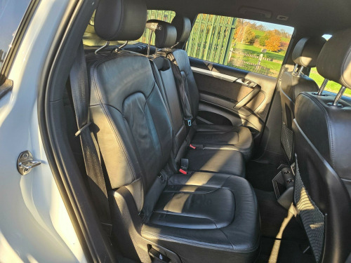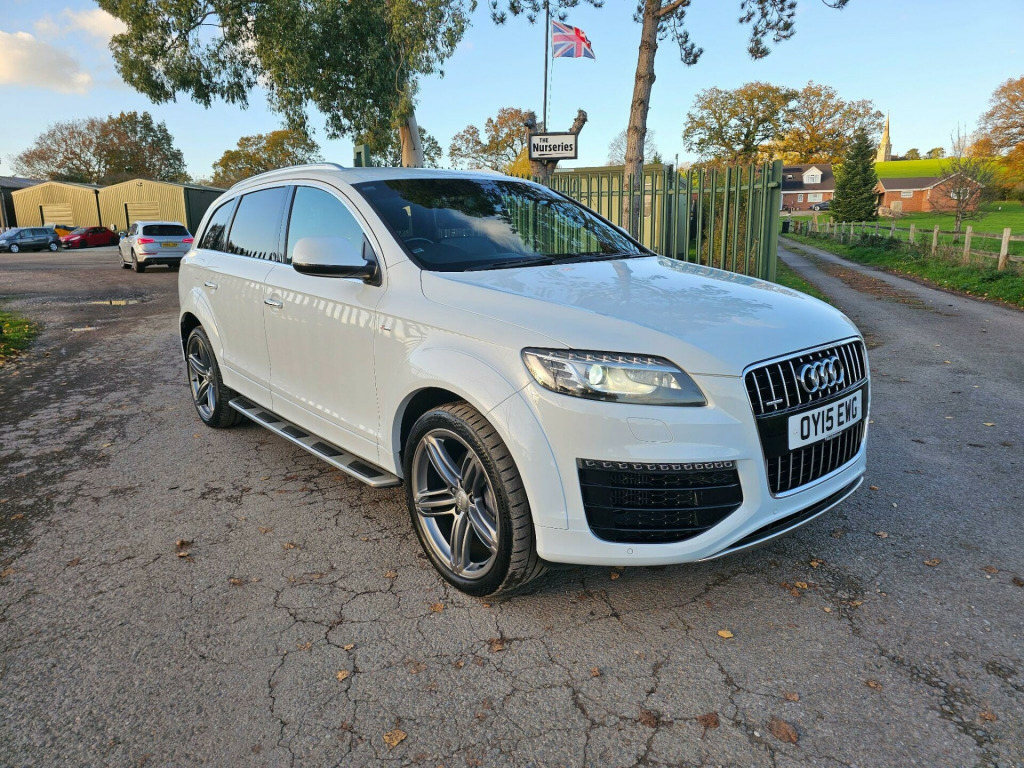 This Audi Q7 TDI V6 S line Sport Edition from 2015 boasts a full service history, offering peace of mind alongside its impressive capabilities. This four wheel drive model features a powerful 3.0 litre diesel engine and comfortably seats seven occupants. It comes equipped with the desirable Audi Exclusive Leather Package 3 in Fine Nappa Leather with Black Sport Seats, Audi Exclusive Carpets, and a Comfort Package. For your entertainment, enjoy the BOSE Surround Sound System, and stay comfortable with Deluxe Automatic Air Conditioning at the rear.NAV REVERSE CAMARA, DAB, CRUISE CONTROL, MEMORY SEATS , HEATED SEATS, 2 KEYS, FSH, BOSE , AIR SUSPENSION ++++The Q7 TDI V6 S line Sport Edition offers a compelling blend of performance and practicality. Its acceleration from 0 to 62mph in just 7.8 seconds demonstrates its dynamic capability, a notable advantage over many similar vehicles. Furthermore, its low insurance group rating indicates that running costs are kept manageable. This vehicle is also ready for your adventures, with a towing weight of 3200 kg and a 12 month MOT provided on purchase, all supported by a 3 month warranty. se surround sound system, air conditioning - deluxe automatic at the rear, audi exclusive carpets, comfort package, audi exclusive leather package 3 - fine nappa leather with sport seats - black, 12v power socket - centre console, 12v power socket - luggage compartment, 20gb jukebox for storing and managing music files - wma and mp3 format, 21in alloy wheels - 5-segment-spoke design titanium finish, 3d and topographical mapping, 7-digit postcode recognition, abs - anti-lock braking system, ami - audi music interface, acoustically and visually indicating distances to obstacles with guiding lines, adaptive air suspension, air vent sleeves - aluminium look, airbags - driver, airbags - front passenger, airbags - front side system, airbags - sideguard curtain, airbags - sideguard curtain rear, alarm - thatcham category 1, aluminium roof rails, ambient lighting - centre console, anti theft locking wheel bolts, audi connect, audi parking system advanced with reversing camera, audi parking system rear with acoustic indicators, auto-dimming rear-view mirror, automatic wipers with rain sensor, bumpers - contrasting, cables x2 - mp3 connection including ipod, car jack, charging function for various mobile devices, cloth headlining in black, collapsible spare wheel, colour drivers information system - dis, comfort front centre armrest, cruise control, cup holders - centre console, cup holders in rear armrest x2, cupholders, cupholders in front centre armrest, cupholders x2 in third row, dab digital radio, dsp sound system, display screen colour - 7in tft high resolution and split screen mode for route information, door lower protection strips, door mirrors - heated-electrically adjustable-folding, door panel - alcantara, door sill trims - s line, double glazing, double load floor, dual-zone electronic climate control, dynamic route guidance - tmc, ebd - electronic brakeforce distribution, edl - electronic differential lock, esp - electronic stability programme, efficiency program in the drivers information system - dis, electric windows - front and rear, electrically adjustable 4-way lumbar support, european navigation data, exhaust tailpipe - dual oval shaped, extended door trims, fm-am radio, first aid kit, front lower bumper spoilers, front passenger airbag deactivation switch, front and rear floor mats, front and rear footwell lighting, hard drive - 40gb, headlights - automatic adjustment, headlights - bi-xenon plus, headlights - light sensor, headlights washers, heated front seats, isofix child seat mounting for front passenger, isofix child seat mounting for rear seats, isofix child seat preparation for rear seats with top tether, illuminated air vents in b-pillar, illuminated ashtray in rear, illuminated vanity mirrors, inlays - matt brushed aluminium, led daytime running lights, led indicators, led rear lights, large side air intakes with high-gloss black painted horizontal side bars, lighting package, lights in footwell - led, luggage compartment - side net, luggage compartment - storage net, luggage compartment cover, mmi radio high, mobile telephone preparation - high with audi connect, parking brake - foot operated, parking sensors - front, pollen filter, power operated tailgate, power steering - servotronic speed-dependent, privacy glass, rear centre armrest, rear door exit lights, remote central locking, reversing camera, s line badges on front wings, s line badging, s line body styling, sd card reader x2, sdhc card reader x2, satellite navigation system - hdd based, seats - backrests - storage net, seats - electrically adjustable, seats - front electric adjustment, seats - front electric height adjustment, seats - split folding for second row, seats - split folding for third row, side impact protection, single cd-dvd player, stainless steel running boards, stainless steel underbody protection, steering column - rake and reach adjustment, steering wheel - 3-spoke, steering wheel - 3-spoke leather-multi-function-shift paddles, steering wheel - gear-shift paddles, steering wheel - multi-function, styling package - contrast colour exterior, tp memo - automatically saves traffic news, tailgate - lid closing assistance unit, tailgate - programmable angle for the luggage compartment lid, technology package, through-load facility, tool kit, trip computer, tyre pressure monitoring system, voice dialogue system, warning triangle, wheel arch extensions, window surrounds - aluminium