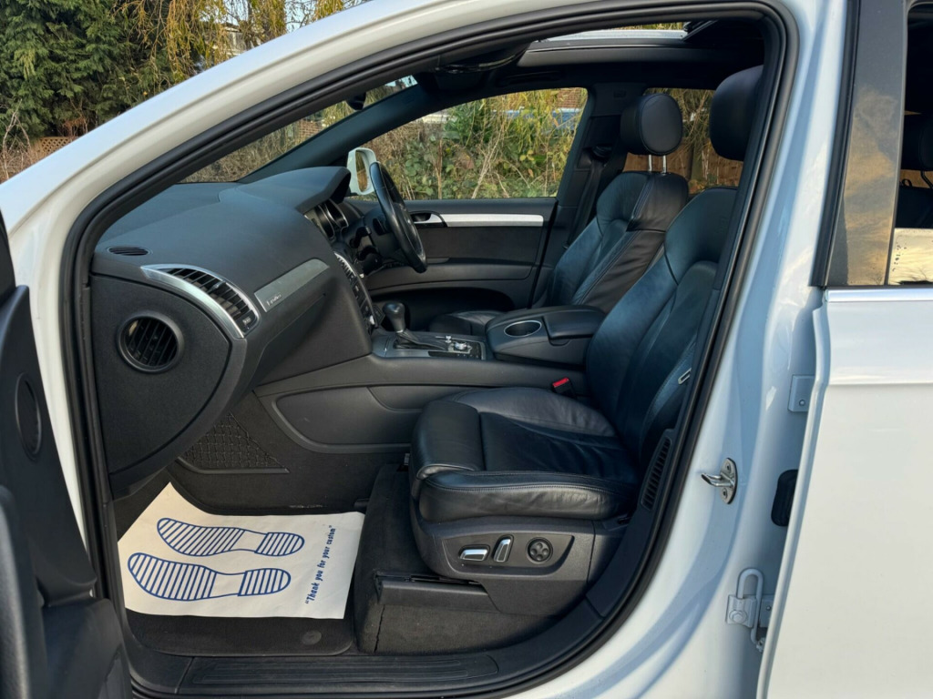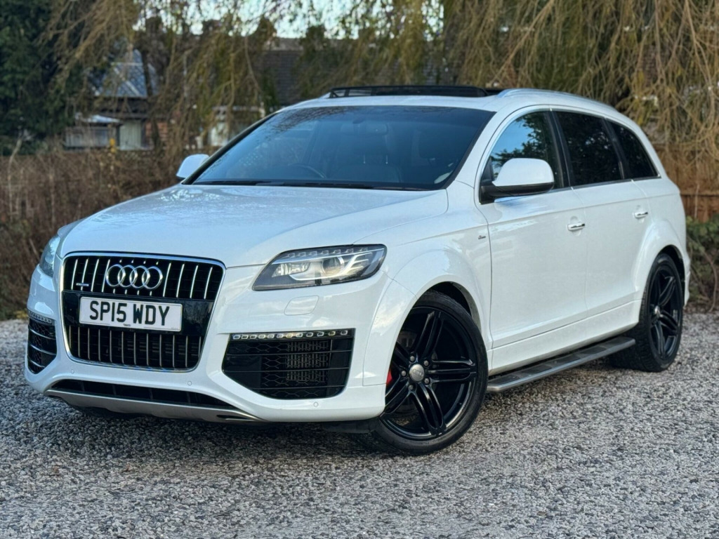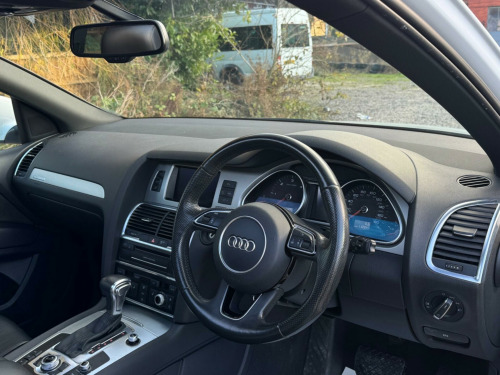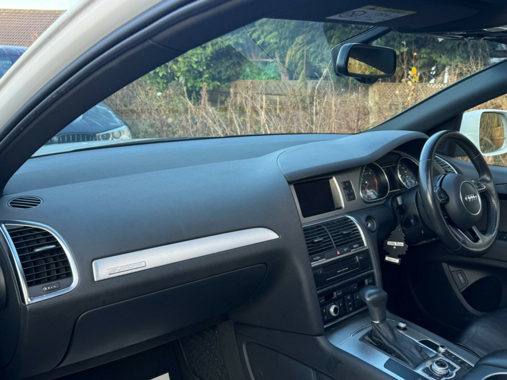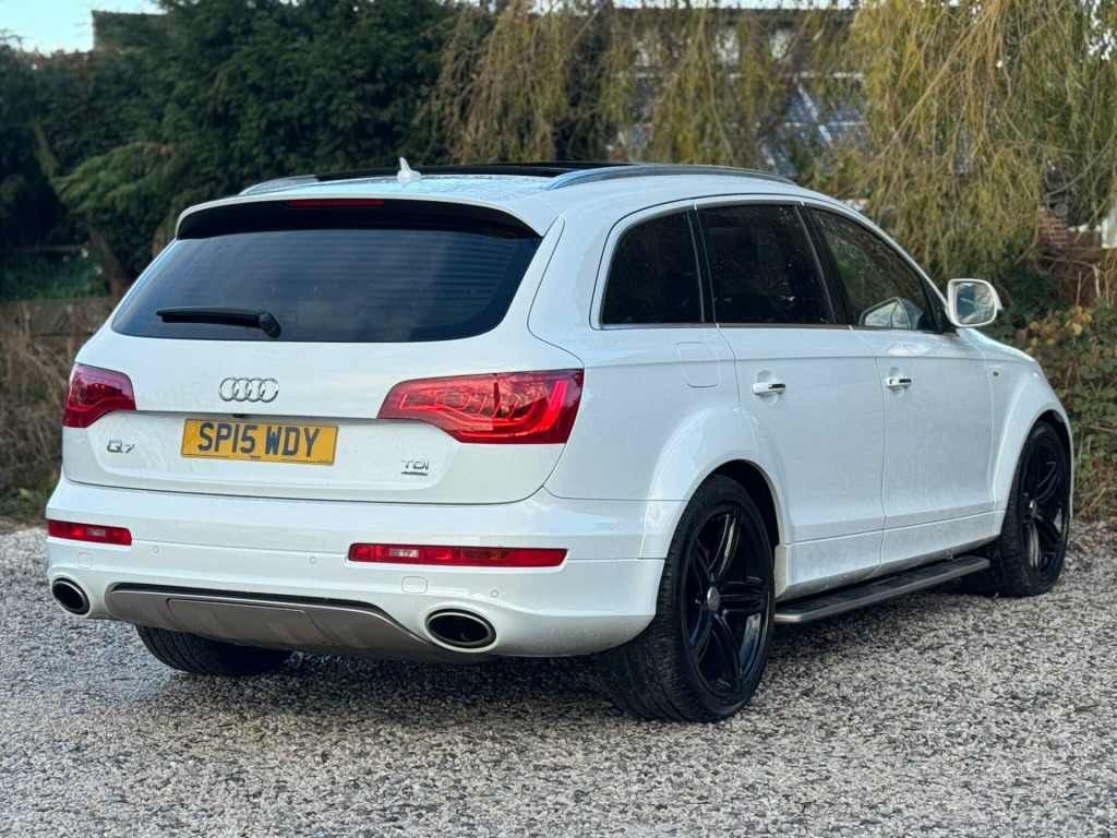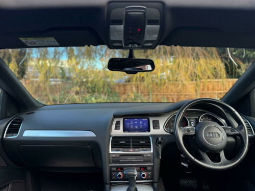 2 KEYSSERVICE HISTORY - MAIN DEALER SERVICESLOGBOOKPanoramic Glass SunroofValuableCD ChangerVery rareTV Reception - DigitalVery rareBlack Styling PackageVery rareDoor Mirrors - Heated-Electrically Adjustable-Folding-Auto-DimmingRareVerano Leather - BlackDigital TV Reception21in Alloy Wheels - 5-Segment-Spoke DesignEquipment:7 SeatsAir ConditioningAuto Climate ControlAutomatic LightsBluetoothCruise ControlDABDual Zone ClimateElectric Sun RoofFront Parking SensorsThis 2015 Audi Q7 TDI V6 S line Sport Edition offers a compelling blend of performance and practicality, boasting a powerful 3.0 litre diesel engine and a smooth four wheel drive system. With seating for seven, this spacious SUV is ideal for families or those who require extra versatility. The S line Sport Edition trim enhances its appeal with a sporty aesthetic and a host of desirable features.Experience effortless manoeuvring thanks to the Audi Parking System Advanced, which includes front and rear sensors along with a reversing camera, providing comprehensive parking assistance. Stay comfortable in all conditions with Dual-Zone Electronic Climate Control, and enjoy seamless connectivity with Mobile Telephone Preparation featuring Bluetooth and Audi Connect. This Q7 also offers a substantial towing weight of 3200 kg, making it a capable choice for towing. Its impressive 0-62mph acceleration in just 7.8 seconds demonstrates its strong performance, while its placement in a low insurance group further enhances its value proposition compared to similar vehicles. noramic glass sunroof, cd changer, tv reception - digital, black styling package, door mirrors - heated-electrically adjustable-folding-auto-dimming, verano leather - black, digital tv reception, 21in alloy wheels - 5-segment-spoke design, 12v power socket - centre console, 21in alloy wheels - 5-segment-spoke design titanium finish, 6.5in colour display screen, abs - anti-lock braking system, ami - audi music interface, air vent sleeves - aluminium look, airbags - driver, airbags - front passenger, airbags - front side system, airbags - sideguard curtain, ambient lighting - centre console, anti theft locking wheel bolts, anti-theft alarm, audi parking system advanced with reversing camera, auto-dimming rear-view mirror, automatic wipers with rain sensor, bumpers - contrasting paint finish, car jack, cloth headlining in black, collapsible spare wheel, colour drivers information system - dis, comfort front centre armrest, cruise control, cupholders, dab digital radio, dsp sound system, display screen colour tft 7in high resolution, door lower protection strips, door mirrors - heated-electrically adjustable-folding, door sill trims - s line, double glazing, double load floor, dual-zone electronic climate control, ebd - electronic brakeforce distribution, edl - electronic differential lock, esp - electronic stability programme, electric windows - front and rear, electrically adjustable 4-way lumbar support, electromechanical parking brake, exhaust tailpipe - dual oval shaped, extended wheel arches and door trims, fm-am radio, first aid kit, front lower bumper spoilers, front sports seats, front and rear floor mats, hard drive - 40gb, headlights - automatic adjustment, headlights - bi-xenon plus, headlights washers, heated front seats, isofix child seat mounting for rear seats, illuminated vanity mirrors, inlays - matt brushed aluminium, led daytime running lights, led indicators, led rear lights, large side air intakes with high-gloss black painted horizontal side bars, lighting package, lights in footwell - led, luggage compartment - storage net, luggage compartment cover, mmi radio plus, mobile telephone preparation - high with audi connect, parking sensors - front, parking sensors - rear, power operated tailgate, power steering - servotronic, privacy glass, rear centre armrest, remote central locking, reversing camera, roof rails - high-gloss black, s line badges on front wings, s line design body styling, sd card reader x2, sdhc card reader x2, satellite navigation system - hdd based, seats - backrests - storage net, seats - drivers electric adjustment, seats - passengers electric adjustment, side impact protection, single cd-dvd player, stainless steel running boards, stainless steel underbody protection, steering wheel - 3-spoke, steering wheel - 3-spoke leather, steering wheel - gear-shift paddles, steering wheel - multi-function, styling package - contrast colour exterior, suspension - adaptive air - s models, technology package, tool kit, usb connection, voice dialogue system, warning triangle, window surrounds - aluminium