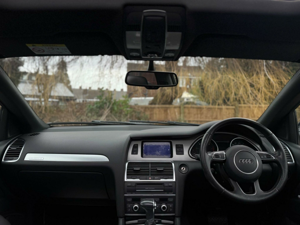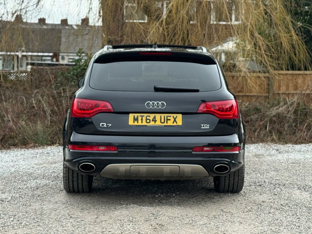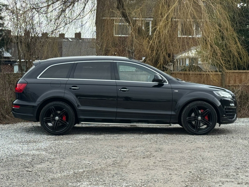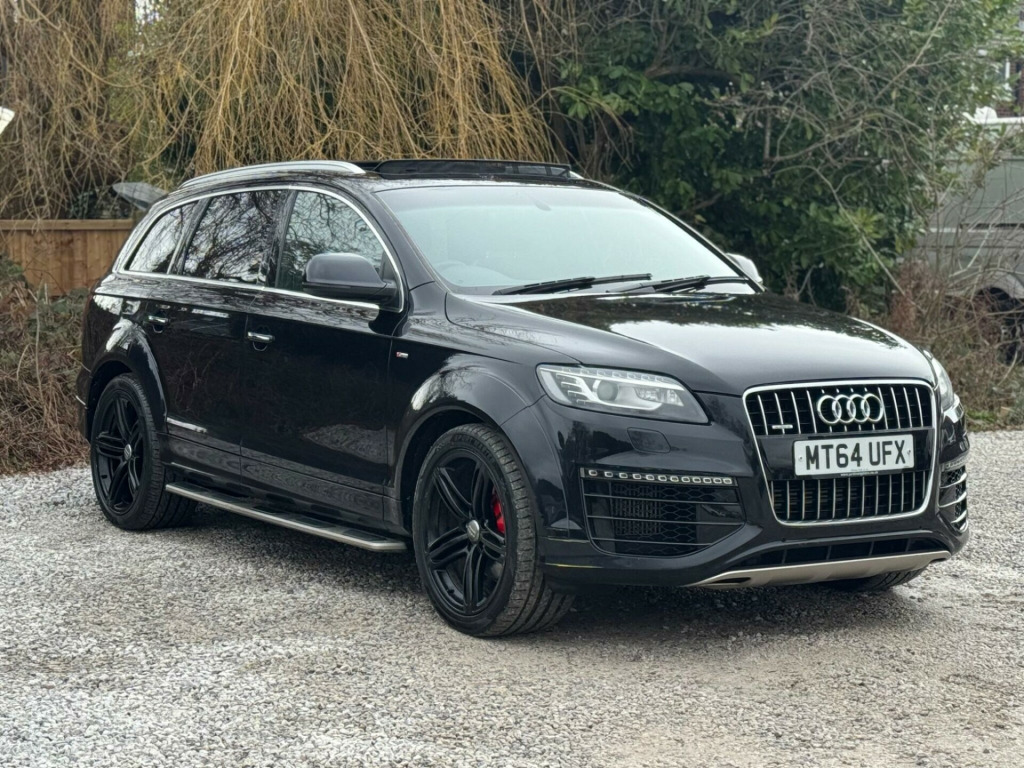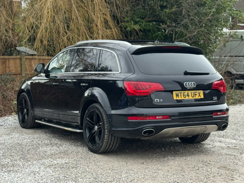 2 FORMER KEEPERSPART SERVICE HISTORYLOGBOOKK2BOSE Surround Sound SystemValuableAudi Entertainment MobileVery rarePanoramic Glass SunroofValuableTV Reception - DigitalVery rareCD ChangerVery rareDoor Mirrors - Heated-Electrically Adjustable-Folding-Auto-DimmingRareVerano Leather - S Line Sports Seats - Black21in Alloy Wheels - 5-Segment-Spoke DesignDigital TV ReceptionEquipment:7 SeatsAir ConditioningAuto Climate ControlAutomatic LightsCruise ControlDual Zone ClimateElectric Sun RoofFull Leather TrimPanoramic RoofRear Parking SensorsThis 2014 Audi Q7 TDI V6 S line Sport Edition offers a compelling blend of performance and practicality, boasting a powerful 3.0 litre diesel engine and a smooth four wheel drive system. With seating for seven, this spacious SUV is ideal for families or those who require extra versatility. The S line Sport Edition trim ensures a premium feel throughout, complemented by desirable features such as heated front seats for added comfort and Audi Parking System Advanced, which includes a reversing camera and front and rear parking sensors to make manoeuvring effortless. Stay connected on the go with Mobile Telephone Preparation featuring Audi Connect and Bluetooth connectivity.Experience impressive acceleration with this Q7, reaching 0 to 62 miles per hour in just 7.8 seconds, a testament to its potent 3.0L diesel engine. This performance, combined with its substantial 3200 kg towing weight, positions it as a capable choice for a variety of needs. Furthermore, its placement in a low insurance group highlights its cost effectiveness, making it an attractive option compared to similar vehicles. se surround sound system, audi entertainment mobile, panoramic glass sunroof, tv reception - digital, cd changer, door mirrors - heated-electrically adjustable-folding-auto-dimming, verano leather - s line sports seats - black, 21in alloy wheels - 5-segment-spoke design, digital tv reception, 12v power socket - centre console, 21in alloy wheels - 5-segment-spoke design titanium finish, 6.5in colour display screen, abs - anti-lock braking system, ami - audi music interface, air vent sleeves - aluminium look, airbags - driver, airbags - front passenger, airbags - front side system, airbags - sideguard curtain, ambient lighting - centre console, anti theft locking wheel bolts, anti-theft alarm, audi parking system advanced with reversing camera, auto-dimming rear-view mirror, automatic wipers with rain sensor, bumpers - contrasting paint finish, car jack, cloth headlining in black, collapsible spare wheel, colour drivers information system - dis, comfort front centre armrest, cruise control, cupholders, dab digital radio, dsp sound system, display screen colour tft 7in high resolution, door lower protection strips, door mirrors - heated-electrically adjustable-folding, door sill trims - s line, double glazing, double load floor, dual-zone electronic climate control, ebd - electronic brakeforce distribution, edl - electronic differential lock, esp - electronic stability programme, electric windows - front and rear, electrically adjustable 4-way lumbar support, electromechanical parking brake, exhaust tailpipe - dual oval shaped, extended wheel arches and door trims, fm-am radio, first aid kit, front lower bumper spoilers, front sports seats, front and rear floor mats, hard drive - 40gb, headlights - automatic adjustment, headlights - bi-xenon plus, headlights washers, heated front seats, isofix child seat mounting for rear seats, illuminated vanity mirrors, inlays - matt brushed aluminium, led daytime running lights, led indicators, led rear lights, large side air intakes with high-gloss black painted horizontal side bars, lighting package, lights in footwell - led, luggage compartment - storage net, luggage compartment cover, mmi radio plus, mobile telephone preparation - high with audi connect, parking sensors - front, parking sensors - rear, power operated tailgate, power steering - servotronic, privacy glass, rear centre armrest, remote central locking, reversing camera, roof rails - high-gloss black, s line badges on front wings, s line design body styling, sd card reader x2, sdhc card reader x2, satellite navigation system - hdd based, seats - backrests - storage net, seats - drivers electric adjustment, seats - passengers electric adjustment, side impact protection, single cd-dvd player, stainless steel running boards, stainless steel underbody protection, steering wheel - 3-spoke, steering wheel - 3-spoke leather, steering wheel - gear-shift paddles, steering wheel - multi-function, styling package - contrast colour exterior, suspension - adaptive air - s models, technology package, tool kit, usb connection, voice dialogue system, warning triangle, window surrounds - aluminium