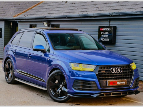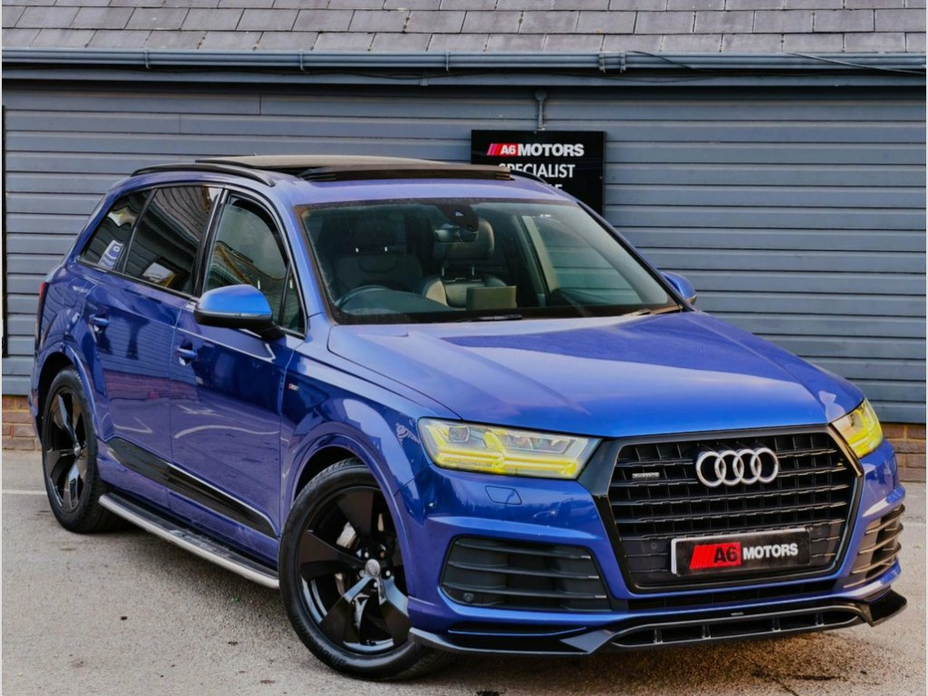 SAME DAY FINANCE AVAILABLE WITH £0 DEPOSIT. CALL OUR FINANCE TEAM FOR A QUOTATION TODAY. REQUEST A PERSONALISED VIDEO TODAY. STUNNING SEPANG BLUE AUDI Q7 BOASTING A FULL SERVICE HISTORY & COMPLIMENTED BY A GOOD FACTORY SPEC. THIS LOVELY EXAMPLE IS SUPPLIED HPI CLEAR & WITH A NATIONWIDE WARRANTY. GOOD CONDITION THROUGH OUT. DRIVES WELL. A WELL LOOKED AFTER EXAMPLE. SPECIFICATION INCLUDES PANORAMIC GLASS SUNROOF, AUDI VIRTUAL COCKPIT, REVERSING CAMERA, RUNNING SIDE BOARDS, 4-ZONE CLIMATE CONTROL, FRONT ELECTRIC SEATS WITH LUMBAR SUPPORT, HEATED ELECTRIC & POWER FOLDING WING MIRRORS, AUTO LIGHTS, CRUISE CONTROL, HEATED FRONT SEATS, DRIVER ASSIST, ADAPTIVE AIR SUSPENSION, SAT NAV, DAB, BLUETOOTH, AUDI PRE SENSE & MORE. A GREAT EXAMPLE. Audi Exclusive Valcona Leather Upholster, Audi Exclusive Valcona Leather Upholster, Full Leather Package, 22in Alloy Wheels - 5-V-Spoke Aluminium , Titanium Black Styling Pack with Black R, Rear View Camera, Customised Paint, Technology Package, Adaptive Air Suspension, Parking Assistance Pack, Leather Package, Running Boards, Panoramic Glass Sunroof, 21in Alloy Wheels - 5-Arm-Turbine Design, Style Package, 20in Alloy Wheels - 5-Parallel Spoke Des, 6-Airbag System, 7 Seats, Aluminium Roof Rails, Aluminium Window Trims, Anti Theft Locking Wheel Bolts, Anti-Theft Alarm, Audi Connect Infotainment Services - 36 , Audi Connect Safety and Service, Audi Drive Select, Audi Hill Hold Assist, Audi Par
