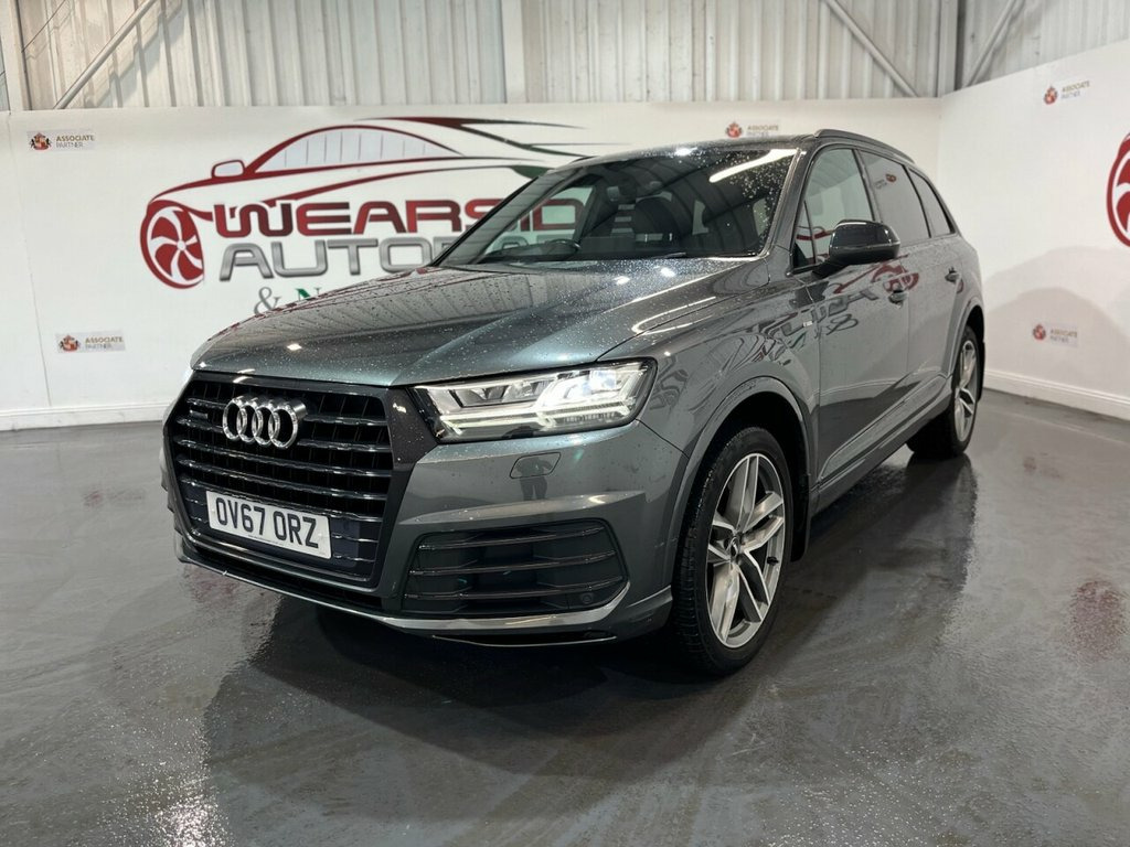Audi Q7 3.0 TDI V6 S line SUV 5dr Diesel Tiptronic quattro Euro 6 (s/s) (272 ps). A superb two-owner example of the Audi Q7 3.0 TDI V6 S line, supplied with two keys and a full Audi main dealer service history recorded at 4k, 13k, 31k, 73k and 78k miles. Powered by the refined 3.0-litre V6 diesel engine producing 272 ps, this Q7 combines impressive performance with comfort, practicality and Audi's renowned quattro all-wheel-drive system. The S line specification includes alloy wheels, DAB digital radio, Bluetooth connectivity, satellite navigation, climate control, privacy glass, electric power tailgate, electric front seats, full leather interior, seven seats, heated front seats, wireless phone charger, keyless start, heated and folding electric door mirrors, automatic headlights, digital dashboard and cruise control. A premium seven-seat SUV offering luxury, space and strong performance, presented in excellent condition throughout. 20in Alloy Wheels - 5-Parallel Spoke Des, 6-Airbag System, 7 Seats, Aluminium Roof Rails, Aluminium Window Trims, Anti Theft Locking Wheel Bolts, Anti-Theft Alarm, Audi Connect Infotainment Services - 36 , Audi Connect Safety and Service, Audi Drive Select, Audi Hill Hold Assist, Audi Parking System Plus, Audi Pre-Sense City, Audi Smartphone Interface, Audi Sound System, Auto-Dimming Rear-View Mirror, Automatic Headlight Adjustment, Bluetooth Interface, Cloth Headlining in Black, Colour Drivers Information System with 7, Cruise Control with Speed Limiter, Deluxe Four-Zone Automatic Climate Contr, Door Mirrors - Heated-Electrically Adjus, Door Sill Trims with S Line Logo, Dynamic Suspension,