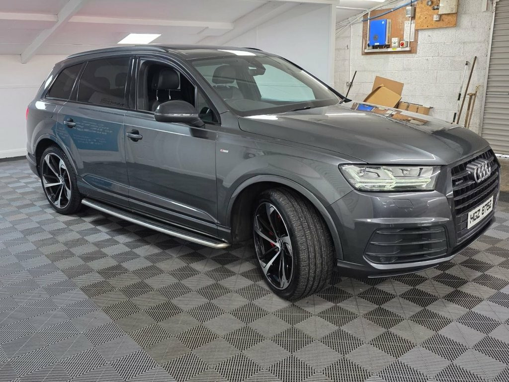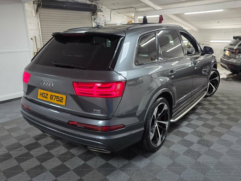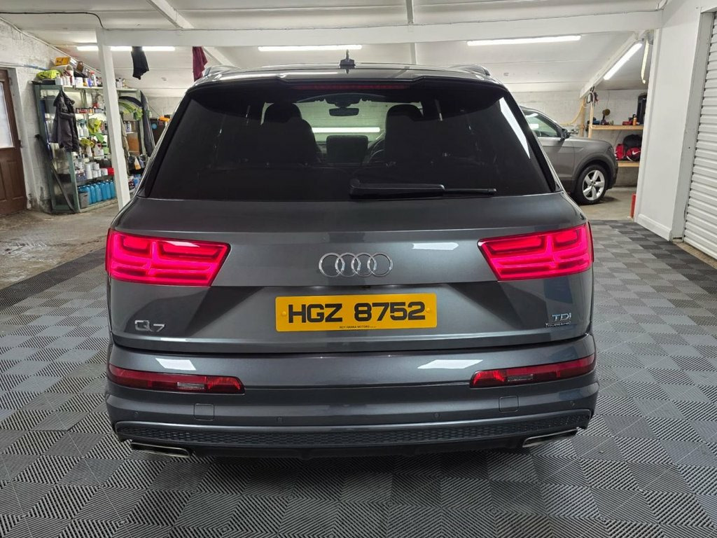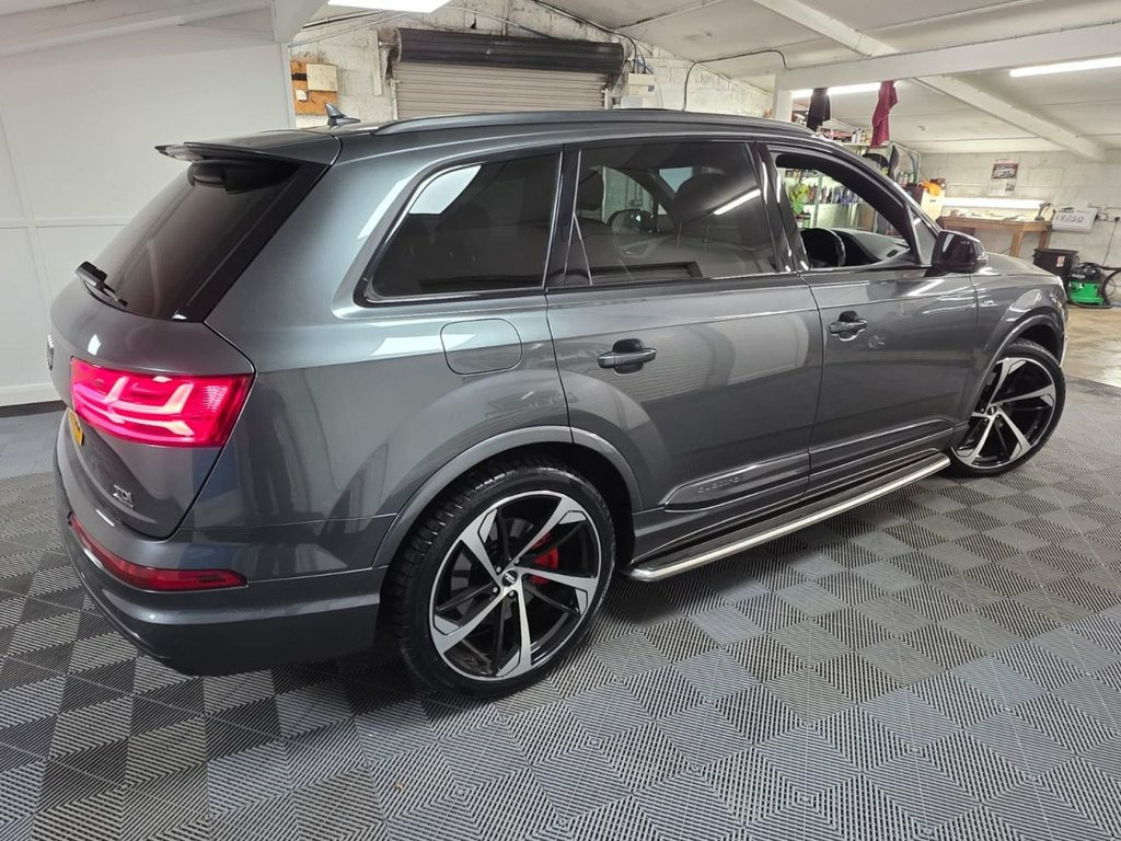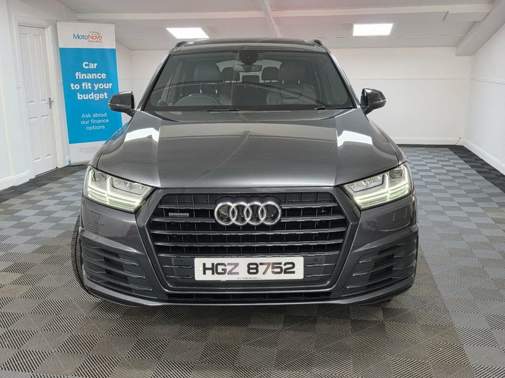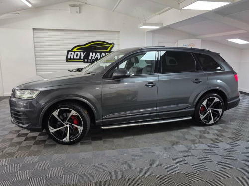 A beautiful 2017 Audi Q7 TDI S Line Quattro ready for viewing at Roy Hanna Motors! 2 Keys. MOT to 15th October 2026. We will fully service this car and it will have a full pre-delivery check for its new owner. **Brand new Alloy Wheels & Tyres shown in pictures are an optional extra ** * We have a variety of wheels to chose from for each vehicle* Packed full of factory extras like - ~ 8" colour display. ~ MMI - Multi Media Interface control system. ~ MMI navigation plus with MMI touch. ~ Audi connect safety and service (e-call). ~ Voice control system. ~ Audi driver select. ~ Driver's information system. ~ Bluetooth hands free telephone connection. ~ Audi music interface. ~ LED Daytime running lights. ~ Front fog lights. ~ Voice control system. ~ Front sports seats. ~ Heated rear windscreen. ~ Remote control central locking. ~ Climate and traction controls. ~ Steering wheel mounted controls. ~ AUX & USB connectivity. ~ CD/Radio Player. ~ Body Coloured Bumpers. ~ Electric windows. *We Have Many Different Finance HP & PCP Deals Available To Suit Your Budget, You Can Drive Away In Your New Car With £0 Deposit & Pay Nothing For 2 Full Months! *For A Personalised Quote Give Us A PM / Text / Call Or Propose Yourself For Finance On Our Website *All Usual Dealer Facilities Available. *Credit/Debit Cards Accepted. *Trade Ins Welcome. *Every Vehicle Comes With Warranty. *Every Vehicle Comes With A Multi Point Health Check, Full Service &am 20in Alloy Wheels - 5-Parallel Spoke Des, 6-Airbag System, 7 Seats, Aluminium Roof Rails, Aluminium Window Trims, Anti Theft Locking Wheel Bolts, Anti-Theft Alarm, Audi Connect Infotainment Services - 36 , Audi Connect Safety and Service, Audi Drive Select, Audi Hill Hold Assist, Audi Parking System Plus, Audi Pre-Sense City, Audi Smartphone Interface, Audi Sound System, Auto-Dimming Rear-View Mirror, Automatic Headlight Adjustment, Bluetooth Interface, Cloth Headlining in Black, Colour Drivers Information System with 7, Cruise Control with Speed Limiter, Deluxe Four-Zone Automatic Climate Contr, Door Mirrors - Heated-Electrically Adjus, Door Sill Trims with S Line Logo, Dynamic Suspension,