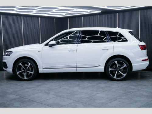 AUDI Q7 3.0 TDI V6 S LINE QUATTRO – HUGE SPEC – 272PS Reg: RK18 CVA | £25,991 A superb example of the Audi Q7 S line, offering commanding road presence, luxury comfort and effortless performance. Powered by the smooth and powerful 3.0 TDI V6 producing 272PS, paired with Audi's refined Tiptronic automatic gearbox and legendary quattro all-wheel drive system. Mileage: 55,791 miles Transmission: Automatic (Tiptronic) Fuel: Diesel Body Style: SUV Euro 6 (s/s) – ULEZ compliant PERFORMANCE & PRACTICALITY: 3.0 V6 Diesel – 272PS Quattro All-Wheel Drive Smooth, powerful & refined drive Excellent towing capability HIGH SPECIFICATION INCLUDES: # Head-Up Display # Audi Virtual Cockpit # Satellite Navigation # Rear View Camera # Front & Rear Parking Sensors # Heated Front Seats # Rear Climate Control # Cruise Control # S line Styling Package # Leather / Alcantara Sports Seats # Ambient Interior Lighting # Bluetooth, DAB & Media Connectivity This Q7 delivers executive-level luxury with serious practicality, making it ideal for families, long-distance driving or towing. The combination of V6 power, quattro grip and premium interior tech makes this a standout example. £25,991 – excellent value for a high-spec V6 Q7 Drives superbly – smooth, quiet and confident Contact today to arrange a viewing or test drive – early interest advised. 20in Alloy Wheels - 5-Parallel Spoke Des, 6-Airbag System, 7 Seats, Aluminium Roof Rails, Aluminium Window Trims, Anti Theft Locking Wheel Bolts, Anti-Theft Alarm, Audi Connect Infotainment Services - 36 , Audi Connect Safety and Service, Audi Drive Select, Audi Hill Hold Assist, Audi Parking System Plus, Audi Pre-Sense City, Audi Smartphone Interface, Audi Sound System, Auto-Dimming Rear-View Mirror, Automatic Headlight Adjustment, Bluetooth Interface, Cloth Headlining in Black, Colour Drivers Information System with 7, Cruise Control with Speed Limiter, Deluxe Four-Zone Automatic Climate Contr, Door Mirrors - Heated-Electrically Adjus, Door Sill Trims with S Line Logo, Dynamic Suspension,