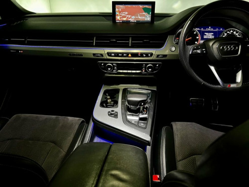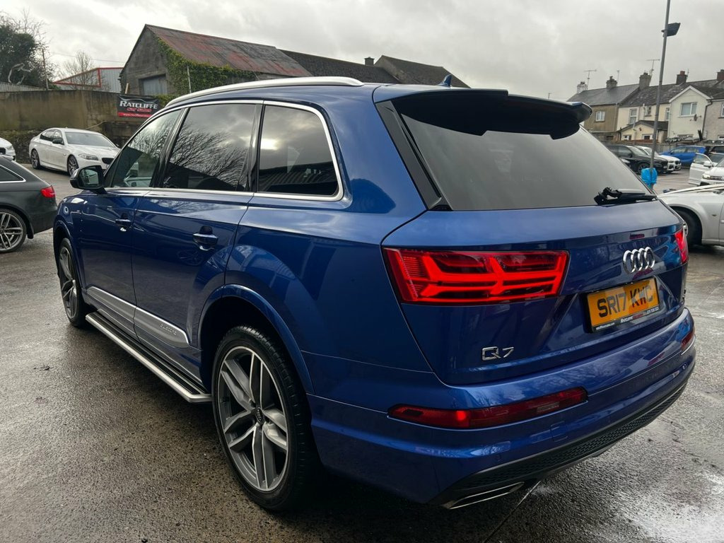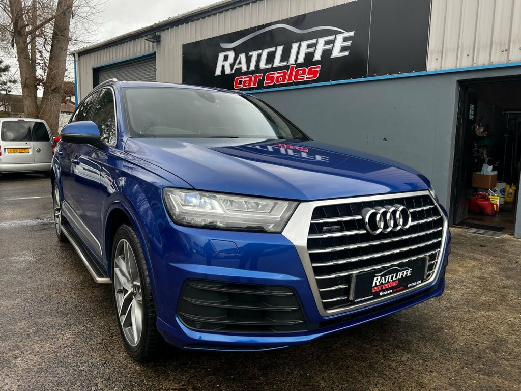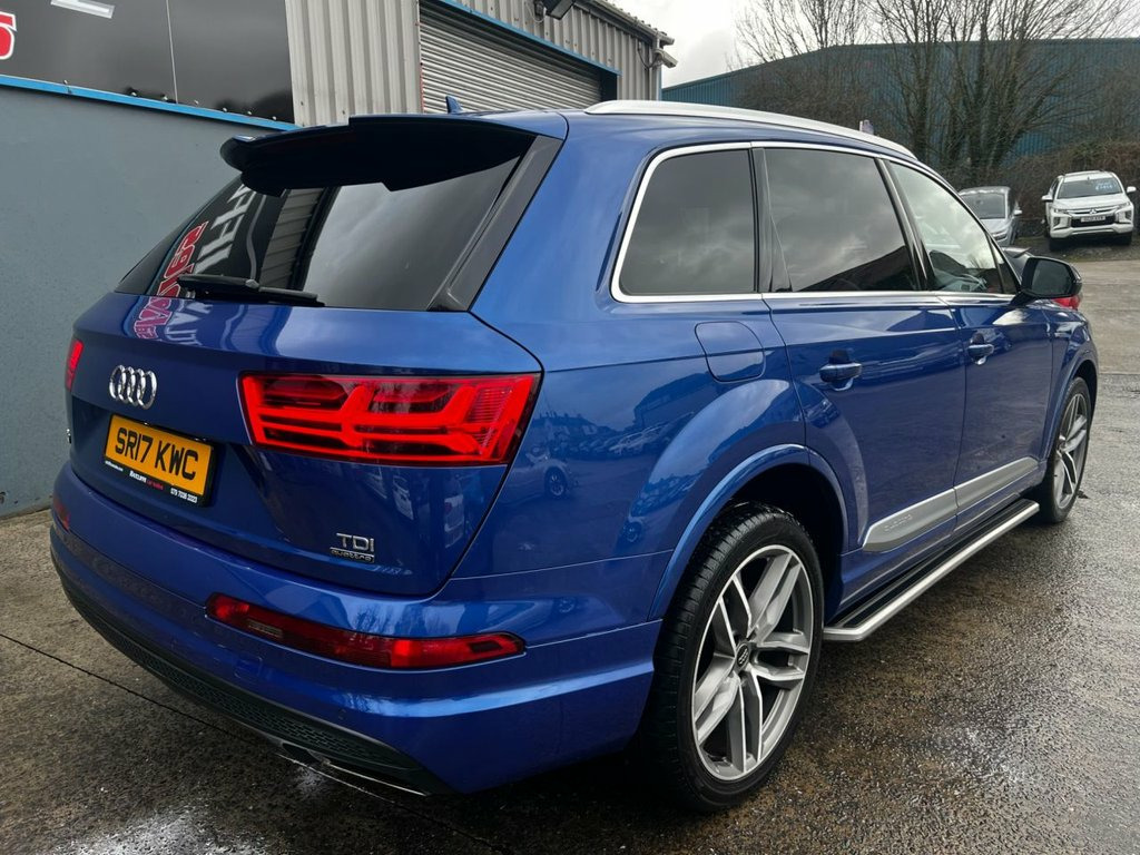 2017 AUDI Q7 3.0 TDI V6 S line SUV 5dr Diesel Tiptronic quattro, ONLY 93939 MILES, MOT OCT 26, 3 SERVICES, STUNNING TOP SPEC Q7 IN SEPANG BLUE, SPEC INCLUDES SAT NAV, HEATED SLINE SPORTS SEATS, REVERSE CAMERA, DAB SAT NAV RADIO, FACTORY TINTED WINDOWS, CLIMATE CONTROL, SIDE STEPS, IMMACULATE JEEP FIRST TO VIEW WILL BUY. 20in Alloy Wheels - 5-Parallel Spoke Des, 6-Airbag System, 7 Seats, Aluminium Roof Rails, Aluminium Window Trims, Anti Theft Locking Wheel Bolts, Anti-Theft Alarm, Audi Connect Infotainment Services - 36 , Audi Connect Safety and Service, Audi Drive Select, Audi Hill Hold Assist, Audi Parking System Plus, Audi Pre-Sense City, Audi Smartphone Interface, Audi Sound System, Auto-Dimming Rear-View Mirror, Automatic Headlight Adjustment, Bluetooth Interface, Cloth Headlining in Black, Colour Drivers Information System with 7, Cruise Control with Speed Limiter, Deluxe Four-Zone Automatic Climate Contr, Door Mirrors - Heated-Electrically Adjus, Door Sill Trims with S Line Logo, Dynamic Suspension,