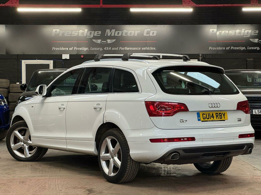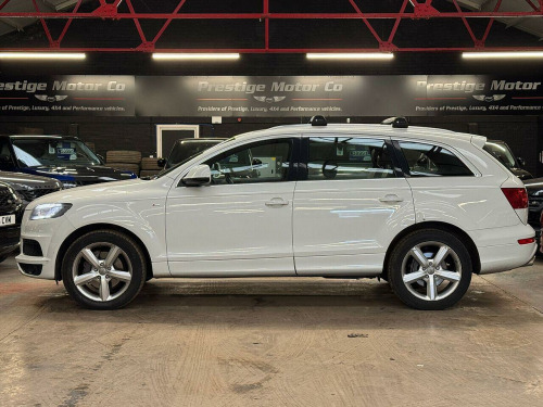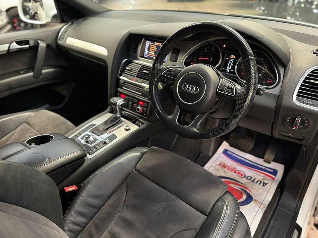 ???? Audi Q7 2014 3.0 V6 – Rare Low‑Mileage Family SUV in Glacier White ????Mileage: 53,284 miles Looking for a premium SUV that delivers space, luxury and practicality — with surprisingly low miles? This 2014 Audi Q7 is a rare find: just 53,284 miles on the clock, making it ideal for families or anyone needing a dependable, well‑kept seven‑seater.???????????????? Perfect for Families & Families‑on‑the‑go7 seats — plenty of room for kids, grown-ups or luggage.Leather interior with S‑line embossing — refined and durable for everyday use.Heated front seats, multi‑functional steering wheel, cruise control — comfort for every journey.Reversing guide (camera/parking aids) — easy maneuvering when fully loaded.Glacier White metallic exterior — timeless, smart and classy look.✨ Spec Highlights:S‑line spec, leather upholstery with S‑line embossingHeated front seatsMulti‑functional steering wheel & cruise control7‑seat configuration — ideal for larger familiesReversing guide / parking aidsMetallic Glacier White paint⚙️ Performance & Efficiency (3.0 V6 Diesel / 3.0 TDI Quattro typical for 2014 Q7):Engine: 3.0 L V6 turbo‑diesel, delivering robust power and torque — approx. 240 hp / 550 Nm torque. Torque: 406 lb‑ft (≈ 550 Nm) Utility: large 7‑seat interior, flexible seating/boot space — excellent for family trips, school runs, luggage or sports gear.???? History & Added Assurance:Service history maintained at independent service garages — cared for and looked after.Upgradable service plans & warranty options available — for extra peace of mind.12 months MOT included.6 months breakdown cover + warranty coverage included.???? Convenience & Value:Part‑exchange welcomed — trade in your current car.Flexible finance options available — we’ll help you find a plan that works for you.Why this Q7 stands out:With only 53,284 miles, this Q7 is rare — most 2014 SUVs have far higher mileage by now. Combine that with a full 7‑seat, well‑spec’d interior (heated seats, S‑line leather, premium trim), a strong 3.0 V6 diesel with good economy for its size, and the practicality of an SUV ideal for larger families — this car delivers exceptional value.???? Contact Prestige Motor Company today to book a viewing or test drive — don’t miss out on this rare, well‑careed 2014 Audi Q7.. 12V Power Socket - Centre Console, 12V Power Socket - Rear x2, 6.5in Colour Display Screen, CD/Radio, DAB Digital Radio, FM-AM Radio, MMI Radio Plus with DSP Sound System, Mobile Telephone Preparation - Bluetooth Interface, MP3 and WMA Compatible CD Player, SDHC Card Reader x2, Audi Parking System Rear with Acoustic Indicators, Cruise Control, Drivers Information System - DIS, Reversing Camera with Helplines and Guidelines, 20in Alloy Wheels - 5-Spoke Design, Aluminium Roof Rails, Anti Theft Locking Wheel Bolts, Bumpers - Contrasting, Collapsible Spare Wheel, Door Mirrors - Heated-Electrically Adjustable-Folding, Double Glazing, Electric Windows - Front and Rear, LED Indicators, Rear Door Exit Lights, S Line Badge on Wings, S Line Badging, S Line Body Styling, Window Surrounds - Aluminium, Front Fog Lights, Headlights - Automatic Adjustment, Headlights - Bi-Xenon Plus, Headlights - Coming-Leaving Home Function, Headlights - Light Sensor, Headlights Washers, LED Daytime Running Lights, LED Rear Lights, Active Door Reflectors, Air Vent Sleeves - Aluminium Look, Ambient Lighting - Centre Console, Auto-Dimming Rear-View Mirror, Automatic Wipers with Rain Sensor, Car Jack, Cloth Headlining in Black, Comfort Front Centre Armrest, Cup Holders - Centre Console, Cup Holders in Rear Armrest x2, Cupholders in Front Centre Armrest, Cupholders x2 in Third Row, Door Sill Trims - S Line, Double Load Floor, Dual-Zone Electronic Climate Control, Electrically Adjustable 4-Way Lumbar Support, Folding Storage Compartment in Front Centre Armrest, Front and Rear Floor Mats, Front and Rear Footwell Lighting, Front Door Exit Lights, Heated Front Seats, Illuminated Air Vents in B-pillar, Illuminated Ashtray in Rear, Illuminated Vanity Mirrors, Inlays - Matt Brushed Aluminium, Lighting Package, Luggage Compartment - Net, Luggage Compartment - Side Net, Luggage Compartment Cover, Pollen Filter, Rear Centre Armrest, Remote Boot Release, Seats - Backrests - Storage Net, Seats - Front Electric Adjustment, Seats - Front Electric Height Adjustment, Split-Folding Rear Seats, Steering Column - Rake and Reach Adjustment, Steering Wheel - 3-Spoke Leather-Multi-Function-Shift Paddles, Steering Wheel - Multi-function, Storage - Glasses Holder in Roof Module, Through-Load Facility, Tool Kit, TP Memo - Automatically Saves Traffic News, Adaptive Air Suspension, EDL - Electronic Differential Lock, Power Steering - Servotronic Speed-Dependent, ABS - Anti-Lock Braking System, Airbags - Driver, Airbags - Front Passenger, Airbags - Front Side System, Airbags - Sideguard Curtain, Alarm - Thatcham Category 1, Door lock switches on all 4 doors, EBD - Electronic Brakeforce Distribution, ESP - Electronic Stability Programme, First Aid Kit, Front Passenger Airbag Deactivation Switch, ISOFIX - front passenger - second and third row seats, Parking Brake - Foot Operated, Remote Central Locking, Side Impact Protection, Warning Triangle.