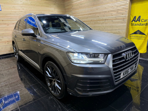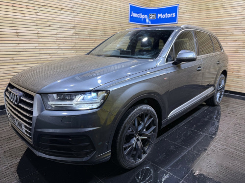 This Audi Q7 S line has 2 former keepers and comes with New Service and MOT , Just had full service including front and rear brakes Fantastic spec including Panoramic Roof , Heated Memory Alcantara Leather Trim , 360 cameras , Bose Audio , Cruise Control , 4 zone Air Conditioning , Electric Tailgate , Head Up Display , Xenon's , 22'' alloys Junction 21 Motors Ltd is a family-run business with over 15 years of experience in the motor trade. We are an AA Approved Garage, conveniently located at Rolstone Farm, just half a mile from M5 Junction 21. FCA Registered - working with a wide panel of trusted finance providers Part Exchange Welcome All Viewings by Appointment Only (fees may apply) Opening Hours: •Monday - Friday: 9:30am - 6:00pm •Saturday: 10:00am - 5:00pm •Sunday: Hours vary (please call to confirm) Call us on 01934 268 001 Visit our website for directions and to browse our latest stock. in alloy wheels - 5-parallel spoke design, aluminium roof rails, aluminium window trims, anti theft locking wheel bolts, chrome package, door mirrors - heated-electrically adjustable-folding, dynamic rear indicators, electric windows - front and rear, exterior mirror housings in body colour, full body-colour paint finish, gloss package, heat insulating glass - windscreen, privacy glass, s line body styling, tyre repair kit, 7 seats, auto-dimming rear-view mirror, cloth headlining in black, comfort front centre armrest, deluxe four-zone automatic climate control, door sill trims with s line logo, electrically adjustable 4-way lumbar support, electrically adjustable front seats, front and rear floor mats, heated front seats, interior light package, keyless go, power operated tailgate, stainless steel loading sill protector, steel pedal cluster, steering wheel - 3-spoke leather - multi-function - sports, steering wheel - height and reach adjustable, tool kit, two cup-holders in centre console, upper inlays in brushed aluminium-sono and lower inlays in chrome paint finish-slate grey, ami - audi music interface, audi connect - 3 month trial, audi connect infotainment embedded sim, audi connect safety and service - e-call, audi smartphone interface, audi sound system, bluetooth interface, dab digital radio reception, driver information system with colour display, mmi navigation plus including mmi touch, mmi radio plus, airbags - front side with curtain, anti-theft alarm, audi hill hold assist, audi pre-sense city, child locks, driver and front passenger airbag with front passenger airbag deactivation, esc - electronic stabilisation control inc abs - ebd - asr - edl, electromechanical parking brake, first aid kit and warning triangle, hill descent control, isofix child seat mounting, remote central locking, seat belt monitoring, all weather led headlights, headlight washer system, high-beam assist, led rear lights, light and rain sensor, audi drive select, audi parking system plus, cruise control with speed limiter, dynamic suspension, electromechanical power steering, power steering - servotronic, tyre pressure loss indicator, voice control system