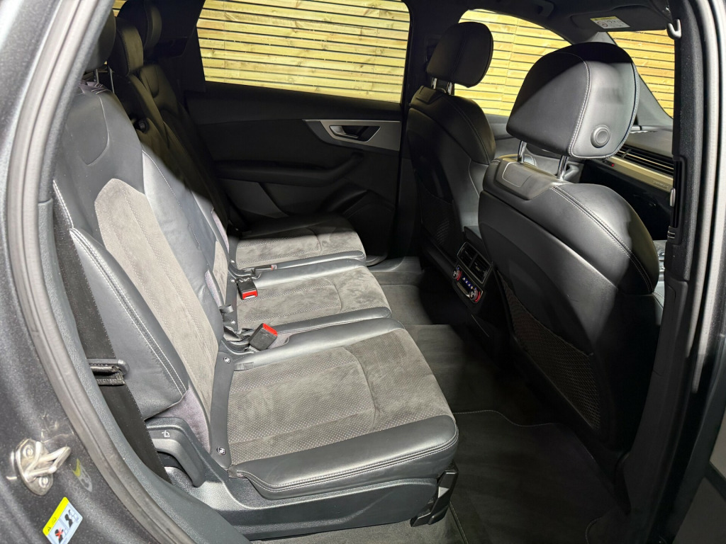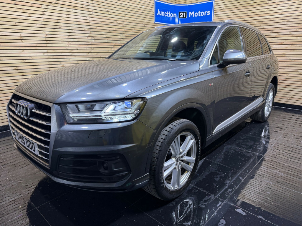This Audi Q7 3.0 S line has only 1 former keeper and comes with 4 services , New Service and MOT , 2 keys Very good spec including Adaptive Cruise Control , 4 zone Air Conditioning , Alcantara Heated Black Leather Trim , Front and Rear parking sensors , xenon's , Satellite Navigation , Bluetooth Connectivity , electric tailgate , 20''Alloys Junction 21 Motors Ltd is a family-run business with over 15 years of experience in the motor trade. We are an AA Approved Garage, conveniently located at Rolstone Farm, just half a mile from M5 Junction 21. FCA Registered - working with a wide panel of trusted finance providers Part Exchange Welcome All Viewings by Appointment Only (fees may apply) Opening Hours: •Monday - Friday: 9:30am - 6:00pm •Saturday: 10:00am - 5:00pm •Sunday: Hours vary (please call to confirm) Call us on 01934 268 001 Visit our website for directions and to browse our latest stock. x sdxc card readers, ami - audi music interface, aux-in socket, amplifier - 6 channel, audi connect - 3 month trial, audi sound system, bluetooth audio streaming, colour touchscreen display - 8.3in, dab digital radio, dvd player, display screen colour tft 7in high resolution, flash memory for music - 10gb, mmi navigation plus including mmi touch, mmi radio plus, mmi search, mobile telephone preparation - bluetooth interface, speakers x10, subwoofer, usb connection x2, 20in alloy wheels - 5-parallel spoke design, aluminium roof rails, anti theft locking wheel bolts, body coloured bumpers, body coloured door mirrors, door handles - body coloured, door mirrors - heated-electrically adjustable-folding, door mirrors - kerb view function, dynamic rear indicators, electric windows - front and rear, lighting - tailgate, platinum grey front spoiler lip and diffuser insert with honeycomb grid in black, privacy glass, rear diffuser - s line design, s line badges on front wings, s line body styling, s line bumpers-side ventilation grilles-side skirts and roof spoiler, s line roof spoiler, tyre repair kit, window surrounds - aluminium, 3d map display of places of interest and city models, air conditioning - deluxe automatic at the rear, auto-dimming rear-view mirror, automatic wipers with rain sensor, cloth headlining in black, comfort front centre armrest, contour door and dashboard lighting, cup holders in rear armrest x2, dashboard - upper and lower - black, deluxe 4-zone automatic climate control, door handles - inside lights, door sill trims with s line logo, electrically adjustable 4-way lumbar support, electrically adjustable front seats, entrance lighting, front centre armrest - adjustable, front and rear floor mats, front and rear reading lights, glovebox - illuminated, head restraints - front adjustable, heated front seats, illuminated footwell lighting, illuminated vanity mirrors, interior light package, keyless go, luggage compartment - lighting, power operated tailgate, rear centre armrest, seats - 2nd row split - 35-30-35, seats - 3rd row electrically folding - 50-50, seats - dark silver stitching, seats - front height adjustment, seats - sports - s line, smoking package, stainless steel loading sill protector, steering wheel - 3-spoke s line multi-function leather, steering wheel - gear shift paddles, steering wheel - height and reach adjustable, steering wheel - multi-function, tool kit and car jack, two cup-holders in centre console, upper inlays in brushed aluminium-sono and lower inlays in chrome paint finish-slate grey, abs - anti-lock braking system, asr - anti slip regulation, airbags - curtain, airbags - driver, airbags - front passenger, airbags - front side system, anti-theft alarm, audi hill hold assist, audi parking system plus, autonomous braking system, ebd - electronic brakeforce distribution, esc - electronic stabilisation control, electromechanical parking brake, first aid kit, front passenger airbag deactivation switch, hill descent control, isofix child seat preparation for rear seats with top tether, isofix for front passenger seat, pre-sense city, remote central locking, seat belt monitoring, speed limit display, warning triangle, acoustic and visual parking system - front, acoustic and visual parking system - rear, audi drive select, colour drivers information system - dis, cruise control with speed limiter, dynamic suspension, edl - electronic differential lock, mmi touch, outside temperature display, power steering - servotronic, tyre pressure loss indicator, voice control - navigation, all weather led headlights, headlights - adaptive, headlights - automatic, headlights - high-beam assist, headlights washers, led daytime running lights, led rear lights