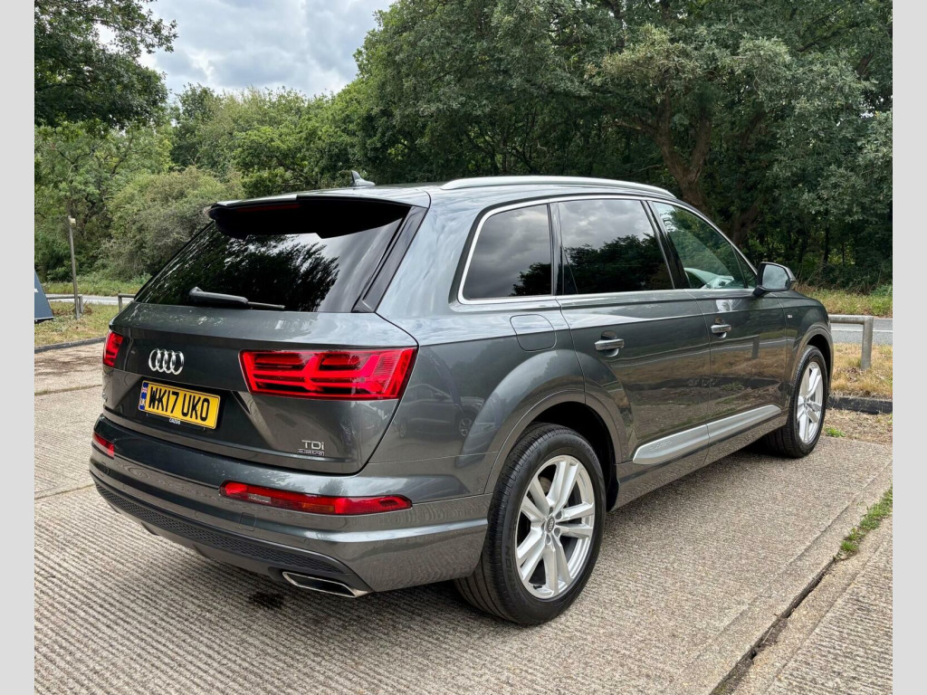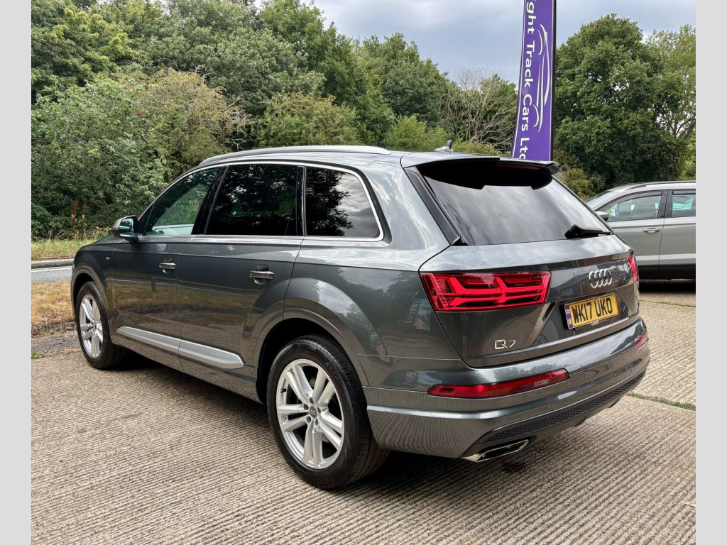Right Track Cars Ltd are a well established, family run business known for the quality of our vehicles and our friendly customer service. With a full service history and a clear vehicle check, this 2017 Audi Q7 is ready to impress. As a TDI V6 S line model, it combines practicality with a touch of sporty styling. The 3.0L diesel engine powers all four wheels, offering confident performance whether youre navigating city streets or country lanes. Inside, youll find a spacious seven-seat configuration, perfect for families or those needing extra passenger space. Stay connected on the move with Bluetooth audio streaming and mobile telephone preparation, while heated front seats ensure comfort during colder months. The automatic headlights and power tailgate add convenience, and the front and rear parking system provides assistance when manoeuvring. Satellite navigation is also included. This Q7 stands out with its low mileage of just 72,926 miles for its age. The recent service, completed on 3 February 2025 at 71,586 miles, offers peace of mind. It also falls into a low insurance group, potentially saving you money on your premiums. Capable of accelerating from 0-62mph in just 6.5 seconds, this car delivers responsive performance and is also Euro 6/ULEZ compliant. For added assurance, it comes with a 6-month RAC warranty, 12m RAC breakdown cover and an advisory clear MOT to 20 August 2026. Plus, with a towing capacity of 2800 kg, its well-equipped for various tasks. **OWN THIS CAR FOR £471 A MONTH, SEE IMAGES FOR DETAILS**. 10.9% APR (TYPICAL) SAME DAY FINANCE AVAILABLE. Great value RAC extended warranties available. We are open Monday to Saturday from 9.30 - 5.00 (4.00 on Saturdays). Please call us on 01425 837060 or e-mail us at [email protected] to arrange your viewing and test drive, or call in at your convenience.**Right Track Cars have been awarded Auto Traders coveted Highly Rated for Customer Service Award for 2017, 2018, 2019, 2020, 2021, 2022 and 2023 and proudly hold a 4.9* average Customer Review Rating on Auto Trader / Feefo.**