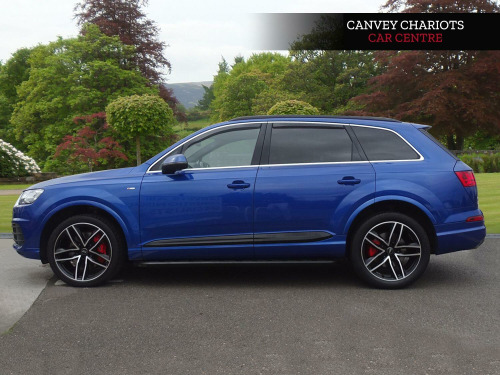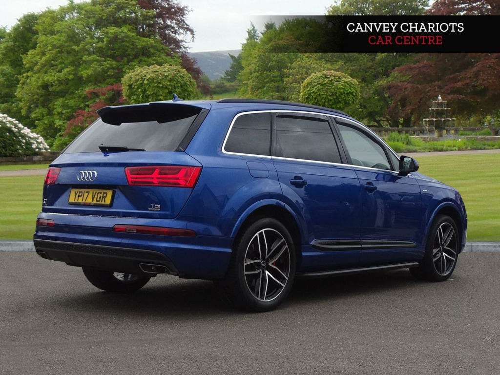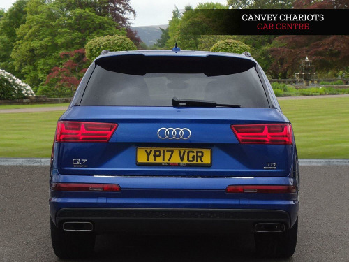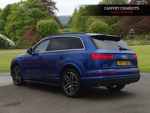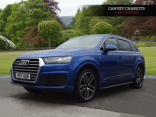 This 2017 Audi Q7 TDI V6 S line offers a compelling blend of performance and luxury, boasting a powerful 3.0L Diesel engine and Audi's renowned Four Wheel Drive system for confident handling in all conditions. With seating for seven, this Euro 6 compliant SUV is perfect for families and adventurers alike, capable of towing up to 2800 kg. Inside, you'll find a host of premium features designed for comfort and convenience, including Deluxe Four-Zone Automatic Climate Control, Heated Front Seats, and a Bluetooth Interface for seamless connectivity. The Light and Rain Sensor, along with All Weather LED Headlights, ensure excellent visibility and ease of use, day or night.The Q7 TDI V6 S line stands out with its impressive acceleration, reaching 0-62mph in a swift 6.5 seconds, a performance that highlights its dynamic capabilities compared to other vehicles in its class. Furthermore, its placement in a low insurance group makes it an economical choice for everyday driving. This combination of potent performance, spaciousness, advanced technology, and cost effectiveness makes the 2017 Audi Q7 TDI V6 S line a truly exceptional proposition.. 20in Alloy Wheels - 5-Parallel Spoke Design, 7 Seats, AMI - Audi Music Interface, Airbags - Front Side with Curtain, All Weather LED Headlights, Aluminium Roof Rails, Aluminium Window Trims, Anti Theft Locking Wheel Bolts, Anti-Theft Alarm, Audi Connect - 3 Month Trial, Audi Connect Infotainment Embedded SIM, Audi Connect Safety and Service - e-call, Audi Drive Select, Audi Hill Hold Assist, Audi Parking System Plus, Audi Pre-Sense City, Audi Smartphone Interface, Audi Sound System, Auto-Dimming Rear-View Mirror, Bluetooth Interface, Child Locks, Chrome Package, Cloth Headlining in Black, Comfort Front Centre Armrest, Cruise Control with Speed Limiter, DAB Digital Radio Reception, Deluxe Four-Zone Automatic Climate Control, Door Mirrors - Heated-Electrically Adjustable-Folding, Door Sill Trims with S Line Logo, Driver Information System with Colour Display, Driver and Front Passenger Airbag with Front Passenger Airbag Deactivation, Dynamic Rear Indicators, Dynamic Suspension, ESC - Electronic Stabilisation Control inc ABS - EBD - ASR - EDL, Electric Windows - Front and Rear, Electrically Adjustable 4-Way Lumbar Support, Electrically Adjustable Front Seats, Electromechanical Parking Brake, Electromechanical Power Steering, Exterior Mirror Housings in Body Colour, First Aid Kit and Warning Triangle, Front and Rear Floor Mats, Full Body-Colour Paint Finish, Gloss Package, Headlight Washer System, Heat Insulating Glass - Windscreen, Heated Front Seats, High-Beam Assist, Hill Descent Control, ISOFIX Child Seat Mounting, Interior Light Package, Keyless Go, LED Rear Lights, Light and Rain Sensor, MMI Navigation Plus including MMI Touch, MMI Radio Plus, Power Operated Tailgate, Power Steering - Servotronic, Privacy Glass, Remote Central Locking, S Line Body Styling, Seat Belt Monitoring, Stainless Steel Loading Sill Protector, Steel Pedal Cluster, Steering Wheel - 3-Spoke Leather - Multi-function - Sports, Steering Wheel - Height and Reach Adjustable, Tool Kit, Two Cup-Holders in Centre Console, Tyre Pressure Loss Indicator, Tyre Repair Kit, Upper Inlays in Brushed Aluminium-Sono and Lower Inlays in Chrome Paint Finish-Slate Grey, Voice Control System.