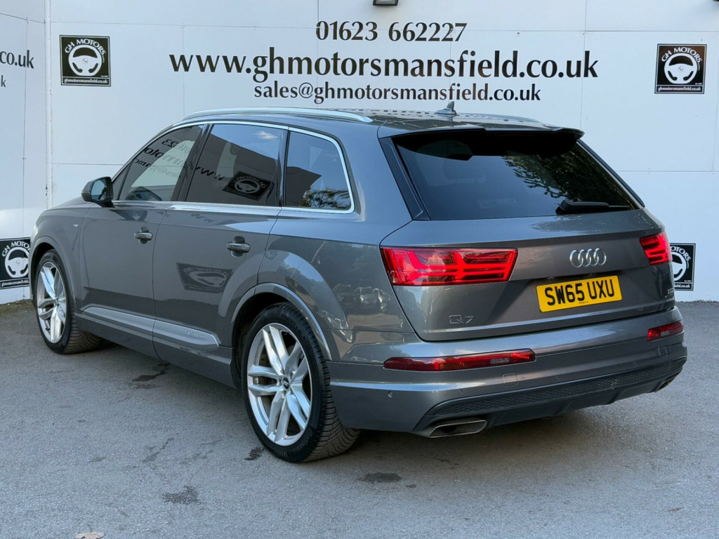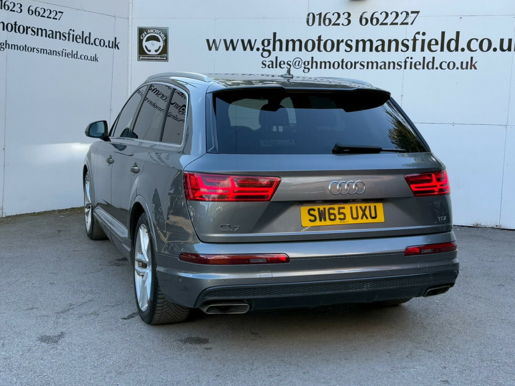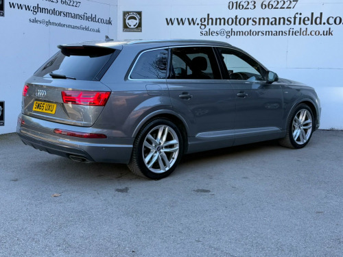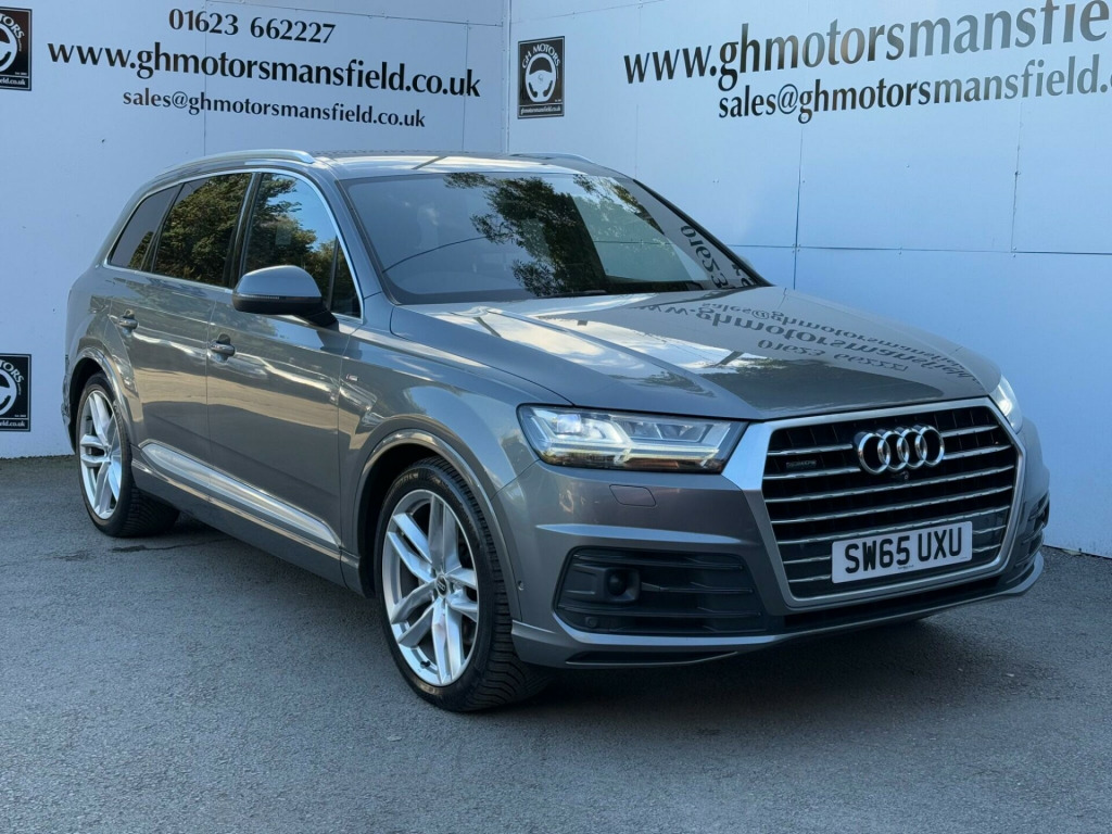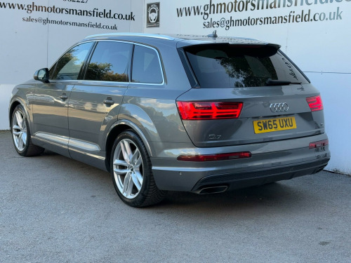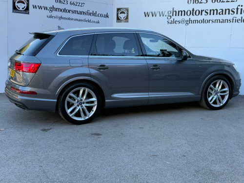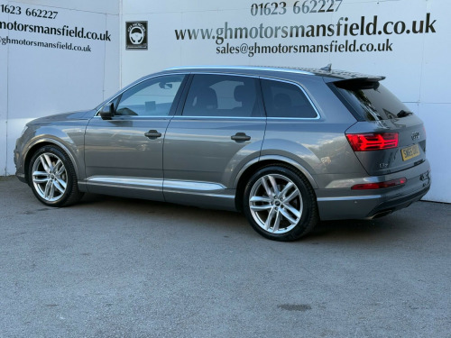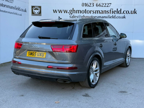 12 MONTHSWARRANTY £299,This Audi Q7 TDI V6 S line from 2015 is a remarkable example with full AUDI service history & only two owners. It boasts a powerful 3.0 litre diesel engine paired with Audi's renowned Four Wheel Drive system, ensuring confident handling in all conditions. The spacious interior comfortably seats seven, making it ideal for families or those needing versatile passenger capacity. This Euro 6 compliant model also features an impressive towing weight of 2800 kg. For convenience and ease of use, it includes Acoustic and Visual Parking Systems for both front and rear, automatic headlights, and heated front seats. Bluetooth connectivity allows for seamless audio streaming and handsfree calls.The performance of this Q7 is truly noteworthy, achieving 0-62mph in a swift 6.5 seconds, demonstrating its dynamic capability. This acceleration figure indicates a superior driving experience compared to many other vehicles in its class. Furthermore, its placement in a low insurance group suggests that running costs are kept more manageable. These combined attributes make this Audi Q7 TDI V6 S line a compelling choice for those seeking a blend of performance, practicality, and sophisticated features.. 2 x SDXC Card Readers, 20in Alloy Wheels - 5-Parallel Spoke Design, 3D Map Display of Places of Interest and City Models, ABS - Anti-Lock Braking System, AMI - Audi Music Interface, ASR - Anti Slip Regulation, AUX-IN Socket, Acoustic and Visual Parking System - Front, Acoustic and Visual Parking System - Rear, Air Conditioning - Deluxe Automatic at the Rear, Airbags - Curtain, Airbags - Driver, Airbags - Front Passenger, Airbags - Front Side System, All Weather LED Headlights, Aluminium Roof Rails, Amplifier - 6 Channel, Anti Theft Locking Wheel Bolts, Anti-Theft Alarm, Audi Connect - 3 Month Trial, Audi Drive Select, Audi Hill Hold Assist, Audi Parking System Plus, Audi Sound System, Auto-Dimming Rear-View Mirror, Automatic Wipers with Rain Sensor, Autonomous Braking System, Bluetooth Audio Streaming, Body Coloured Bumpers, Body Coloured Door Mirrors, Cloth Headlining in Black, Colour Drivers Information System - DIS, Colour Touchscreen Display - 8.3in, Comfort Front Centre Armrest, Contour Door and Dashboard Lighting, Cruise Control with Speed Limiter, Cup Holders in Rear Armrest x2, DAB Digital Radio, DVD Player, Dashboard - Upper and Lower - Black, Deluxe 4-Zone Automatic Climate Control, Display Screen Colour TFT 7in High Resolution, Door Handles - Body Coloured, Door Handles - Inside Lights, Door Mirrors - Heated-Electrically Adjustable-Folding, Door Mirrors - Kerb View Function, Door Sill Trims with S Line Logo, Dynamic Rear Indicators, Dynamic Suspension, EBD - Electronic Brakeforce Distribution, EDL - Electronic Differential Lock, ESC - Electronic Stabilisation Control, Electric Windows - Front and Rear, Electrically Adjustable 4-Way Lumbar Support, Electrically Adjustable Front Seats, Electromechanical Parking Brake, Entrance Lighting, First Aid Kit, Flash Memory for Music - 10GB, Front Centre Armrest - Adjustable, Front Passenger Airbag Deactivation Switch, Front and Rear Floor Mats, Front and Rear Reading Lights, Glovebox - Illuminated, Head Restraints - Front Adjustable, Headlights - Adaptive, Headlights - Automatic, Headlights - High-Beam Assist, Headlights Washers, Heated Front Seats, Hill Descent Control, ISOFIX Child Seat Preparation for Rear Seats with Top Tether, ISOFIX for Front Passenger Seat, Illuminated Footwell Lighting, Illuminated Vanity Mirrors, Interior Light Package, Keyless Go, LED Daytime Running Lights, LED Rear Lights, Lighting - Tailgate, Luggage Compartment - Lighting, MMI Navigation Plus including MMI Touch, MMI Radio Plus, MMI Search, MMI Touch, Mobile Telephone Preparation - Bluetooth Interface, Outside Temperature Display, Platinum Grey Front Spoiler Lip and Diffuser Insert with Honeycomb Grid in Black, Power Operated Tailgate, Power Steering - Servotronic, Pre-Sense City, Privacy Glass, Rear Centre Armrest, Rear Diffuser - S Line Design, Remote Central Locking, S Line Badges on Front Wings, S Line Body Styling, S Line Bumpers-Side Ventilation Grilles-Side Skirts and Roof Spoiler, S Line Roof Spoiler, Seat Belt Monitoring, Seats - 2nd Row Split - 35-30-35, Seats - 3rd Row Electrically Folding - 50-50, Seats - Dark Silver Stitching, Seats - Front Height Adjustment, Seats - Sports - S Line, Smoking Package, Speakers x10, Speed Limit Display, Stainless Steel Loading Sill Protector, Steering Wheel - 3-spoke S line Multi-function Leather, Steering Wheel - Gear Shift Paddles, Steering Wheel - Height and Reach Adjustable, Steering Wheel - Multi-function, Subwoofer, Tool Kit and Car Jack, Two Cup-Holders in Centre Console, Tyre Pressure Loss Indicator, Tyre Repair Kit, USB Connection x2, Upper Inlays in Brushed Aluminium-Sono and Lower Inlays in Chrome Paint Finish-Slate Grey, Voice Control - Navigation, Warning Triangle, Window Surrounds - Aluminium. Full dealership history