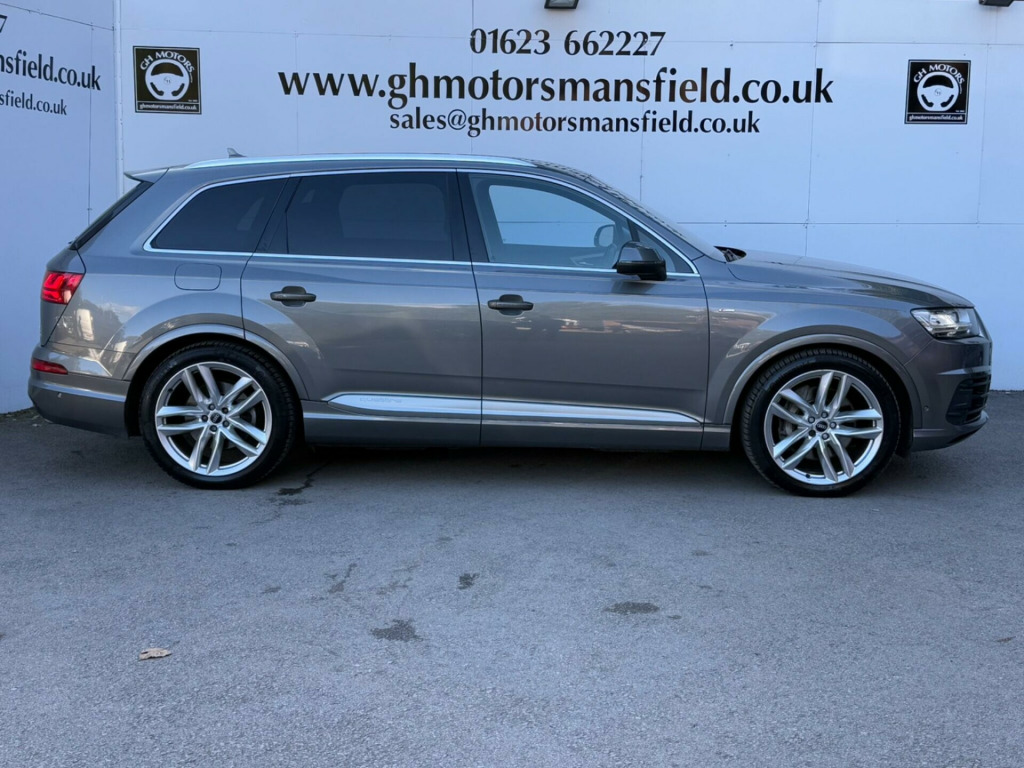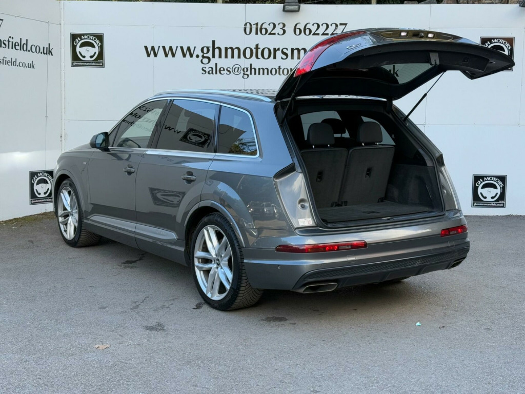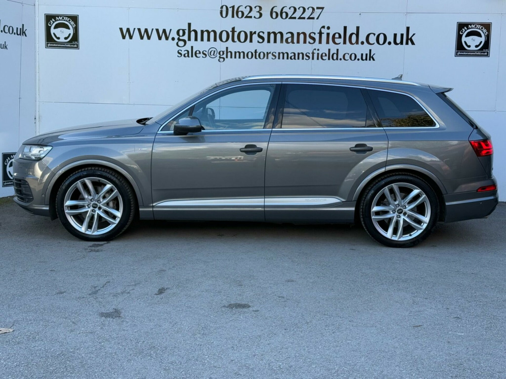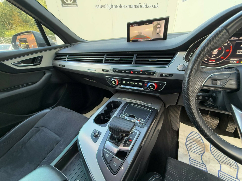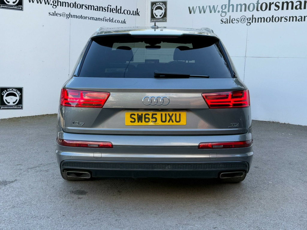 12 MONTHSWARRANTY £299,This Audi Q7 TDI V6 S line from 2015 is a remarkable example with full AUDI service history & only two owners. It boasts a powerful 3.0 litre diesel engine paired with Audi's renowned Four Wheel Drive system, ensuring confident handling in all conditions. The spacious interior comfortably seats seven, making it ideal for families or those needing versatile passenger capacity. This Euro 6 compliant model also features an impressive towing weight of 2800 kg. For convenience and ease of use, it includes Acoustic and Visual Parking Systems for both front and rear, automatic headlights, and heated front seats. Bluetooth connectivity allows for seamless audio streaming and handsfree calls.The performance of this Q7 is truly noteworthy, achieving 0-62mph in a swift 6.5 seconds, demonstrating its dynamic capability. This acceleration figure indicates a superior driving experience compared to many other vehicles in its class. Furthermore, its placement in a low insurance group suggests that running costs are kept more manageable. These combined attributes make this Audi Q7 TDI V6 S line a compelling choice for those seeking a blend of performance, practicality, and sophisticated features.. 2 x SDXC Card Readers, 20in Alloy Wheels - 5-Parallel Spoke Design, 3D Map Display of Places of Interest and City Models, ABS - Anti-Lock Braking System, AMI - Audi Music Interface, ASR - Anti Slip Regulation, AUX-IN Socket, Acoustic and Visual Parking System - Front, Acoustic and Visual Parking System - Rear, Air Conditioning - Deluxe Automatic at the Rear, Airbags - Curtain, Airbags - Driver, Airbags - Front Passenger, Airbags - Front Side System, All Weather LED Headlights, Aluminium Roof Rails, Amplifier - 6 Channel, Anti Theft Locking Wheel Bolts, Anti-Theft Alarm, Audi Connect - 3 Month Trial, Audi Drive Select, Audi Hill Hold Assist, Audi Parking System Plus, Audi Sound System, Auto-Dimming Rear-View Mirror, Automatic Wipers with Rain Sensor, Autonomous Braking System, Bluetooth Audio Streaming, Body Coloured Bumpers, Body Coloured Door Mirrors, Cloth Headlining in Black, Colour Drivers Information System - DIS, Colour Touchscreen Display - 8.3in, Comfort Front Centre Armrest, Contour Door and Dashboard Lighting, Cruise Control with Speed Limiter, Cup Holders in Rear Armrest x2, DAB Digital Radio, DVD Player, Dashboard - Upper and Lower - Black, Deluxe 4-Zone Automatic Climate Control, Display Screen Colour TFT 7in High Resolution, Door Handles - Body Coloured, Door Handles - Inside Lights, Door Mirrors - Heated-Electrically Adjustable-Folding, Door Mirrors - Kerb View Function, Door Sill Trims with S Line Logo, Dynamic Rear Indicators, Dynamic Suspension, EBD - Electronic Brakeforce Distribution, EDL - Electronic Differential Lock, ESC - Electronic Stabilisation Control, Electric Windows - Front and Rear, Electrically Adjustable 4-Way Lumbar Support, Electrically Adjustable Front Seats, Electromechanical Parking Brake, Entrance Lighting, First Aid Kit, Flash Memory for Music - 10GB, Front Centre Armrest - Adjustable, Front Passenger Airbag Deactivation Switch, Front and Rear Floor Mats, Front and Rear Reading Lights, Glovebox - Illuminated, Head Restraints - Front Adjustable, Headlights - Adaptive, Headlights - Automatic, Headlights - High-Beam Assist, Headlights Washers, Heated Front Seats, Hill Descent Control, ISOFIX Child Seat Preparation for Rear Seats with Top Tether, ISOFIX for Front Passenger Seat, Illuminated Footwell Lighting, Illuminated Vanity Mirrors, Interior Light Package, Keyless Go, LED Daytime Running Lights, LED Rear Lights, Lighting - Tailgate, Luggage Compartment - Lighting, MMI Navigation Plus including MMI Touch, MMI Radio Plus, MMI Search, MMI Touch, Mobile Telephone Preparation - Bluetooth Interface, Outside Temperature Display, Platinum Grey Front Spoiler Lip and Diffuser Insert with Honeycomb Grid in Black, Power Operated Tailgate, Power Steering - Servotronic, Pre-Sense City, Privacy Glass, Rear Centre Armrest, Rear Diffuser - S Line Design, Remote Central Locking, S Line Badges on Front Wings, S Line Body Styling, S Line Bumpers-Side Ventilation Grilles-Side Skirts and Roof Spoiler, S Line Roof Spoiler, Seat Belt Monitoring, Seats - 2nd Row Split - 35-30-35, Seats - 3rd Row Electrically Folding - 50-50, Seats - Dark Silver Stitching, Seats - Front Height Adjustment, Seats - Sports - S Line, Smoking Package, Speakers x10, Speed Limit Display, Stainless Steel Loading Sill Protector, Steering Wheel - 3-spoke S line Multi-function Leather, Steering Wheel - Gear Shift Paddles, Steering Wheel - Height and Reach Adjustable, Steering Wheel - Multi-function, Subwoofer, Tool Kit and Car Jack, Two Cup-Holders in Centre Console, Tyre Pressure Loss Indicator, Tyre Repair Kit, USB Connection x2, Upper Inlays in Brushed Aluminium-Sono and Lower Inlays in Chrome Paint Finish-Slate Grey, Voice Control - Navigation, Warning Triangle, Window Surrounds - Aluminium. Full dealership history