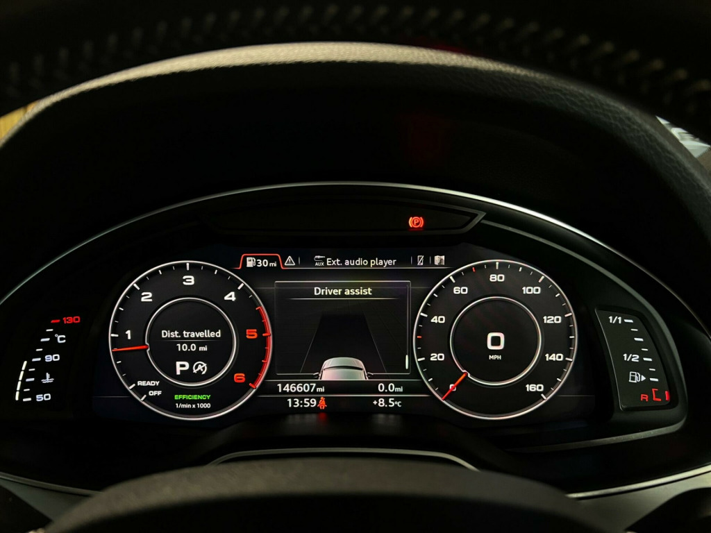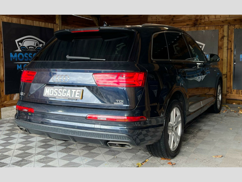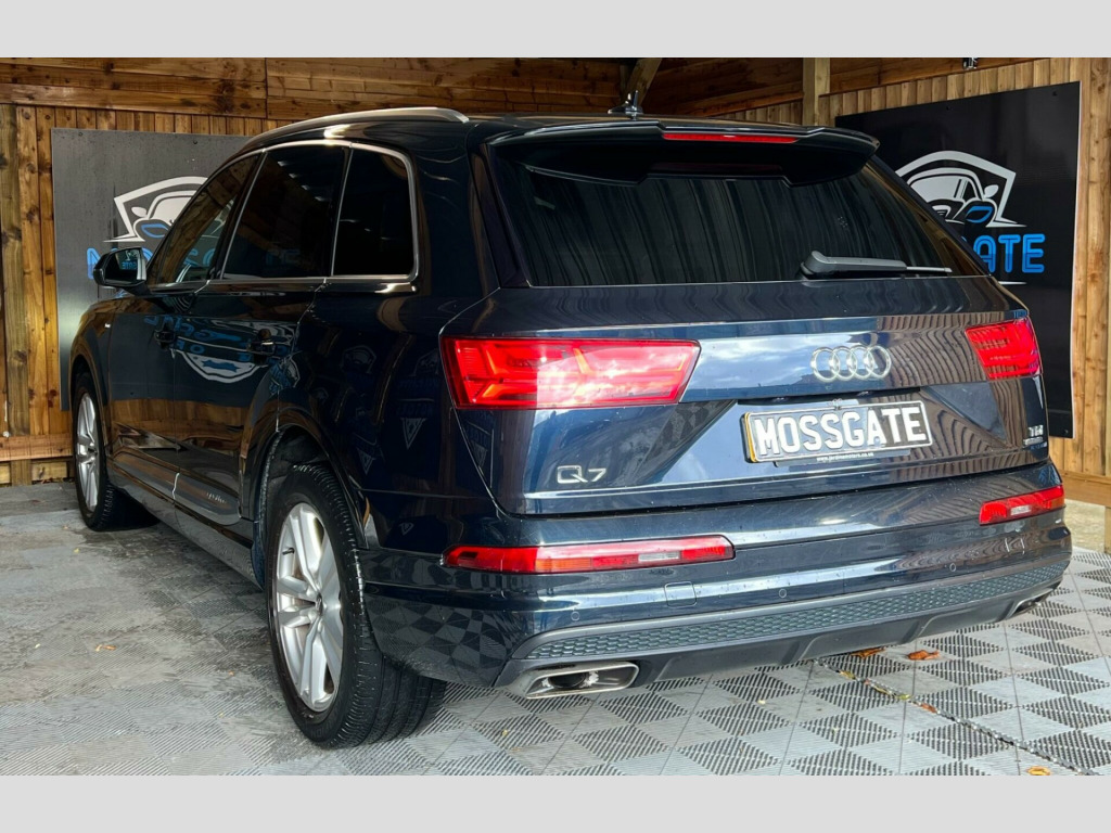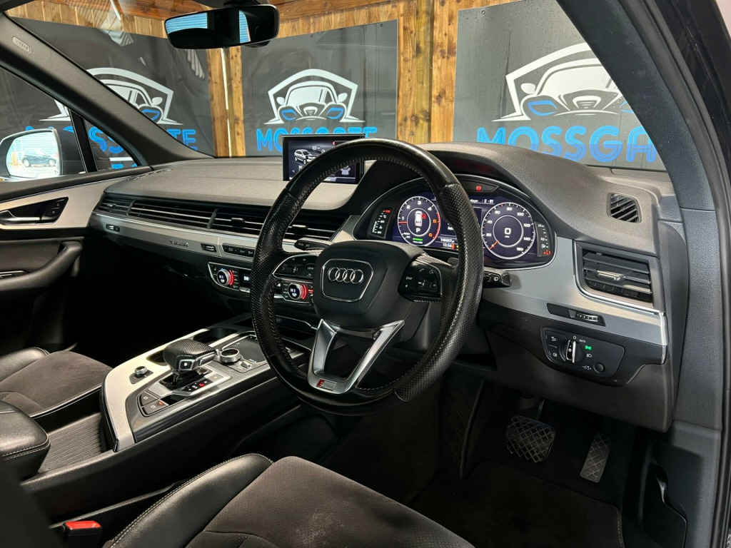 This Audi Q7 TDI V6 S line from 2015 boasts a clear vehicle history, offering peace of mind alongside its impressive capabilities. This seven seat, four wheel drive model is powered by a 3.0 litre diesel engine, meeting Euro 6 emissions standards. Inside, you'll find the sophisticated Audi Virtual Cockpit with its 12.3 inch high resolution LCD display, and deluxe four zone automatic climate control for ultimate comfort. For convenience, it includes Bluetooth audio streaming and an acoustic and visual parking system with rear sensors, alongside automatic headlights.The performance of this Q7 is a standout feature, accelerating from 0 to 62 miles per hour in just 6.5 seconds, demonstrating its dynamic power. These highlights, such as the rapid acceleration and the advanced Audi Virtual Cockpit, indicate how this vehicle offers a superior driving experience compared to other similar models. Furthermore, its low insurance group makes it an economical choice for many drivers, and with a towing weight of 2800 kg, it is well equipped for a variety of needs.. 2 x SDXC Card Readers, 20in Alloy Wheels - 5-Parallel Spoke Design, 3D Map Display of Places of Interest and City Models, ABS - Anti-Lock Braking System, AMI - Audi Music Interface, ASR - Anti Slip Regulation, AUX-IN Socket, Acoustic and Visual Parking System - Front, Acoustic and Visual Parking System - Rear, Air Conditioning - Deluxe Automatic at the Rear, Airbags - Curtain, Airbags - Driver, Airbags - Front Passenger, Airbags - Front Side System, All Weather LED Headlights, Aluminium Roof Rails, Amplifier - 6 Channel, Anti Theft Locking Wheel Bolts, Anti-Theft Alarm, Audi Connect - 3 Month Trial, Audi Drive Select, Audi Hill Hold Assist, Audi Parking System Plus, Audi Sound System, Auto-Dimming Rear-View Mirror, Automatic Wipers with Rain Sensor, Autonomous Braking System, Bluetooth Audio Streaming, Body Coloured Bumpers, Body Coloured Door Mirrors, Cloth Headlining in Black, Colour Drivers Information System - DIS, Colour Touchscreen Display - 8.3in, Comfort Front Centre Armrest, Contour Door and Dashboard Lighting, Cruise Control with Speed Limiter, Cup Holders in Rear Armrest x2, DAB Digital Radio, DVD Player, Dashboard - Upper and Lower - Black, Deluxe 4-Zone Automatic Climate Control, Display Screen Colour TFT 7in High Resolution, Door Handles - Body Coloured, Door Handles - Inside Lights, Door Mirrors - Heated-Electrically Adjustable-Folding, Door Mirrors - Kerb View Function, Door Sill Trims with S Line Logo, Dynamic Rear Indicators, Dynamic Suspension, EBD - Electronic Brakeforce Distribution, EDL - Electronic Differential Lock, ESC - Electronic Stabilisation Control, Electric Windows - Front and Rear, Electrically Adjustable 4-Way Lumbar Support, Electrically Adjustable Front Seats, Electromechanical Parking Brake, Entrance Lighting, First Aid Kit, Flash Memory for Music - 10GB, Front Centre Armrest - Adjustable, Front Passenger Airbag Deactivation Switch, Front and Rear Floor Mats, Front and Rear Reading Lights, Glovebox - Illuminated, Head Restraints - Front Adjustable, Headlights - Adaptive, Headlights - Automatic, Headlights - High-Beam Assist, Headlights Washers, Heated Front Seats, Hill Descent Control, ISOFIX Child Seat Preparation for Rear Seats with Top Tether, ISOFIX for Front Passenger Seat, Illuminated Footwell Lighting, Illuminated Vanity Mirrors, Interior Light Package, Keyless Go, LED Daytime Running Lights, LED Rear Lights, Lighting - Tailgate, Luggage Compartment - Lighting, MMI Navigation Plus including MMI Touch, MMI Radio Plus, MMI Search, MMI Touch, Mobile Telephone Preparation - Bluetooth Interface, Outside Temperature Display, Platinum Grey Front Spoiler Lip and Diffuser Insert with Honeycomb Grid in Black, Power Operated Tailgate, Power Steering - Servotronic, Pre-Sense City, Privacy Glass, Rear Centre Armrest, Rear Diffuser - S Line Design, Remote Central Locking, S Line Badges on Front Wings, S Line Body Styling, S Line Bumpers-Side Ventilation Grilles-Side Skirts and Roof Spoiler, S Line Roof Spoiler, Seat Belt Monitoring, Seats - 2nd Row Split - 35-30-35, Seats - 3rd Row Electrically Folding - 50-50, Seats - Dark Silver Stitching, Seats - Front Height Adjustment, Seats - Sports - S Line, Smoking Package, Speakers x10, Speed Limit Display, Stainless Steel Loading Sill Protector, Steering Wheel - 3-spoke S line Multi-function Leather, Steering Wheel - Gear Shift Paddles, Steering Wheel - Height and Reach Adjustable, Steering Wheel - Multi-function, Subwoofer, Tool Kit and Car Jack, Two Cup-Holders in Centre Console, Tyre Pressure Loss Indicator, Tyre Repair Kit, USB Connection x2, Upper Inlays in Brushed Aluminium-Sono and Lower Inlays in Chrome Paint Finish-Slate Grey, Voice Control - Navigation, Warning Triangle, Window Surrounds - Aluminium, Audi Virtual Cockpit - 12.3in High Resolution LCD Display.