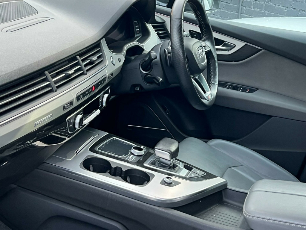 Excellent Condition and Very high-spec Audi Q7 with 2 owners from new, full service history and 2 keys. Comes fully loaded with Technology Pack, including Virtual Cockpit, Head-Up Display and wireless charging. Features Bose surround sound, panoramic roof, full upgraded leather electric seats with memory, reverse camera, and front & rear parking sensors. Too many more to list them all. A very well-maintained example in fantastic condition throughout viewing highly recommended. x sdxc card readers, 20in alloy wheels - 5-parallel spoke design, 3d map display of places of interest and city models, abs - anti-lock braking system, ami - audi music interface, asr - anti slip regulation, aux-in socket, acoustic and visual parking system - front, acoustic and visual parking system - rear, air conditioning - deluxe automatic at the rear, airbags - curtain, airbags - driver, airbags - front passenger, airbags - front side system, all weather led headlights, aluminium roof rails, amplifier - 6 channel, anti theft locking wheel bolts, anti-theft alarm, audi connect - 3 month trial, audi drive select, audi hill hold assist, audi parking system plus, audi sound system, auto-dimming rear-view mirror, automatic wipers with rain sensor, autonomous braking system, bluetooth audio streaming, body coloured bumpers, body coloured door mirrors, cloth headlining in black, colour drivers information system - dis, colour touchscreen display - 8.3in, comfort front centre armrest, contour door and dashboard lighting, cruise control with speed limiter, cup holders in rear armrest x2, dab digital radio, dvd player, dashboard - upper and lower - black, deluxe 4-zone automatic climate control, display screen colour tft 7in high resolution, door handles - body coloured, door handles - inside lights, door mirrors - heated-electrically adjustable-folding, door mirrors - kerb view function, door sill trims with s line logo, dynamic rear indicators, dynamic suspension, ebd - electronic brakeforce distribution, edl - electronic differential lock, esc - electronic stabilisation control, electric windows - front and rear, electrically adjustable 4-way lumbar support, electrically adjustable front seats, electromechanical parking brake, entrance lighting, first aid kit, flash memory for music - 10gb, front centre armrest - adjustable, front passenger airbag deactivation switch, front and rear floor mats, front and rear reading lights, glovebox - illuminated, head restraints - front adjustable, headlights - adaptive, headlights - automatic, headlights - high-beam assist, headlights washers, heated front seats, hill descent control, isofix child seat preparation for rear seats with top tether, isofix for front passenger seat, illuminated footwell lighting, illuminated vanity mirrors, interior light package, keyless go, led daytime running lights, led rear lights, lighting - tailgate, luggage compartment - lighting, mmi navigation plus including mmi touch, mmi radio plus, mmi search, mmi touch, mobile telephone preparation - bluetooth interface, outside temperature display, platinum grey front spoiler lip and diffuser insert with honeycomb grid in black, power operated tailgate, power steering - servotronic, pre-sense city, privacy glass, rear centre armrest, rear diffuser - s line design, remote central locking, s line badges on front wings, s line body styling, s line bumpers-side ventilation grilles-side skirts and roof spoiler, s line roof spoiler, seat belt monitoring, seats - 2nd row split - 35-30-35, seats - 3rd row electrically folding - 50-50, seats - dark silver stitching, seats - front height adjustment, seats - sports - s line, smoking package, speakers x10, speed limit display, stainless steel loading sill protector, steering wheel - 3-spoke s line multi-function leather, steering wheel - gear shift paddles, steering wheel - height and reach adjustable, steering wheel - multi-function, subwoofer, tool kit and car jack, two cup-holders in centre console, tyre pressure loss indicator, tyre repair kit, usb connection x2, upper inlays in brushed aluminium-sono and lower inlays in chrome paint finish-slate grey, voice control - navigation, warning triangle, window surrounds - aluminium