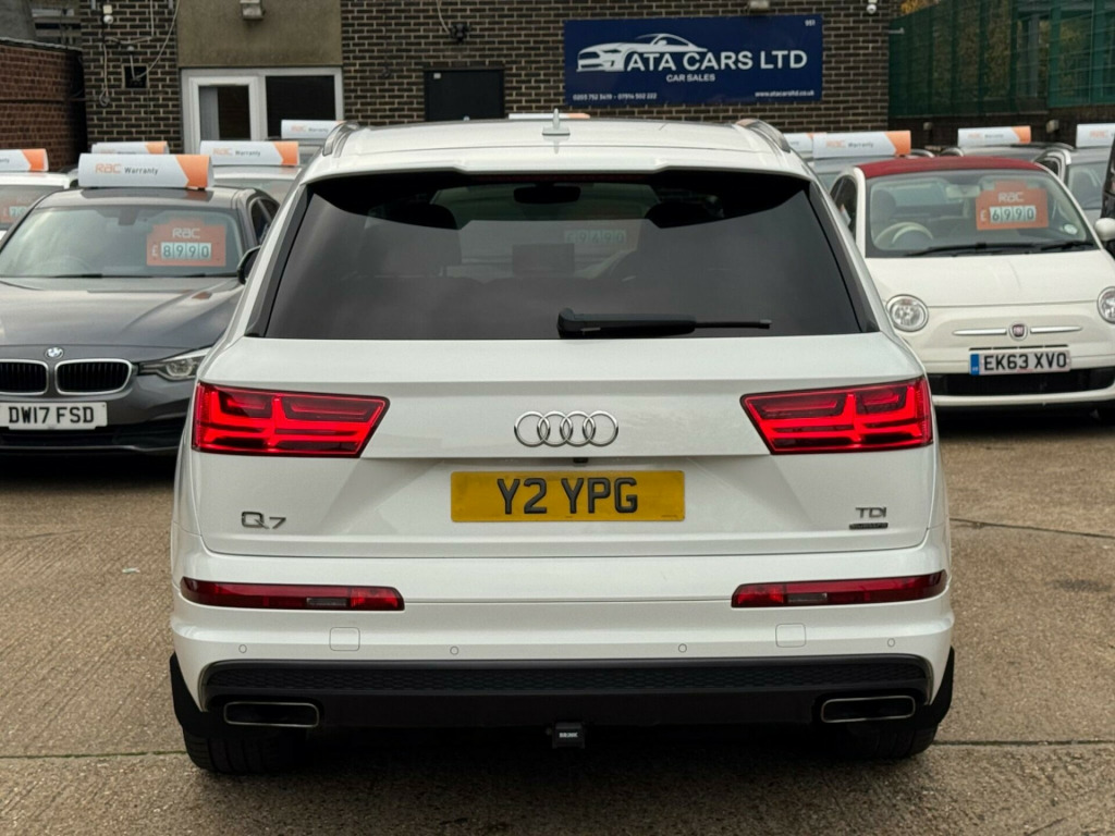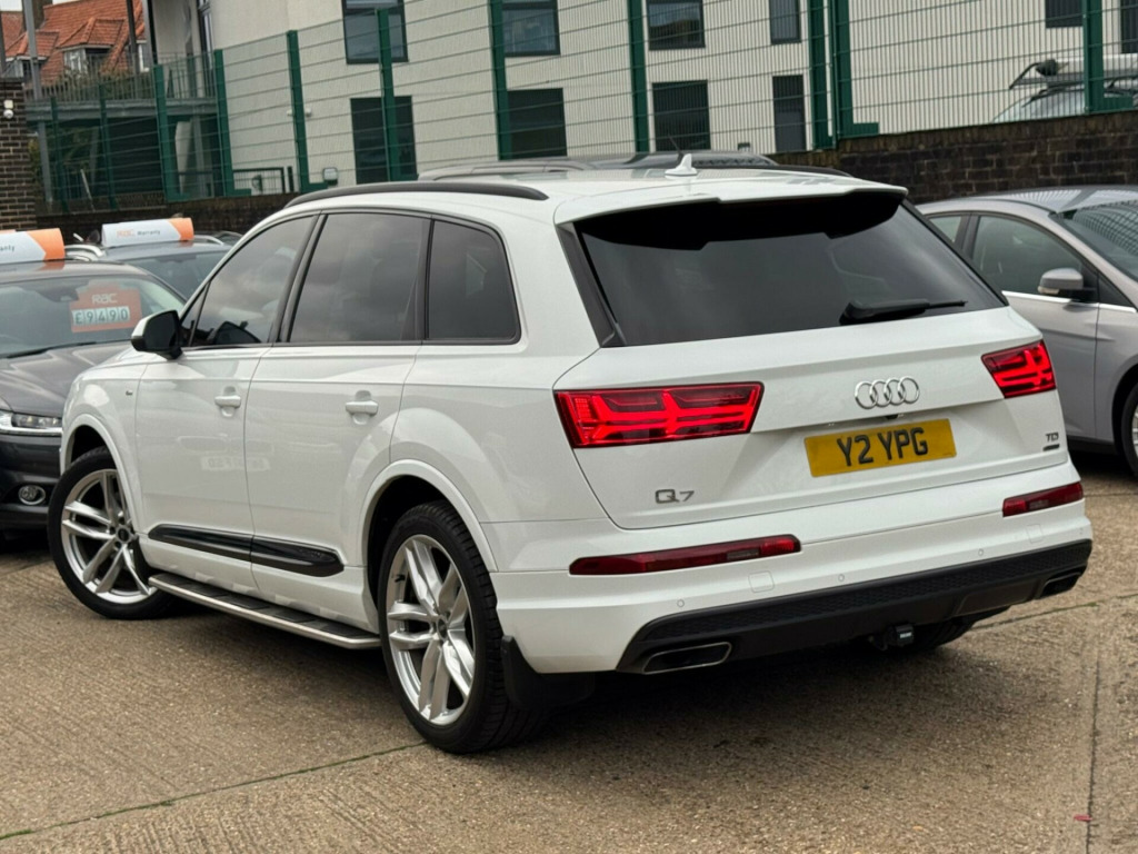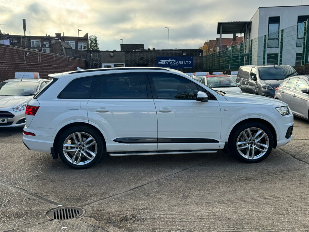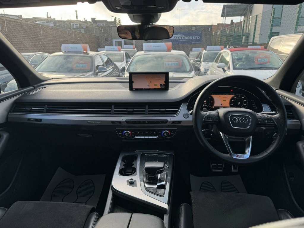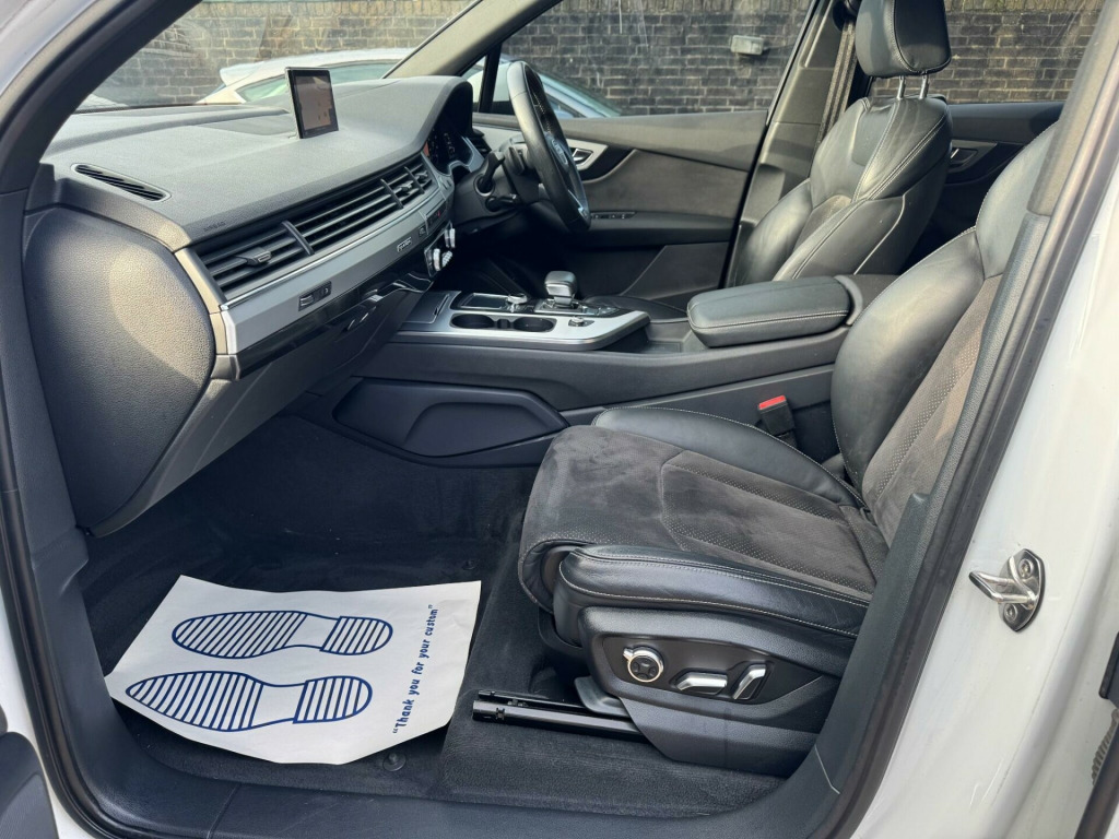 THREE MONTHS WARRANTY,MOT 18-05-2026,SAT NAV, HEATED SEATS,PARKING SENSORS, 2 KEYS,BLUETOOTH,. 2 x SDXC Card Readers, 20in Alloy Wheels - 5-Parallel Spoke Design, 3D Map Display of Places of Interest and City Models, ABS - Anti-Lock Braking System, AMI - Audi Music Interface, ASR - Anti Slip Regulation, AUX-IN Socket, Acoustic and Visual Parking System - Front, Acoustic and Visual Parking System - Rear, Air Conditioning - Deluxe Automatic at the Rear, Airbags - Curtain, Airbags - Driver, Airbags - Front Passenger, Airbags - Front Side System, All Weather LED Headlights, Aluminium Roof Rails, Amplifier - 6 Channel, Anti Theft Locking Wheel Bolts, Anti-Theft Alarm, Audi Connect - 3 Month Trial, Audi Drive Select, Audi Hill Hold Assist, Audi Parking System Plus, Audi Sound System, Auto-Dimming Rear-View Mirror, Automatic Wipers with Rain Sensor, Autonomous Braking System, Bluetooth Audio Streaming, Body Coloured Bumpers, Body Coloured Door Mirrors, Cloth Headlining in Black, Colour Drivers Information System - DIS, Colour Touchscreen Display - 8.3in, Comfort Front Centre Armrest, Contour Door and Dashboard Lighting, Cruise Control with Speed Limiter, Cup Holders in Rear Armrest x2, DAB Digital Radio, DVD Player, Dashboard - Upper and Lower - Black, Deluxe 4-Zone Automatic Climate Control, Display Screen Colour TFT 7in High Resolution, Door Handles - Body Coloured, Door Handles - Inside Lights, Door Mirrors - Heated-Electrically Adjustable-Folding, Door Mirrors - Kerb View Function, Door Sill Trims with S Line Logo, Dynamic Rear Indicators, Dynamic Suspension, EBD - Electronic Brakeforce Distribution, EDL - Electronic Differential Lock, ESC - Electronic Stabilisation Control, Electric Windows - Front and Rear, Electrically Adjustable 4-Way Lumbar Support, Electrically Adjustable Front Seats, Electromechanical Parking Brake, Entrance Lighting, First Aid Kit, Flash Memory for Music - 10GB, Front Centre Armrest - Adjustable, Front Passenger Airbag Deactivation Switch, Front and Rear Floor Mats, Front and Rear Reading Lights, Glovebox - Illuminated, Head Restraints - Front Adjustable, Headlights - Adaptive, Headlights - Automatic, Headlights - High-Beam Assist, Headlights Washers, Heated Front Seats, Hill Descent Control, ISOFIX Child Seat Preparation for Rear Seats with Top Tether, ISOFIX for Front Passenger Seat, Illuminated Footwell Lighting, Illuminated Vanity Mirrors, Interior Light Package, Keyless Go, LED Daytime Running Lights, LED Rear Lights, Lighting - Tailgate, Luggage Compartment - Lighting, MMI Navigation Plus including MMI Touch, MMI Radio Plus, MMI Search, MMI Touch, Mobile Telephone Preparation - Bluetooth Interface, Outside Temperature Display, Platinum Grey Front Spoiler Lip and Diffuser Insert with Honeycomb Grid in Black, Power Operated Tailgate, Power Steering - Servotronic, Pre-Sense City, Privacy Glass, Rear Centre Armrest, Rear Diffuser - S Line Design, Remote Central Locking, S Line Badges on Front Wings, S Line Body Styling, S Line Bumpers-Side Ventilation Grilles-Side Skirts and Roof Spoiler, S Line Roof Spoiler, Seat Belt Monitoring, Seats - 2nd Row Split - 35-30-35, Seats - 3rd Row Electrically Folding - 50-50, Seats - Dark Silver Stitching, Seats - Front Height Adjustment, Seats - Sports - S Line, Smoking Package, Speakers x10, Speed Limit Display, Stainless Steel Loading Sill Protector, Steering Wheel - 3-spoke S line Multi-function Leather, Steering Wheel - Gear Shift Paddles, Steering Wheel - Height and Reach Adjustable, Steering Wheel - Multi-function, Subwoofer, Tool Kit and Car Jack, Two Cup-Holders in Centre Console, Tyre Pressure Loss Indicator, Tyre Repair Kit, USB Connection x2, Upper Inlays in Brushed Aluminium-Sono and Lower Inlays in Chrome Paint Finish-Slate Grey, Voice Control - Navigation, Warning Triangle, Window Surrounds - Aluminium.