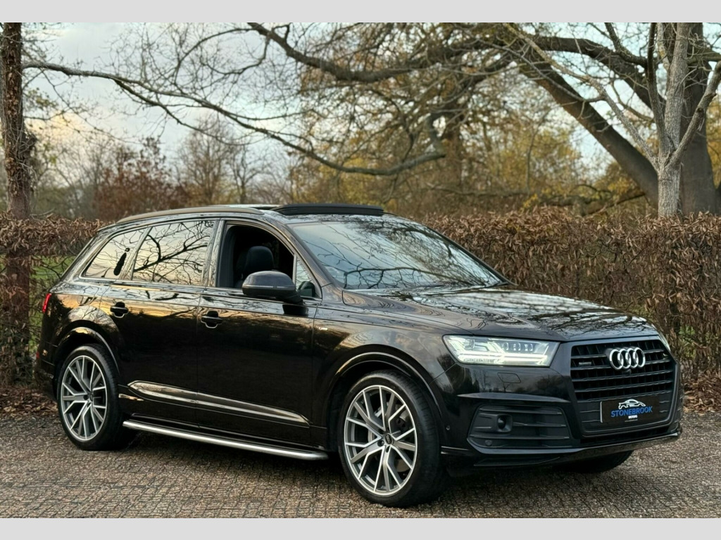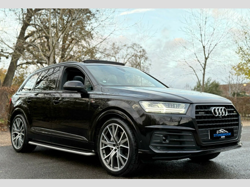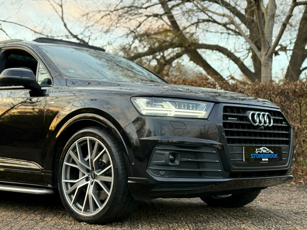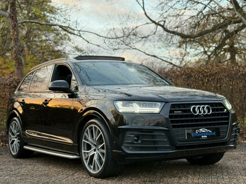 2017 Audi Q7 3.0 TDI V6 S line Tiptronic Quattro - 54,000 miles - £28,489This 2017 Audi Q7 S line combines premium comfort, power, and full 7-seater practicality with serious spec. Finished in a stunning black exterior over black leather interior, this high-spec Q7 has had 1 previous owner, comes with full service history, and is loaded with sought after factory options, including panoramic roof, air suspension, Audi Matrix headlights, and much more.This Audi Q7 has just undergone a full Major Service at Audi and is fitted with a brand-new set of Hankook tyres all round. It's fully up to date on maintenance and ready Spec highlights include:•Technology Package (inc. Audi Virtual Cockpit)•Panoramic Glass Sunroof•Head-Up Display•Audi Phone Box with Wireless Charging•BOSE Sound System•Design Pack•Electric Front Seats with Memory•Adaptive Air Suspension - for smooth adjustable ride quality•Adaptive Cruise Control (Tour Pack) • City Package•Lane Keeping System•Dynamic Road Sign Display•High-Beam Control•Rear View Camera•Audi Matrix LED Headlights•Extended Lighting Package•Side Steps•Heated Front Seats•Folding/Dimming Mirrors•3-Spoke Flat-Bottom Multifunction Steering Wheel•85L Fuel TankThis Q7 doesn't just look the part, it's built to handle long journeys with ease, carry the whole family in comfort, and deliver serious road presence. Whether you're after tech, space, or power, this one's got it all.Dealer benefits included:•ULEZ Compliant•6-12 Months MOT•6-Month Warranty (extendable up to 3 years)•AA Approved Dealer with 6 Months Roadside Cover•HPI Clear (report available)•£0 Deposit Finance Available•Competitive Part Exchange•Nationwide Delivery•Vehicle Sourcing AvailableThis is one of the most complete Q7 specs on the market. If you're looking for space, comfort, power and premium options, this is the SUV for you. Contact us today to book a viewing or test drive. We'll help with finance, part exchange or delivery, whatever suits you best. di entertainment mobile, bose 3d sound system, bang and olufsen 3d advanced sound system, rear view camera, technology package, audi phone box, head-up display, parking pack advanced, door mirrors - folding with auto-dimming and memory function, panoramic glass sunroof, running boards, titanium black styling pack with black roof rails, trailer pack, 22in alloy wheels - 5-v-spoke aluminium star design - titanium diamond cut, black roof rails, black styling package, door mirrors - heated-electrically adjustable-auto-dimming with memory function, door mirrors - heated-electrically adjustable-folding with memory function, exterior mirror housings in high-gloss black, heat and sound insulating glass with privacy glass, comfort and sound package, deletion of engine technology designation at rear, deletion of model and technology designation at rear, driver and front passenger memory function for the electrically adjustable front seats, extended led interior lighting package - multi-coloured, full leather package, steering wheel - 3-spoke leather-multi-function-heated-sports-shift paddles, steering wheel - 3-spoke leather-multi-function-flat bottomed-sports-shift paddles, 3-spoke leather multi-function sports steering wheel - heated, ambient lighting, audi virtual cockpit, drivers side memory function for the electrically adjustable front seats, steering wheel - 3-spoke leather - multi-function flat bottomed, upper inlays in brushed aluminium-sono with lower inlays in aluminium-beaufort black, valcona leather - s line sports seats - black, matrix led headlights with led rear lights and dynamic rear indicators, parking assistance pack, tour pack, audi matrix led headlights, city pack, rear side airbags, adaptive air suspension, tour pack advanced, style package, 20in alloy wheels - 5-parallel spoke design, 7 seats, ami - audi music interface, airbags - front side with curtain, all weather led headlights, aluminium roof rails, aluminium window trims, anti theft locking wheel bolts, anti-theft alarm, audi connect - 3 month trial, audi connect infotainment embedded sim, audi connect safety and service - e-call, audi drive select, audi hill hold assist, audi parking system plus, audi pre-sense city, audi smartphone interface, audi sound system, auto-dimming rear-view mirror, bluetooth interface, child locks, chrome package, cloth headlining in black, comfort front centre armrest, cruise control with speed limiter, dab digital radio reception, deluxe four-zone automatic climate control, door mirrors - heated-electrically adjustable-folding, door sill trims with s line logo, driver information system with colour display, driver and front passenger airbag with front passenger airbag deactivation, dynamic rear indicators, dynamic suspension, esc - electronic stabilisation control inc abs - ebd - asr - edl, electric windows - front and rear, electrically adjustable 4-way lumbar support, electrically adjustable front seats, electromechanical parking brake, electromechanical power steering, exterior mirror housings in body colour, first aid kit and warning triangle, front and rear floor mats, full body-colour paint finish, gloss package, headlight washer system, heat insulating glass - windscreen, heated front seats, high-beam assist, hill descent control, isofix child seat mounting, interior light package, keyless go, led rear lights, light and rain sensor, mmi navigation plus including mmi touch, mmi radio plus, power operated tailgate, power steering - servotronic, privacy glass, remote central locking, s line body styling, seat belt monitoring, stainless steel loading sill protector, steel pedal cluster, steering wheel - 3-spoke leather - multi-function - sports, steering wheel - height and reach adjustable, tool kit, two cup-holders in centre console, tyre pressure loss indicator, tyre repair kit, upper inlays in brushed aluminium-sono and lower inlays in chrome paint finish-slate grey, voice control system