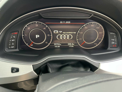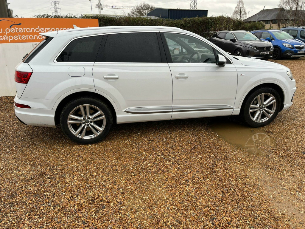 This Audi Q7 TDI V6 S line from 2015 boasts a remarkable history, having had only two owners since new. This premium seven seater SUV features a powerful 3.0 litre diesel engine paired with Audi's renowned four wheel drive system, ensuring excellent performance and control. As a Euro 6 compliant vehicle, it meets stringent emission standards. The S line trim enhances its sporty appeal, and you'll appreciate the convenience of a Head Up Display, a Panoramic Glass Sunroof that opens for an airy cabin, and heated front seats for added comfort. Parking is made easier with the acoustic and visual parking system for the rear, and the ambient lighting creates a sophisticated atmosphere inside. With a towing weight of 2800 kg, this Q7 is also highly capable for towing.The performance of this Q7 is truly impressive, accelerating from 0 to 62 miles per hour in just 6.5 seconds, a testament to its potent 3.0 litre diesel engine. This swift acceleration, combined with its four wheel drive system, places it ahead of many other vehicles in its class. Furthermore, its position within a low insurance group makes it a more economical choice to own and run, offering a compelling blend of luxury, performance, and practicality for discerning drivers.. 2 x SDXC Card Readers, 20in Alloy Wheels - 5-Parallel Spoke Design, 3D Map Display of Places of Interest and City Models, ABS - Anti-Lock Braking System, AMI - Audi Music Interface, ASR - Anti Slip Regulation, AUX-IN Socket, Acoustic and Visual Parking System - Front, Acoustic and Visual Parking System - Rear, Air Conditioning - Deluxe Automatic at the Rear, Airbags - Curtain, Airbags - Driver, Airbags - Front Passenger, Airbags - Front Side System, All Weather LED Headlights, Aluminium Roof Rails, Amplifier - 6 Channel, Anti Theft Locking Wheel Bolts, Anti-Theft Alarm, Audi Connect - 3 Month Trial, Audi Drive Select, Audi Hill Hold Assist, Audi Parking System Plus, Audi Sound System, Auto-Dimming Rear-View Mirror, Automatic Wipers with Rain Sensor, Autonomous Braking System, Bluetooth Audio Streaming, Body Coloured Bumpers, Body Coloured Door Mirrors, Cloth Headlining in Black, Colour Drivers Information System - DIS, Colour Touchscreen Display - 8.3in, Comfort Front Centre Armrest, Contour Door and Dashboard Lighting, Cruise Control with Speed Limiter, Cup Holders in Rear Armrest x2, DAB Digital Radio, DVD Player, Dashboard - Upper and Lower - Black, Deluxe 4-Zone Automatic Climate Control, Display Screen Colour TFT 7in High Resolution, Door Handles - Body Coloured, Door Handles - Inside Lights, Door Mirrors - Heated-Electrically Adjustable-Folding, Door Mirrors - Kerb View Function, Door Sill Trims with S Line Logo, Dynamic Rear Indicators, Dynamic Suspension, EBD - Electronic Brakeforce Distribution, EDL - Electronic Differential Lock, ESC - Electronic Stabilisation Control, Electric Windows - Front and Rear, Electrically Adjustable 4-Way Lumbar Support, Electrically Adjustable Front Seats, Electromechanical Parking Brake, Entrance Lighting, First Aid Kit, Flash Memory for Music - 10GB, Front Centre Armrest - Adjustable, Front Passenger Airbag Deactivation Switch, Front and Rear Floor Mats, Front and Rear Reading Lights, Glovebox - Illuminated, Head Restraints - Front Adjustable, Headlights - Adaptive, Headlights - Automatic, Headlights - High-Beam Assist, Headlights Washers, Heated Front Seats, Hill Descent Control, ISOFIX Child Seat Preparation for Rear Seats with Top Tether, ISOFIX for Front Passenger Seat, Illuminated Footwell Lighting, Illuminated Vanity Mirrors, Interior Light Package, Keyless Go, LED Daytime Running Lights, LED Rear Lights, Lighting - Tailgate, Luggage Compartment - Lighting, MMI Navigation Plus including MMI Touch, MMI Radio Plus, MMI Search, MMI Touch, Mobile Telephone Preparation - Bluetooth Interface, Outside Temperature Display, Platinum Grey Front Spoiler Lip and Diffuser Insert with Honeycomb Grid in Black, Power Operated Tailgate, Power Steering - Servotronic, Pre-Sense City, Privacy Glass, Rear Centre Armrest, Rear Diffuser - S Line Design, Remote Central Locking, S Line Badges on Front Wings, S Line Body Styling, S Line Bumpers-Side Ventilation Grilles-Side Skirts and Roof Spoiler, S Line Roof Spoiler, Seat Belt Monitoring, Seats - 2nd Row Split - 35-30-35, Seats - 3rd Row Electrically Folding - 50-50, Seats - Dark Silver Stitching, Seats - Front Height Adjustment, Seats - Sports - S Line, Smoking Package, Speakers x10, Speed Limit Display, Stainless Steel Loading Sill Protector, Steering Wheel - 3-spoke S line Multi-function Leather, Steering Wheel - Gear Shift Paddles, Steering Wheel - Height and Reach Adjustable, Steering Wheel - Multi-function, Subwoofer, Tool Kit and Car Jack, Two Cup-Holders in Centre Console, Tyre Pressure Loss Indicator, Tyre Repair Kit, USB Connection x2, Upper Inlays in Brushed Aluminium-Sono and Lower Inlays in Chrome Paint Finish-Slate Grey, Voice Control - Navigation, Warning Triangle, Window Surrounds - Aluminium, Head-Up Display, Panoramic Glass Sunroof, Ambient Lighting. Full service history