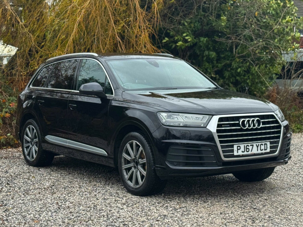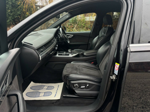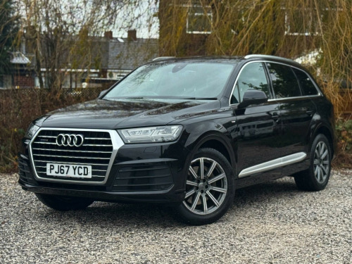 2 FORMER KEEPERS2 KEYSSERVICE HISTORY - 4 MAIN DEALER SERVICESLOGBOOK20in Alloy Wheels - 10-Spoke Star DesignVery rareDriver and Front Passenger Memory Function for the Electrically Adjustable Front SeatsVery rareAudi Entertainment MobileVery rareTV Reception - DigitalVery rareHeat and Sound Insulating Glass with Privacy GlassVery rareAmbient LightingVery rareLeather-Alcantara - S Line Sports Seats - BlackDoor Mirrors - Heated-Electrically Adjustable-Folding with Memory FunctionAlcantara-Leather - Sport Seats - S Embossed Logo - Black with Dark Silver StitchingThis 2017 Audi Q7 TDI V6 S line offers an impressive towing weight of 2800 kg, making it a capable choice for various needs. As a Euro 6 compliant vehicle, it features a powerful 3.0 litre diesel engine paired with a sophisticated Four Wheel Drive system, ensuring excellent performance and control. Inside, you'll find a spacious cabin with seven seats, perfect for families or larger groups. The S line trim enhances the vehicle's appeal with a sporty aesthetic and a host of premium features.Experience comfort and convenience with All Weather LED Headlights, Heated Front Seats, and Deluxe Four Zone Automatic Climate Control. The Light and Rain Sensor automatically adjusts your headlights and wipers, while the Bluetooth Interface allows for seamless connectivity. This Q7 also boasts an impressive fuel economy of 49 mpg and a swift 0-62mph acceleration time of just 7.3 seconds, demonstrating its efficiency and performance capabilities. Furthermore, its low insurance group rating indicates that running costs are kept to a minimum, making it a sensible and desirable option. in alloy wheels - 10-spoke star design, driver and front passenger memory function for the electrically adjustable front seats, audi entertainment mobile, tv reception - digital, heat and sound insulating glass with privacy glass, ambient lighting, leather-alcantara - s line sports seats - black, door mirrors - heated-electrically adjustable-folding with memory function, alcantara-leather - sport seats - s embossed logo - black with dark silver stitching, 20in alloy wheels - 5-parallel spoke design, 7 seats, ami - audi music interface, airbags - front side with curtain, all weather led headlights, aluminium roof rails, aluminium window trims, anti theft locking wheel bolts, anti-theft alarm, audi connect - 3 month trial, audi connect infotainment embedded sim, audi connect safety and service - e-call, audi drive select, audi hill hold assist, audi parking system plus, audi pre-sense city, audi smartphone interface, audi sound system, auto-dimming rear-view mirror, bluetooth interface, child locks, chrome package, cloth headlining in black, comfort front centre armrest, cruise control with speed limiter, dab digital radio reception, deluxe four-zone automatic climate control, door mirrors - heated-electrically adjustable-folding, door sill trims with s line logo, driver information system with colour display, driver and front passenger airbag with front passenger airbag deactivation, dynamic rear indicators, dynamic suspension, esc - electronic stabilisation control inc abs - ebd - asr - edl, electric windows - front and rear, electrically adjustable 4-way lumbar support, electrically adjustable front seats, electromechanical parking brake, electromechanical power steering, exterior mirror housings in body colour, first aid kit and warning triangle, front and rear floor mats, full body-colour paint finish, gloss package, headlight washer system, heat insulating glass - windscreen, heated front seats, high-beam assist, hill descent control, isofix child seat mounting, interior light package, keyless go, led rear lights, light and rain sensor, mmi navigation plus including mmi touch, mmi radio plus, power operated tailgate, power steering - servotronic, privacy glass, remote central locking, s line body styling, seat belt monitoring, stainless steel loading sill protector, steel pedal cluster, steering wheel - 3-spoke leather - multi-function - sports, steering wheel - height and reach adjustable, tool kit, two cup-holders in centre console, tyre pressure loss indicator, tyre repair kit, upper inlays in brushed aluminium-sono and lower inlays in chrome paint finish-slate grey, voice control system