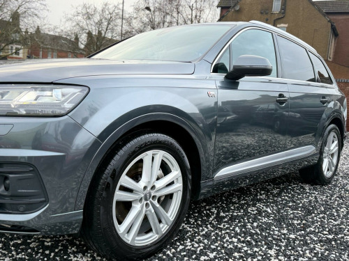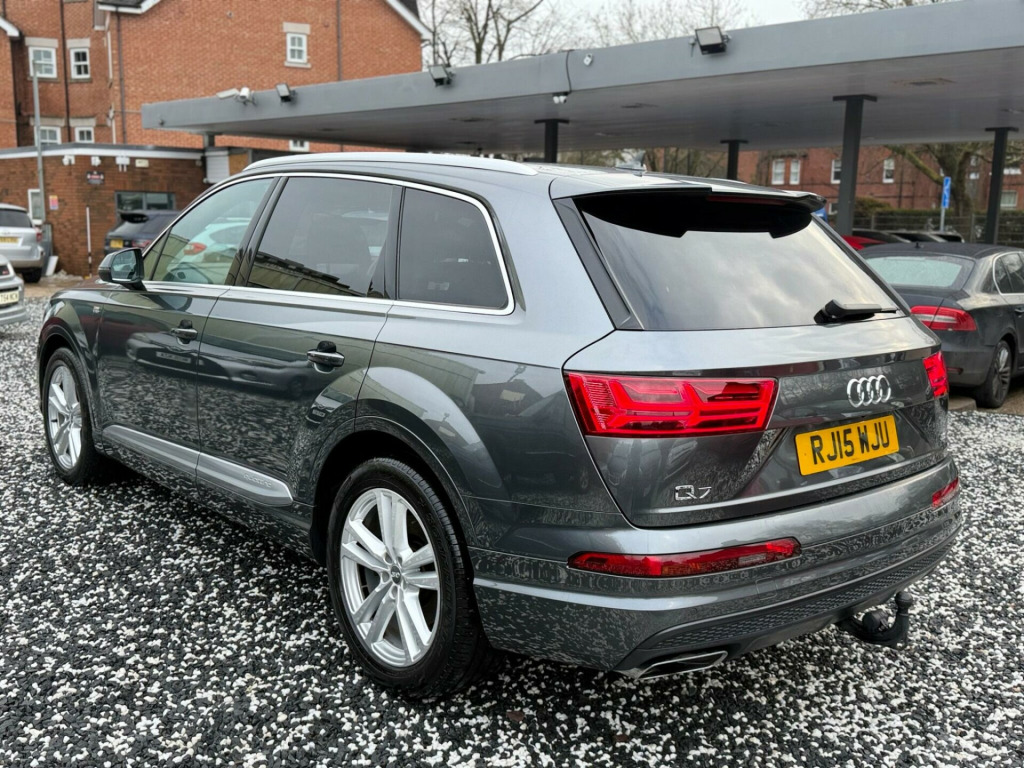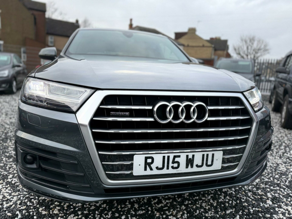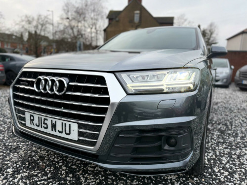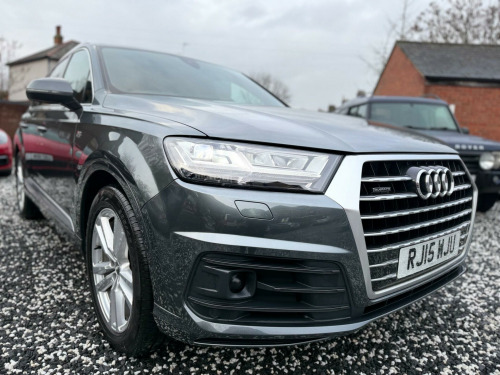 MEGA SPEC, OVER £12,500 OPTIONAL EXTRAS, Boasting exceptionally low mileage for its age, Only driven a genuine 57,000 miles from new, mot February 2027, 2 keys, Backed with a Full Audi dealer service history, Transferrable Audi manufacture warranty, Only 2 former keepers, this 2015 Audi Q7 TDI V6 S line presents a remarkable opportunity. This four wheel drive, seven seat, powered by a potent 3.0 litre diesel engine, meeting Euro 6 emission standards. The S line trim ensures a premium experience, complemented by All Weather LED Headlights, Acoustic and Visual Parking System for the rear, Heads-up display, Lane assist, Virtual Cockpit dash, Adaptive cruise control, Front and rear heated seats, 4 - Wheel steering, Dynamic pack, Electric glass title and slide pan-roof, Folding rear tow bar, Electric rear folding seats, Electric Memory front seats, Front and rear heated seats, Factory privacy glass, Adaptive height suspension, Self park assist, Reverse parking camera, This Audi Q7 stands out with its impressive performance, achieving 0-62mph in just 6.5 seconds, indicating a more responsive drive compared to similar vehicles. Its very low mileage of 57,000 miles suggests it has been well cared for, and it sits within a low insurance group, offering potential savings. Furthermore, with a towing weight of 2800 kg, this Q7 is a capable and versatile choice for a variety of needs, Looks and drive immaculate throughout rking pack advanced, rear side airbags, black alcantara headlining, audi side assist including pre-sense rear and exit warning, door mirrors - memory function, door mirrors - auto dimming, heated outer rear seats for the second row, seats - front memory function, seats - drivers memory function, leather-alcantara - s line sports seats - black, night vision assistant, audi connect (3 year subscription from new), bang and olufsen 3d advanced sound system, tv reception - digital, 20in alloy wheels - 10-spoke star design, 21in alloy wheels - 5-arm-turbine design - contrasting grey, 21in alloy wheels - 5-twin-spoke design, black roof rails, collapsible spare wheel, deletion of engine technology designation at rear, deletion of model and engine technology designation at rear, full leather package, inlays - audi exclusive - fine grain ash nougat, extended leather package, inlays - audi exclusive - fine grain myrtle nutmeg, electrically adjustable steering column, inlays - audi exclusive - modrone wood gold, leather package, load area fixing kit, luggage compartment - cover electric, adaptive air suspension, advanced key, all-wheel steering, ambient lighting, audi entertainment mobile, audi matrix led headlights, audi phone box, audi virtual cockpit - 12.3in high resolution lcd display, bose 3d sound system, dvd changer, dynamic package, fuel tank 85l, head-up display, heated windscreen, panoramic glass sunroof, parking assistance pack, power door closure, rear view camera, technology package, tour pack, trailer pack, valcona leather - s line sports seats - black, upper inlays in brushed aluminium-sono with lower inlays in beaufort walnut, upper inlays in brushed aluminium-sono with lower inlays in oak grey, steering wheel - 3-spoke leather-multi-function-heated-sports-shift paddles, sun blinds - manual for rear and rear door windows, heat and sound insulating glass with privacy glass, luggage compartment - reversible mat, non-smoking package, 2 x sdxc card readers, 20in alloy wheels - 5-parallel spoke design, 3d map display of places of interest and city models, abs - anti-lock braking system, ami - audi music interface, asr - anti slip regulation, aux-in socket, acoustic and visual parking system - front, acoustic and visual parking system - rear, air conditioning - deluxe automatic at the rear, airbags - curtain, airbags - driver, airbags - front passenger, airbags - front side system, all weather led headlights, aluminium roof rails, amplifier - 6 channel, anti theft locking wheel bolts, anti-theft alarm, audi connect - 3 month trial, audi drive select, audi hill hold assist, audi parking system plus, audi sound system, auto-dimming rear-view mirror, automatic wipers with rain sensor, autonomous braking system, bluetooth audio streaming, body coloured bumpers, body coloured door mirrors, cloth headlining in black, colour drivers information system - dis, colour touchscreen display - 8.3in, comfort front centre armrest, contour door and dashboard lighting, cruise control with speed limiter, cup holders in rear armrest x2, dab digital radio, dvd player, dashboard - upper and lower - black, deluxe 4-zone automatic climate control, display screen colour tft 7in high resolution, door handles - body coloured, door handles - inside lights, door mirrors - heated-electrically adjustable-folding, door mirrors - kerb view function, door sill trims with s line logo, dynamic rear indicators, dynamic suspension, ebd - electronic brakeforce distribution, edl - electronic differential lock, esc - electronic stabilisation control, electric windows - front and rear, electrically adjustable 4-way lumbar support, electrically adjustable front seats, electromechanical parking brake, entrance lighting, first aid kit, flash memory for music - 10gb, front centre armrest - adjustable, front passenger airbag deactivation switch, front and rear floor mats, front and rear reading lights, glovebox - illuminated, head restraints - front adjustable, headlights - adaptive, headlights - automatic, headlights - high-beam assist, headlights washers, heated front seats, hill descent control, isofix child seat preparation for rear seats with top tether, isofix for front passenger seat, illuminated footwell lighting, illuminated vanity mirrors, interior light package, keyless go, led daytime running lights, led rear lights, lighting - tailgate, luggage compartment - lighting, mmi navigation plus including mmi touch, mmi radio plus, mmi search, mmi touch, mobile telephone preparation - bluetooth interface, outside temperatu