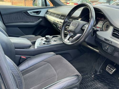 This Audi Q7 TDI V6 S line from 2016 boasts a full service history and has had only two owners, offering excellent provenance. As a Euro 6 compliant model, it features a powerful 3.0 litre diesel engine paired with Four Wheel Drive, ensuring capable performance. With seven seats, this S line trim offers ample space for families or groups. Notable features include Bluetooth audio streaming and mobile telephone preparation, all weather LED headlights, and acoustic and visual parking systems for both the front and rear, making parking easier.This Q7 is designed for practicality and performance, with a towing weight of 2800 kg. The 0-60mph acceleration in just 7.0 seconds highlights its responsive nature. Furthermore, its low insurance group indicates that running costs are kept competitive compared to similar vehicles. A 12 month MOT will be provided on purchase, giving you peace of mind. x sdxc card readers, 20in alloy wheels - 5-parallel spoke design, 3d map display of places of interest and city models, abs - anti-lock braking system, ami - audi music interface, asr - anti slip regulation, aux-in socket, acoustic and visual parking system - front, acoustic and visual parking system - rear, air conditioning - deluxe automatic at the rear, airbags - curtain, airbags - driver, airbags - front passenger, airbags - front side system, all weather led headlights, aluminium roof rails, amplifier - 6 channel, anti theft locking wheel bolts, anti-theft alarm, audi connect - 3 month trial, audi drive select, audi hill hold assist, audi parking system plus, audi sound system, auto-dimming rear-view mirror, automatic wipers with rain sensor, autonomous braking system, bluetooth audio streaming, body coloured bumpers, body coloured door mirrors, cloth headlining in black, colour drivers information system - dis, colour touchscreen display - 8.3in, comfort front centre armrest, contour door and dashboard lighting, cruise control with speed limiter, cup holders in rear armrest x2, dab digital radio, dvd player, dashboard - upper and lower - black, deluxe 4-zone automatic climate control, display screen colour tft 7in high resolution, door handles - body coloured, door handles - inside lights, door mirrors - heated-electrically adjustable-folding, door mirrors - kerb view function, door sill trims with s line logo, dynamic rear indicators, dynamic suspension, ebd - electronic brakeforce distribution, edl - electronic differential lock, esc - electronic stabilisation control, electric windows - front and rear, electrically adjustable 4-way lumbar support, electrically adjustable front seats, electromechanical parking brake, entrance lighting, first aid kit, flash memory for music - 10gb, front centre armrest - adjustable, front passenger airbag deactivation switch, front and rear floor mats, front and rear reading lights, glovebox - illuminated, head restraints - front adjustable, headlights - adaptive, headlights - automatic, headlights - high-beam assist, headlights washers, heated front seats, hill descent control, isofix child seat preparation for rear seats with top tether, isofix for front passenger seat, illuminated footwell lighting, illuminated vanity mirrors, interior light package, keyless go, led daytime running lights, led rear lights, lighting - tailgate, luggage compartment - lighting, mmi navigation plus including mmi touch, mmi radio plus, mmi search, mmi touch, mobile telephone preparation - bluetooth interface, outside temperature display, platinum grey front spoiler lip and diffuser insert with honeycomb grid in black, power operated tailgate, power steering - servotronic, pre-sense city, privacy glass, rear centre armrest, rear diffuser - s line design, remote central locking, s line badges on front wings, s line body styling, s line bumpers-side ventilation grilles-side skirts and roof spoiler, s line roof spoiler, seat belt monitoring, seats - 2nd row split - 35-30-35, seats - 3rd row electrically folding - 50-50, seats - dark silver stitching, seats - front height adjustment, seats - sports - s line, smoking package, speakers x10, speed limit display, stainless steel loading sill protector, steering wheel - 3-spoke s line multi-function leather, steering wheel - gear shift paddles, steering wheel - height and reach adjustable, steering wheel - multi-function, subwoofer, tool kit and car jack, two cup-holders in centre console, tyre pressure loss indicator, tyre repair kit, usb connection x2, upper inlays in brushed aluminium-sono and lower inlays in chrome paint finish-slate grey, voice control - navigation, warning triangle, window surrounds - aluminium
