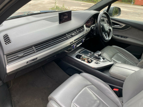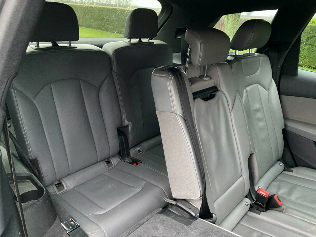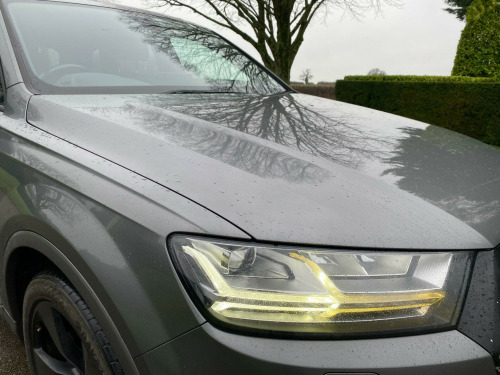 This Audi Q7 TDI V6 S line from 2015 boasts an impressive provenance, having had only two owners from new. This premium seven seater SUV is equipped with a powerful 3.0 litre diesel engine and a four wheel drive system, ensuring capability in various conditions. As a Euro 6 compliant vehicle, it meets modern emissions standards. Notable features include Mobile Telephone Preparation with Bluetooth, Acoustic and Visual Parking System for the rear, and Heated Front Seats for added comfort. The All Weather LED Headlights provide excellent visibility, while the Deluxe 4-Zone Automatic Climate Control allows for personalised cabin temperatures. With a towing weight of 2800 kg, this Q7 is ready for a variety of tasks.The performance of this Q7 is further enhanced by its impressive acceleration, reaching 0-62mph in just 6.5 seconds, a highlight that demonstrates its dynamic capabilities compared to similar vehicles. Its low insurance group rating also indicates that running costs are kept more manageable. This combination of performance, practicality, and thoughtful features makes this 2015 Audi Q7 TDI V6 S line a compelling choice for those seeking a refined and capable large SUV.. 2 x SDXC Card Readers, 20in Alloy Wheels - 5-Parallel Spoke Design, 3D Map Display of Places of Interest and City Models, ABS - Anti-Lock Braking System, AMI - Audi Music Interface, ASR - Anti Slip Regulation, AUX-IN Socket, Acoustic and Visual Parking System - Front, Acoustic and Visual Parking System - Rear, Air Conditioning - Deluxe Automatic at the Rear, Airbags - Curtain, Airbags - Driver, Airbags - Front Passenger, Airbags - Front Side System, All Weather LED Headlights, Aluminium Roof Rails, Amplifier - 6 Channel, Anti Theft Locking Wheel Bolts, Anti-Theft Alarm, Audi Connect - 3 Month Trial, Audi Drive Select, Audi Hill Hold Assist, Audi Parking System Plus, Audi Sound System, Auto-Dimming Rear-View Mirror, Automatic Wipers with Rain Sensor, Autonomous Braking System, Bluetooth Audio Streaming, Body Coloured Bumpers, Body Coloured Door Mirrors, Cloth Headlining in Black, Colour Drivers Information System - DIS, Colour Touchscreen Display - 8.3in, Comfort Front Centre Armrest, Contour Door and Dashboard Lighting, Cruise Control with Speed Limiter, Cup Holders in Rear Armrest x2, DAB Digital Radio, DVD Player, Dashboard - Upper and Lower - Black, Deluxe 4-Zone Automatic Climate Control, Display Screen Colour TFT 7in High Resolution, Door Handles - Body Coloured, Door Handles - Inside Lights, Door Mirrors - Heated-Electrically Adjustable-Folding, Door Mirrors - Kerb View Function, Door Sill Trims with S Line Logo, Dynamic Rear Indicators, Dynamic Suspension, EBD - Electronic Brakeforce Distribution, EDL - Electronic Differential Lock, ESC - Electronic Stabilisation Control, Electric Windows - Front and Rear, Electrically Adjustable 4-Way Lumbar Support, Electrically Adjustable Front Seats, Electromechanical Parking Brake, Entrance Lighting, First Aid Kit, Flash Memory for Music - 10GB, Front Centre Armrest - Adjustable, Front Passenger Airbag Deactivation Switch, Front and Rear Floor Mats, Front and Rear Reading Lights, Glovebox - Illuminated, Head Restraints - Front Adjustable, Headlights - Adaptive, Headlights - Automatic, Headlights - High-Beam Assist, Headlights Washers, Heated Front Seats, Hill Descent Control, ISOFIX Child Seat Preparation for Rear Seats with Top Tether, ISOFIX for Front Passenger Seat, Illuminated Footwell Lighting, Illuminated Vanity Mirrors, Interior Light Package, Keyless Go, LED Daytime Running Lights, LED Rear Lights, Lighting - Tailgate, Luggage Compartment - Lighting, MMI Navigation Plus including MMI Touch, MMI Radio Plus, MMI Search, MMI Touch, Mobile Telephone Preparation - Bluetooth Interface, Outside Temperature Display, Platinum Grey Front Spoiler Lip and Diffuser Insert with Honeycomb Grid in Black, Power Operated Tailgate, Power Steering - Servotronic, Pre-Sense City, Privacy Glass, Rear Centre Armrest, Rear Diffuser - S Line Design, Remote Central Locking, S Line Badges on Front Wings, S Line Body Styling, S Line Bumpers-Side Ventilation Grilles-Side Skirts and Roof Spoiler, S Line Roof Spoiler, Seat Belt Monitoring, Seats - 2nd Row Split - 35-30-35, Seats - 3rd Row Electrically Folding - 50-50, Seats - Dark Silver Stitching, Seats - Front Height Adjustment, Seats - Sports - S Line, Smoking Package, Speakers x10, Speed Limit Display, Stainless Steel Loading Sill Protector, Steering Wheel - 3-spoke S line Multi-function Leather, Steering Wheel - Gear Shift Paddles, Steering Wheel - Height and Reach Adjustable, Steering Wheel - Multi-function, Subwoofer, Tool Kit and Car Jack, Two Cup-Holders in Centre Console, Tyre Pressure Loss Indicator, Tyre Repair Kit, USB Connection x2, Upper Inlays in Brushed Aluminium-Sono and Lower Inlays in Chrome Paint Finish-Slate Grey, Voice Control - Navigation, Warning Triangle, Window Surrounds - Aluminium.