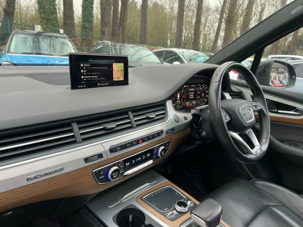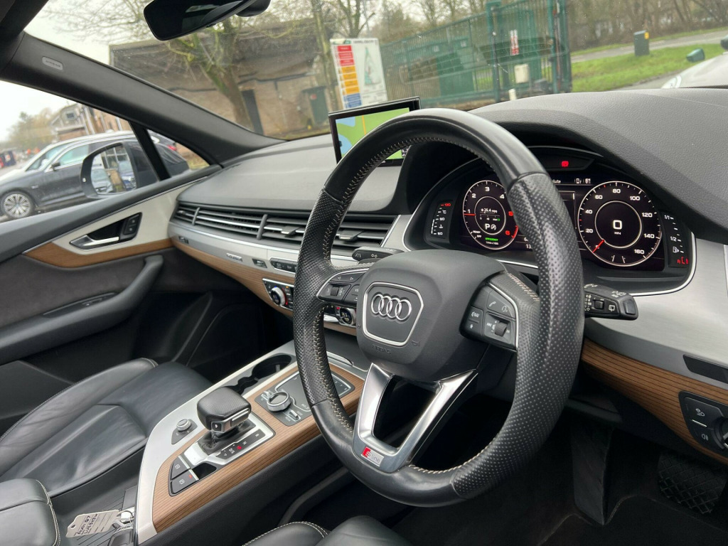Here at A&A Auto Sales just arrived in stock we have a High Spec Audi Q7 3.0 TDI V6 S Line Tiptronic Quattro. We are FCA regulated and offer competitive finance packages, do not hesitate to contact us if you would like to explore the option. All our vehicles come with 6 months comprehensive premium warranty which is extendable for up to 3 years. with 1 previous owner, Full Service History with service book provided. The vehicle has been maintained to a very high standard. Mileage at 66041 warranted miles, MOT till 07/11/2026. The vehicle comes with 2 keys The buyer will be supplied with the V5 registration document, service records, MOT certificate and a HPI clear certificate too.Boasting exceptionally low mileage for its age, this 2015 Audi Q7 TDI V6 S line presents a remarkable opportunity. With only one owner from new and a mere 66,041 miles on the clock, this Euro 6 compliant, four wheel drive SUV is powered by a robust 3.0 litre diesel engine. The S line trim ensures a premium feel, complemented by notable features such as automatic headlights, Bluetooth audio streaming and mobile telephone preparation, heated front seats for added comfort, and a deluxe four zone automatic climate control system. Its impressive towing weight of 2800 kg makes it a capable companion for various needs, and it comfortably seats seven occupants.This Audi Q7 stands out with its impressive performance, achieving 0-62mph in just 6.5 seconds, a testament to its powerful V6 engine. Its low insurance group rating further enhances its appeal, offering potential savings for its next owner. These highlights demonstrate how this particular Q7 offers a superior ownership experience compared to other similar vehicles on the market, combining luxury, performance, and practicality in a well maintained package.. 2 x SDXC Card Readers, 20in Alloy Wheels - 5-Parallel Spoke Design, 3D Map Display of Places of Interest and City Models, ABS - Anti-Lock Braking System, AMI - Audi Music Interface, ASR - Anti Slip Regulation, AUX-IN Socket, Acoustic and Visual Parking System - Front, Acoustic and Visual Parking System - Rear, Air Conditioning - Deluxe Automatic at the Rear, Airbags - Curtain, Airbags - Driver, Airbags - Front Passenger, Airbags - Front Side System, All Weather LED Headlights, Aluminium Roof Rails, Amplifier - 6 Channel, Anti Theft Locking Wheel Bolts, Anti-Theft Alarm, Audi Connect - 3 Month Trial, Audi Drive Select, Audi Hill Hold Assist, Audi Parking System Plus, Audi Sound System, Auto-Dimming Rear-View Mirror, Automatic Wipers with Rain Sensor, Autonomous Braking System, Bluetooth Audio Streaming, Body Coloured Bumpers, Body Coloured Door Mirrors, Cloth Headlining in Black, Colour Drivers Information System - DIS, Colour Touchscreen Display - 8.3in, Comfort Front Centre Armrest, Contour Door and Dashboard Lighting, Cruise Control with Speed Limiter, Cup Holders in Rear Armrest x2, DAB Digital Radio, DVD Player, Dashboard - Upper and Lower - Black, Deluxe 4-Zone Automatic Climate Control, Display Screen Colour TFT 7in High Resolution, Door Handles - Body Coloured, Door Handles - Inside Lights, Door Mirrors - Heated-Electrically Adjustable-Folding, Door Mirrors - Kerb View Function, Door Sill Trims with S Line Logo, Dynamic Rear Indicators, Dynamic Suspension, EBD - Electronic Brakeforce Distribution, EDL - Electronic Differential Lock, ESC - Electronic Stabilisation Control, Electric Windows - Front and Rear, Electrically Adjustable 4-Way Lumbar Support, Electrically Adjustable Front Seats, Electromechanical Parking Brake, Entrance Lighting, First Aid Kit, Flash Memory for Music - 10GB, Front Centre Armrest - Adjustable, Front Passenger Airbag Deactivation Switch, Front and Rear Floor Mats, Front and Rear Reading Lights, Glovebox - Illuminated, Head Restraints - Front Adjustable, Headlights - Adaptive, Headlights - Automatic, Headlights - High-Beam Assist, Headlights Washers, Heated Front Seats, Hill Descent Control, ISOFIX Child Seat Preparation for Rear Seats with Top Tether, ISOFIX for Front Passenger Seat, Illuminated Footwell Lighting, Illuminated Vanity Mirrors, Interior Light Package, Keyless Go, LED Daytime Running Lights, LED Rear Lights, Lighting - Tailgate, Luggage Compartment - Lighting, MMI Navigation Plus including MMI Touch, MMI Radio Plus, MMI Search, MMI Touch, Mobile Telephone Preparation - Bluetooth Interface, Outside Temperature Display, Platinum Grey Front Spoiler Lip and Diffuser Insert with Honeycomb Grid in Black, Power Operated Tailgate, Power Steering - Servotronic, Pre-Sense City, Privacy Glass, Rear Centre Armrest, Rear Diffuser - S Line Design, Remote Central Locking, S Line Badges on Front Wings, S Line Body Styling, S Line Bumpers-Side Ventilation Grilles-Side Skirts and Roof Spoiler, S Line Roof Spoiler, Seat Belt Monitoring, Seats - 2nd Row Split - 35-30-35, Seats - 3rd Row Electrically Folding - 50-50, Seats - Dark Silver Stitching, Seats - Front Height Adjustment, Seats - Sports - S Line, Smoking Package, Speakers x10, Speed Limit Display, Stainless Steel Loading Sill Protector, Steering Wheel - 3-spoke S line Multi-function Leather, Steering Wheel - Gear Shift Paddles, Steering Wheel - Height and Reach Adjustable, Steering Wheel - Multi-function, Subwoofer, Tool Kit and Car Jack, Two Cup-Holders in Centre Console, Tyre Pressure Loss Indicator, Tyre Repair Kit, USB Connection x2, Upper Inlays in Brushed Aluminium-Sono and Lower Inlays in Chrome Paint Finish-Slate Grey, Voice Control - Navigation, Warning Triangle, Window Surrounds - Aluminium, Audi Virtual Cockpit - 12.3in High Resolution LCD Display, Parking Pack Advanced, Rear View Camera, Audi Matrix LED Headlights, Parking Assistance Pack, Rear Side Airbags, Audi Side Assist including Pre-Sense Rear and Exit Warning, 20in Alloy Wheels. Full service history