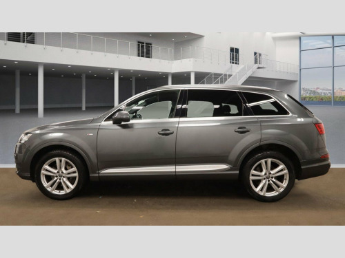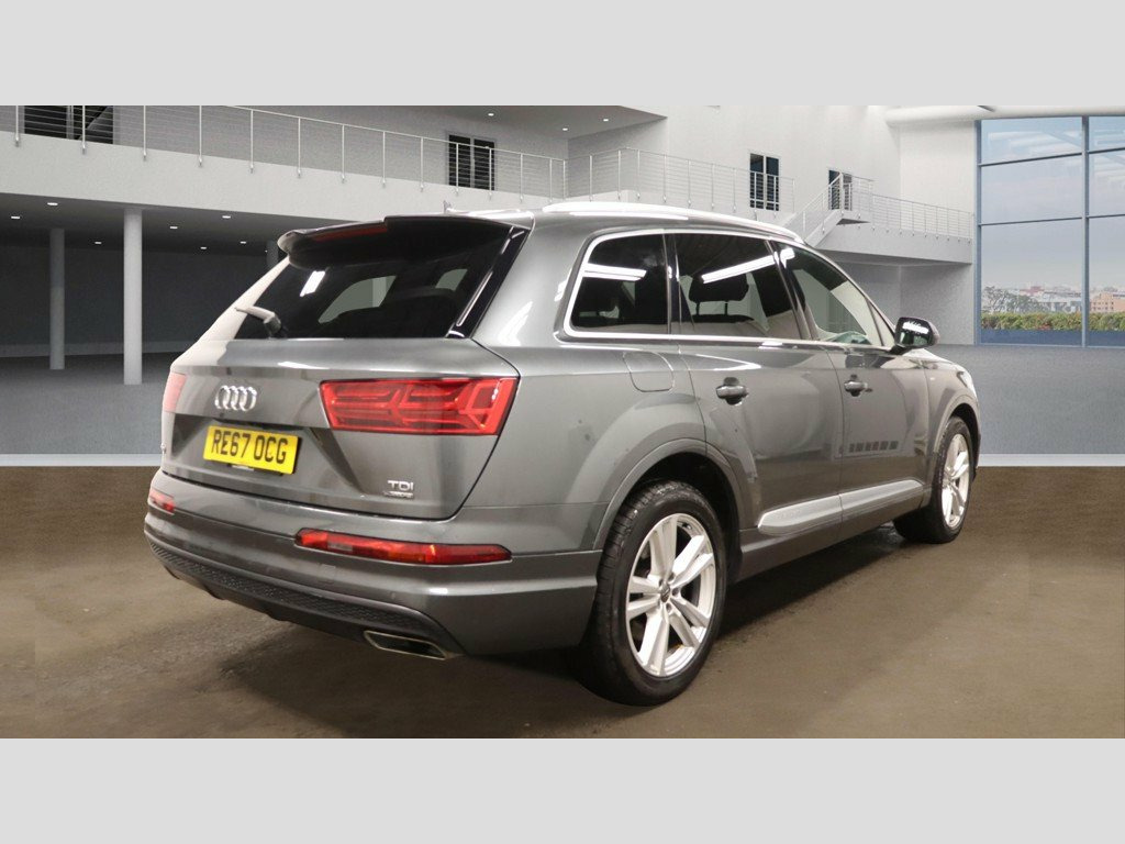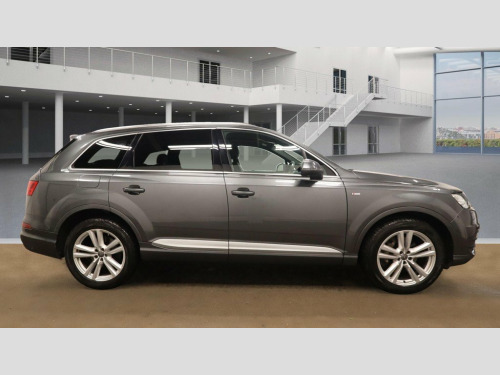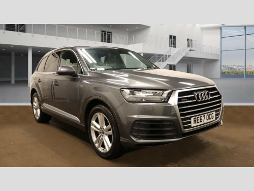 Massive Specification Face lift New Model Audi Q7 3.0 Tdi Quattro S Line,with over £4,920.00 extras added In Daytona grey Metallic, pearl effect paint With Black Leather/Alcantara S line Sports heated seats, 7 Seats, Technology pack,GPS Satellite Navigation, Electric tow Deployable trailer pack, Other Features Include, 20 Inch Multi Spoke Alloy Wheels, Driver and front passenger memory function, Rear view camera, Exterior mirrors - heated, electrically adjustable, folding and auto-dimming,85-litre fuel tank and 24-litre AdBlue® tank, Four zone electronic climate control for the front and rear, Also The Standout Key Features Include, Audi drive select, Colour drivers information system display, Functionality For Seamless Journeys. As You Step Inside You Will Find A Variety Of Technologies, Including Collision Warning System, Front and Rear Radar Type Parking Sensors, Cruise Control, Rain Sensing Windscreen Wipers, Collision Warning System. Keep Everyone Onboard Entertained Thanks To Features Such As Voice Control For Media Functions, Bluetooth Wireless Smart Phone Connectivity, Wifi Hotspot To Keep You Connected, DAB Digital Radio For A Myriad Of Stations To Suit Your Mood. Relax In The Ultimate Comfort Thanks To Keyless Start, Multi-Zone Climate Control, Air Conditioning, Tinted Glass, Anti Dazzle Rear View Mirror, Front And Rear Electric Windows, Rear Privacy Glass, MPV. On The Exterior Electrically Folding Door Mirrors, Audi drive select, Colour drivers information system display, MMI - Multi Media Interface control system, MMI navigation plus with touch and 8 colour display, DVD, SD card reader, 10GB music storage, Mobile phone preparation with Bluetooth interface, Remote electric boot opening/closing, Service interval indicator, Servotronic PAS, Speed limiter, Voice control system, 2 USB ports, Audi music interface, Aux-in socket, DAB digital radio module, MMI radio plus, SD card slot, Adaptive lights, Auto dimming rear view mirror, Body coloured bumpers, Body coloured door mirrors, Electric front and rear windows, Green tinted heat insulating glass, Headlight washers, LED daytime running lights, Loading sill protector in stainless steel, Platinum grey front lip spoiler, Rain and light sensors, Rear wiper, Roof spoiler, S Line body styling, 2 cupholders in front centre console, 35/30/35 split fold 2nd row seats, Door sill trims with S line logo,Front centre comfort armrest with storage + cupholders, Front head restraints, Front/rear floor mats, Gearshift paddles, ISOFIX on front passenger and rear seats, Leather gear knob, Luggage compartment cover, Rear headrests, Stainless steel pedals, Sun visors with illuminated vanity mirrors,, Interior light pack - Q7, 3 point seatbelts on all seats, ABS and Electronic Brake force Distribution, Curtain airbags, Driver and passenger airbags, EDL and ASR, Electrically operated child locks on rear doors, Electromechanical parking brake, ESP, Front passenger airbag deactivation, Front side airbags, Hill descent control, Hill hold assist, Seatbelt warning, Traction control, Tyre pressure monitoring system, Alarm with interior monitoring, Immobiliser, Keyless Go access/ignition system, Locking wheel bolts, Remote central locking, and a FSH added, please enquire. , All Our Vehicles Come With A Full Multipoint Check & RAC Warranty. FULL SERVICE HISTORY ADDED.PLEASE ENQUIRE. FULLY HPI CHECKED,PART EXCHANGE WELCOME,WITH FINANCE AVAILABLE WITH NO DEPOSIT TO PAY IF REQUIRED,, , All our vehicles for sale, comes with a comprehensive RAC approved warranty backed up by all the franchises with 12 months RAC break down cover added at no cost, Knowing you in safe hands anywhere in the uk.24/7. As we are an approved recognised and accredited RAC franchise dealership. , , ,